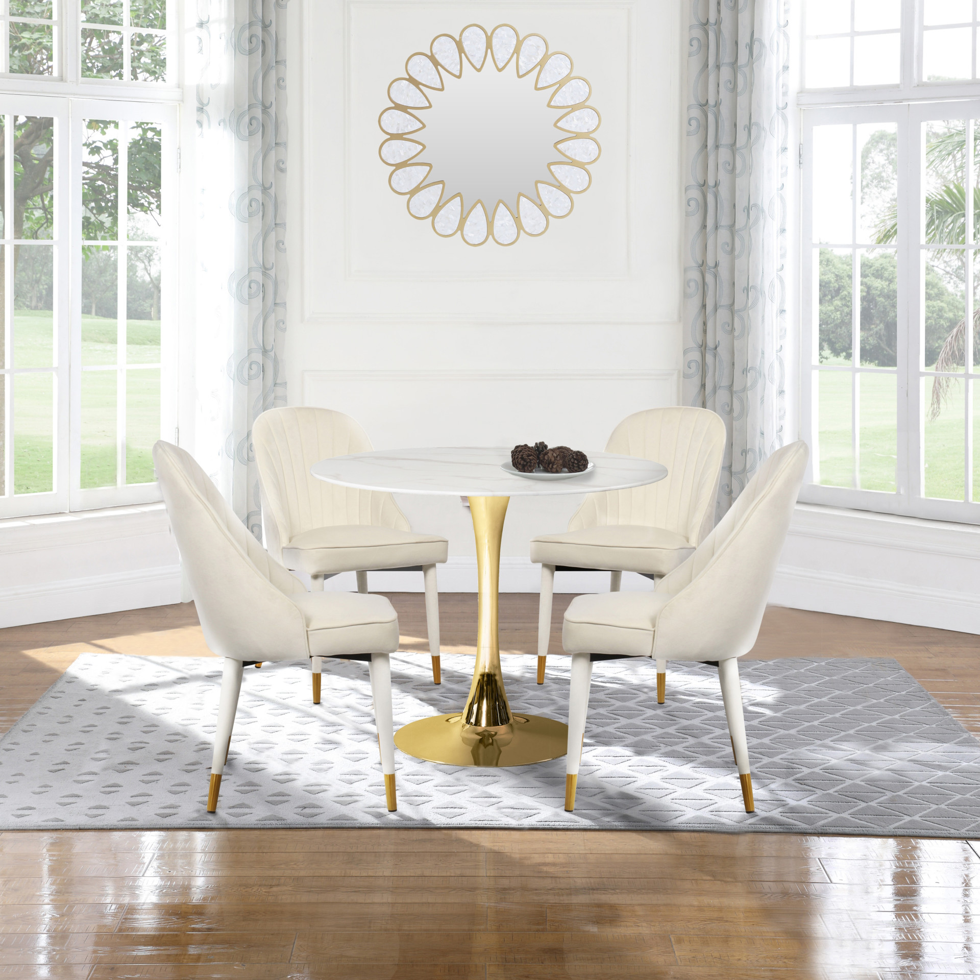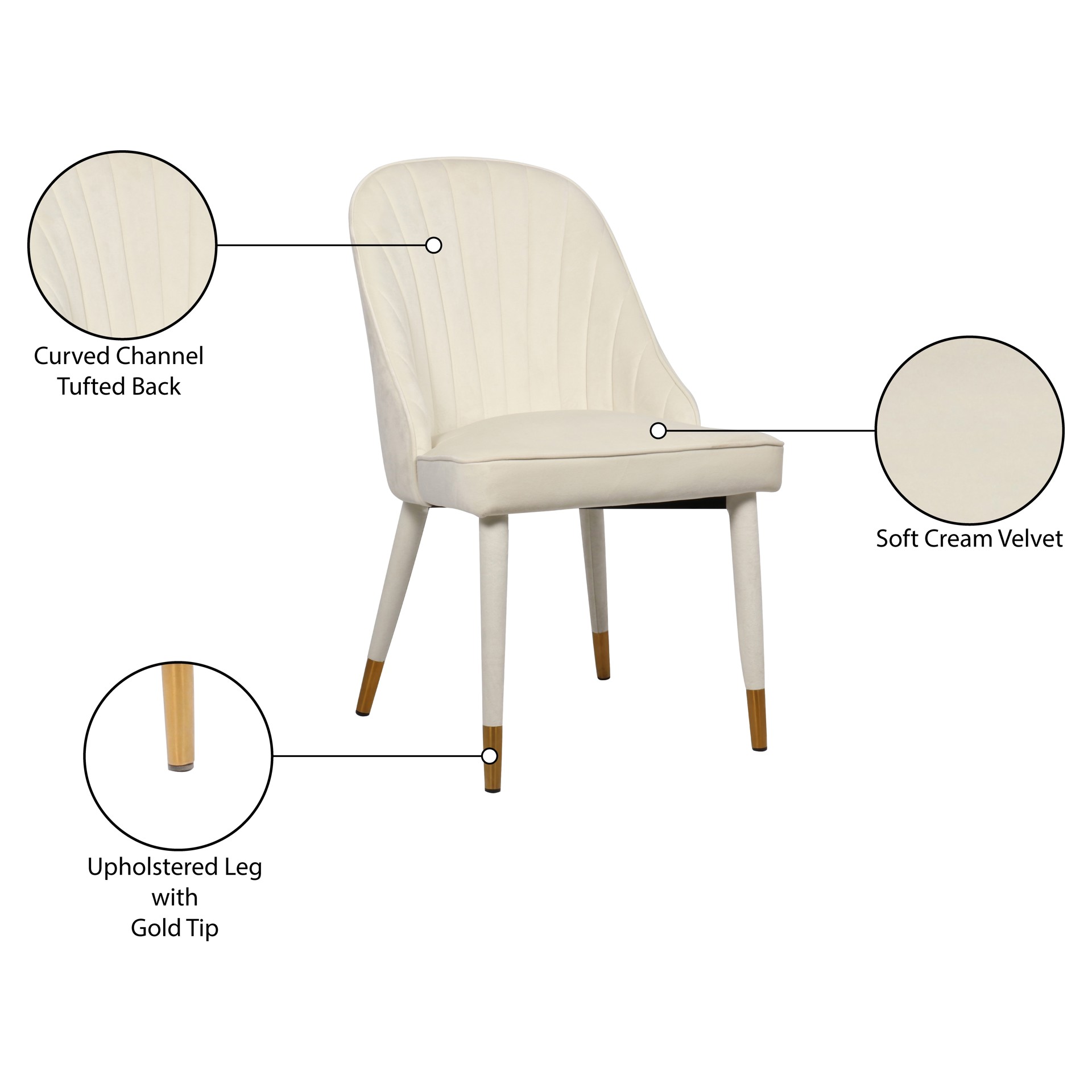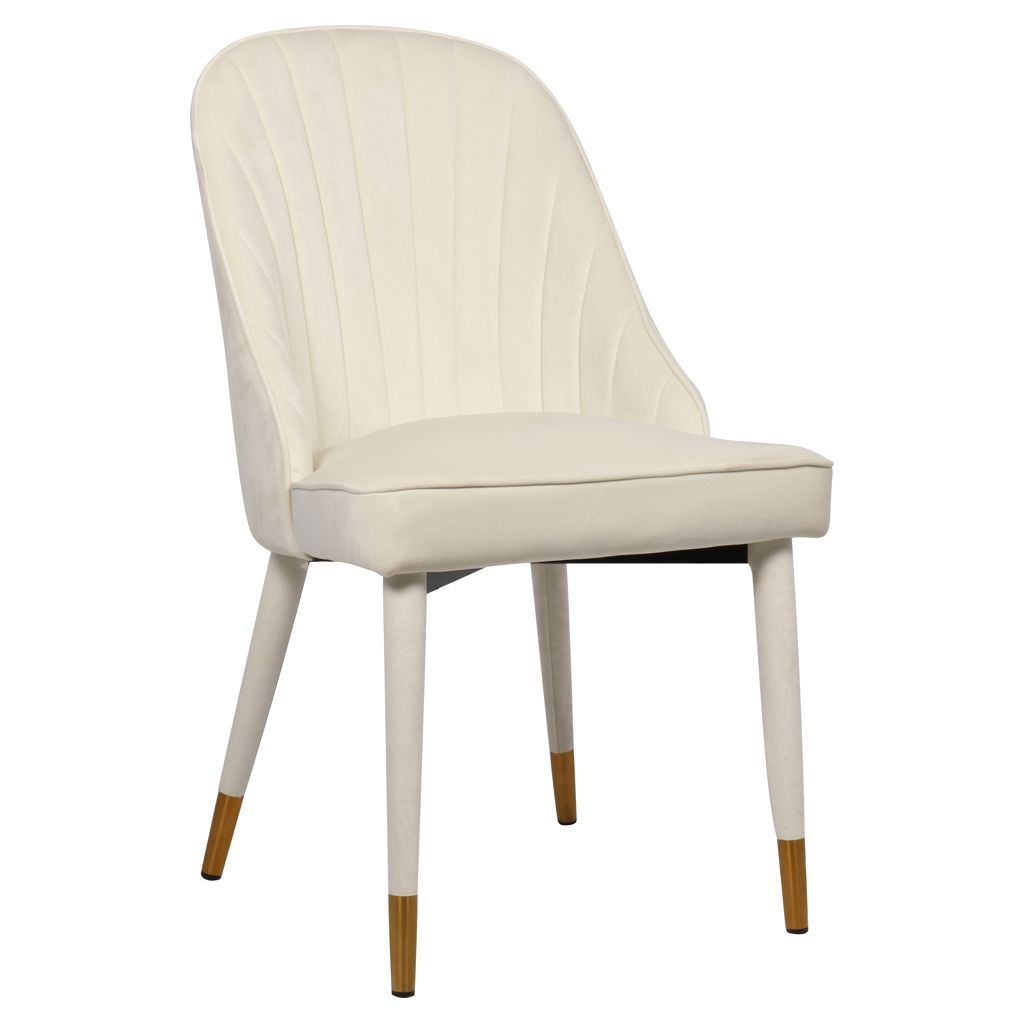 Un somptueux revêtement en velours crème doux recouvre l'extérieur de la chaise, ajoutant à son aspect luxueux et haut de gamme et à sa sensation douce et élégante.