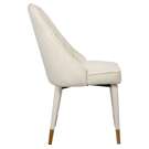 Les pointes dorées sur les pieds de cette belle chaise offrent un minimum de contraste pour un intérêt visuel supplémentaire, tandis que le dossier incurvé capitonné berce les invités dans le confort, afin qu'ils veuillent rester plus longtemps.