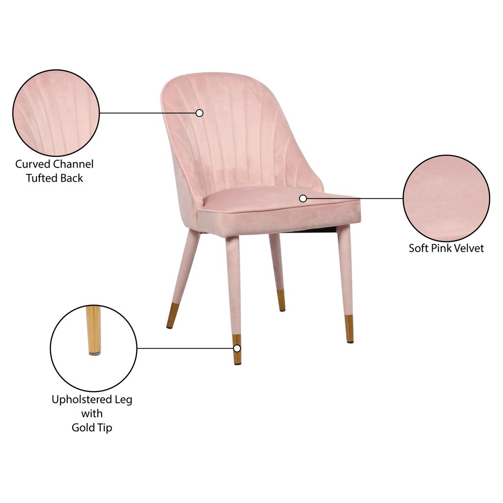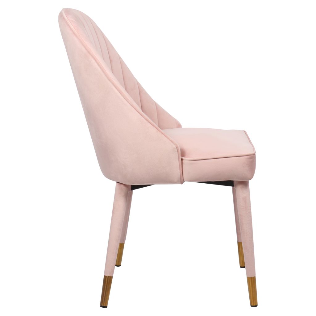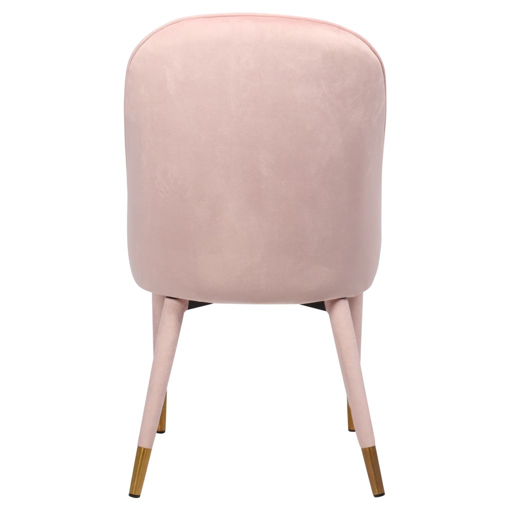Un somptueux revêtement en velours rose tendre recouvre l'extérieur de la chaise, ajoutant à son aspect luxueux et haut de gamme et à sa sensation douce et élégante.