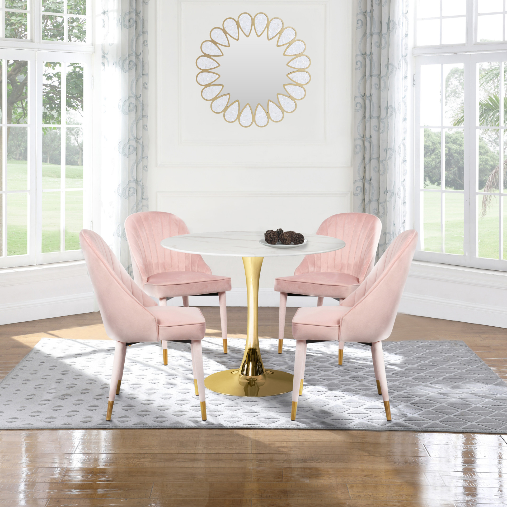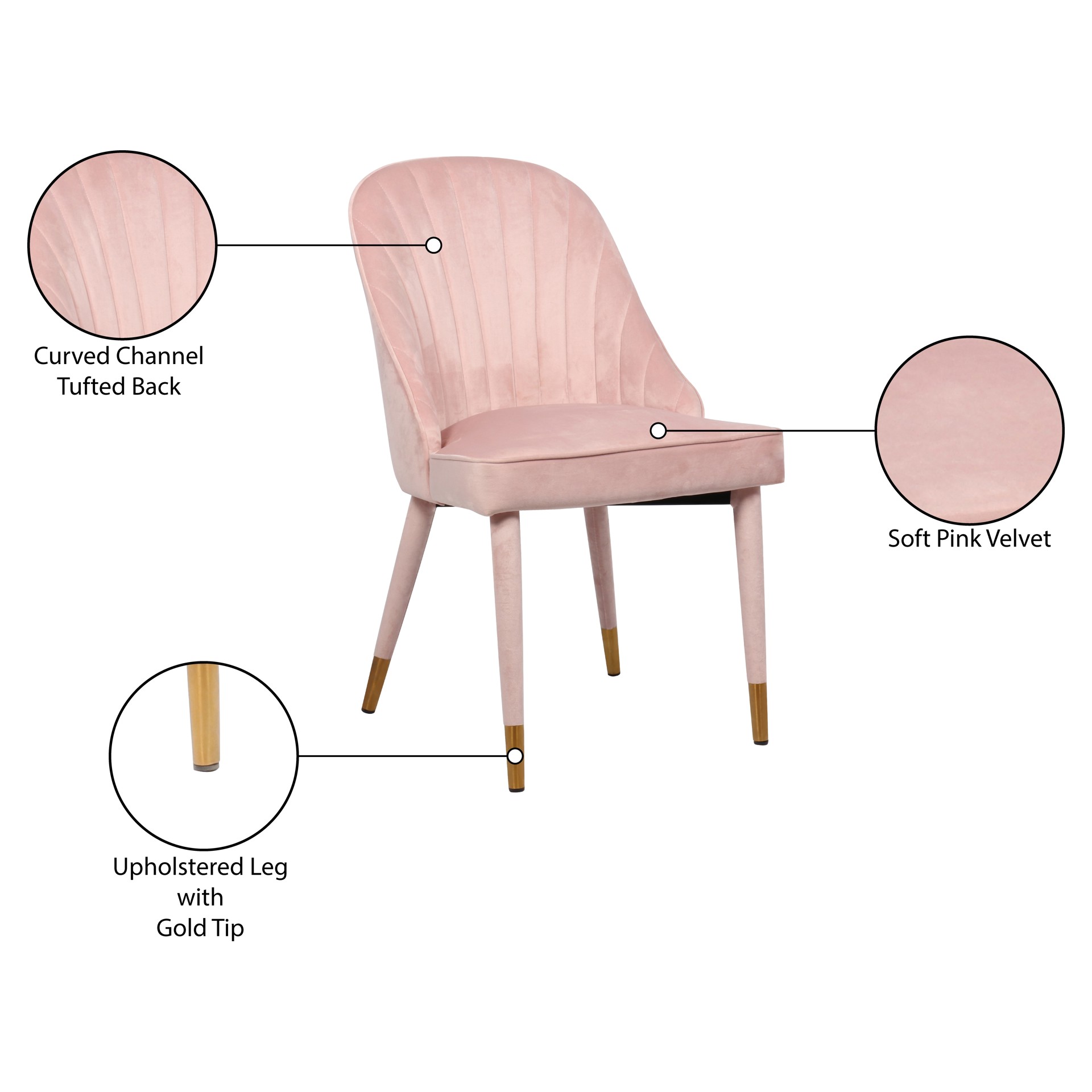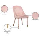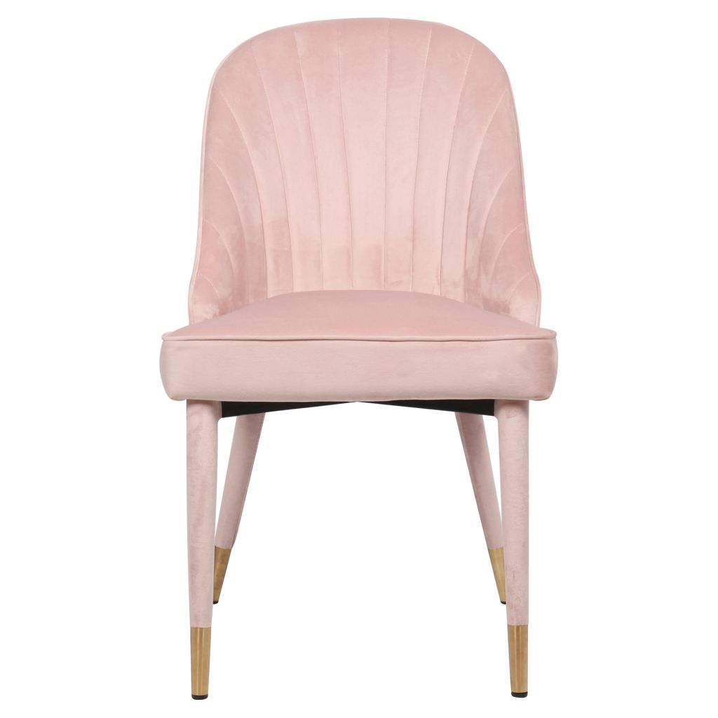 Un somptueux revêtement en velours rose tendre recouvre l'extérieur de la chaise, ajoutant à son aspect luxueux et haut de gamme et à sa sensation douce et élégante.