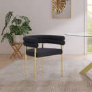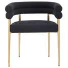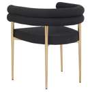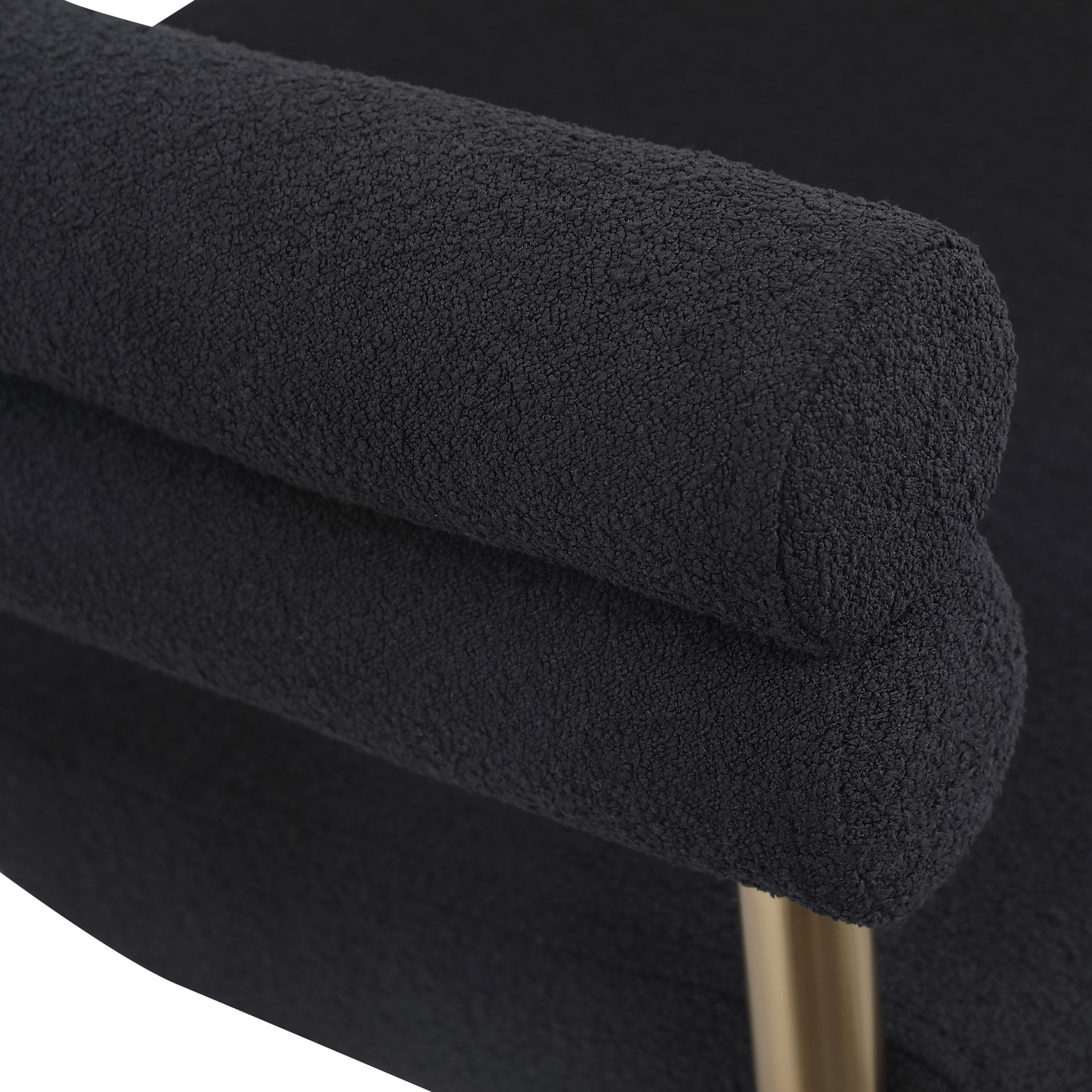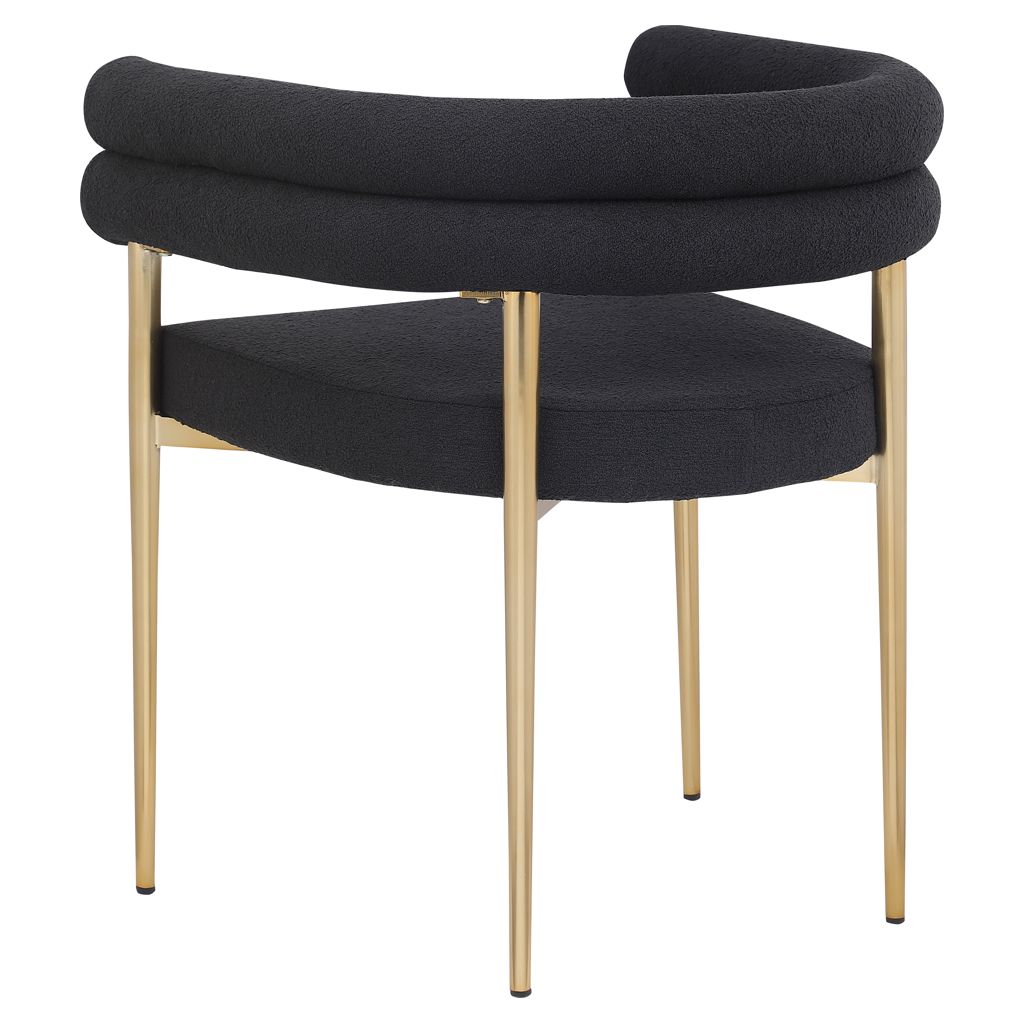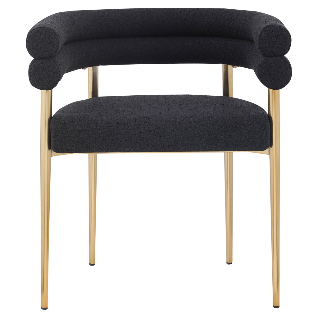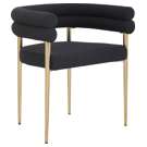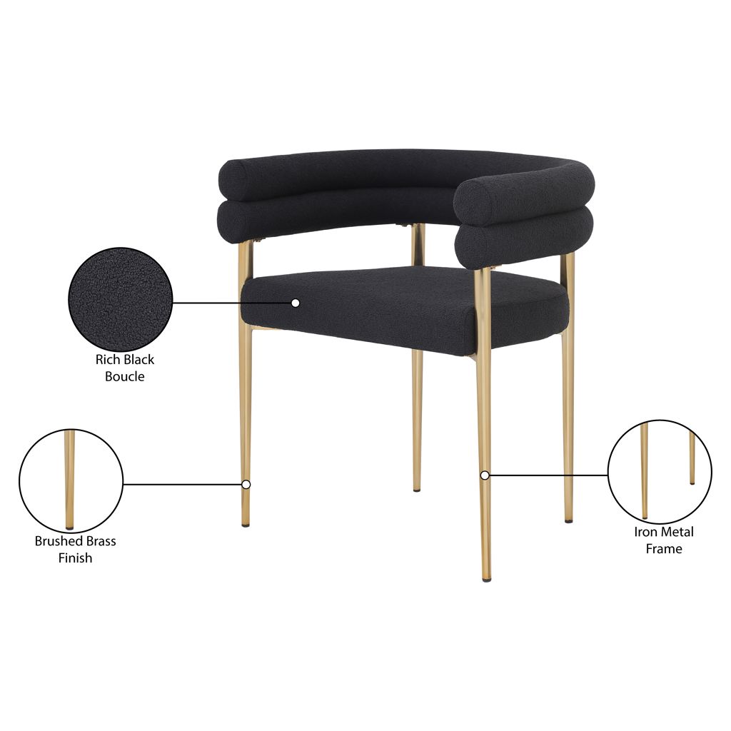 Son cadre incurvé en métal doré brossé soutient son riche siège et son dossier en boucle noire, lui donnant des couleurs contrastées tout en offrant un endroit confortable pour vous asseoir.