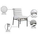 Cette chaise est dotée d'un capitonnage roulé pour un soutien et une durabilité incroyables et présente une conception sans accoudoirs qui facilite la conversation entre les convives.