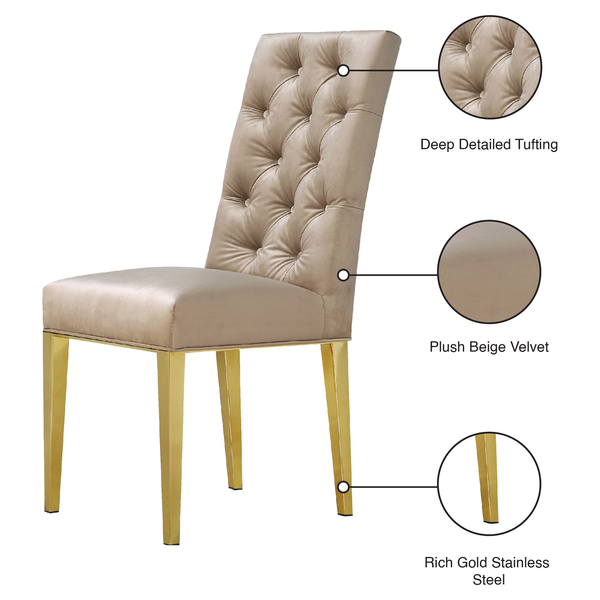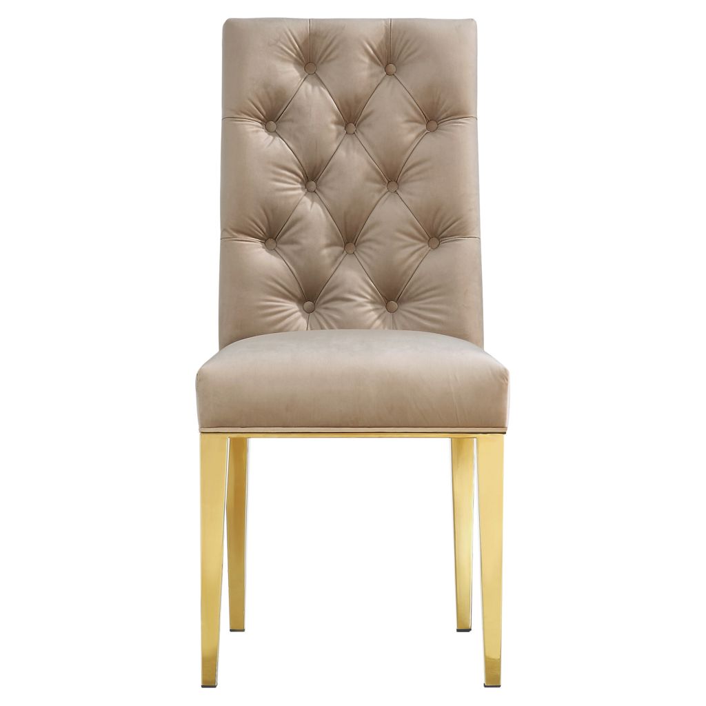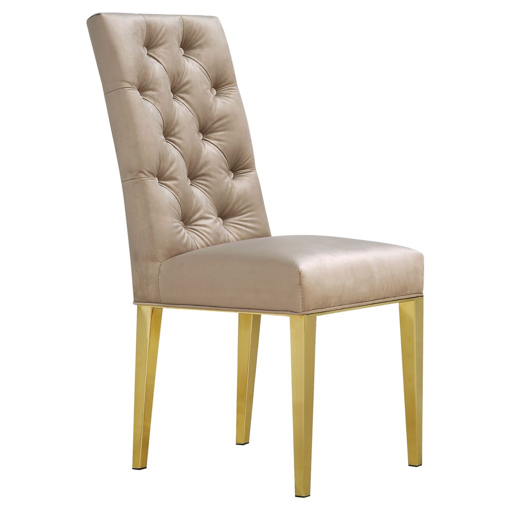 Optez pour cette chaise de salle à manger Capri en velours beige pour un look moderne dans votre espace salle à manger contemporain.