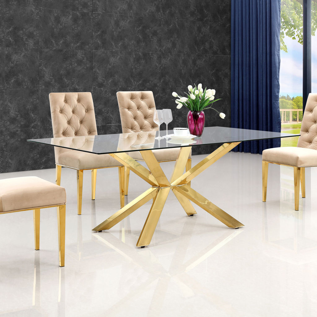 Les pieds sont fabriqués en acier inoxydable pour leur donner de la solidité et un soutien supplémentaire lorsque vous êtes assis, et ils sont finis dans une riche teinte dorée pour un look royal et sophistiqué.
