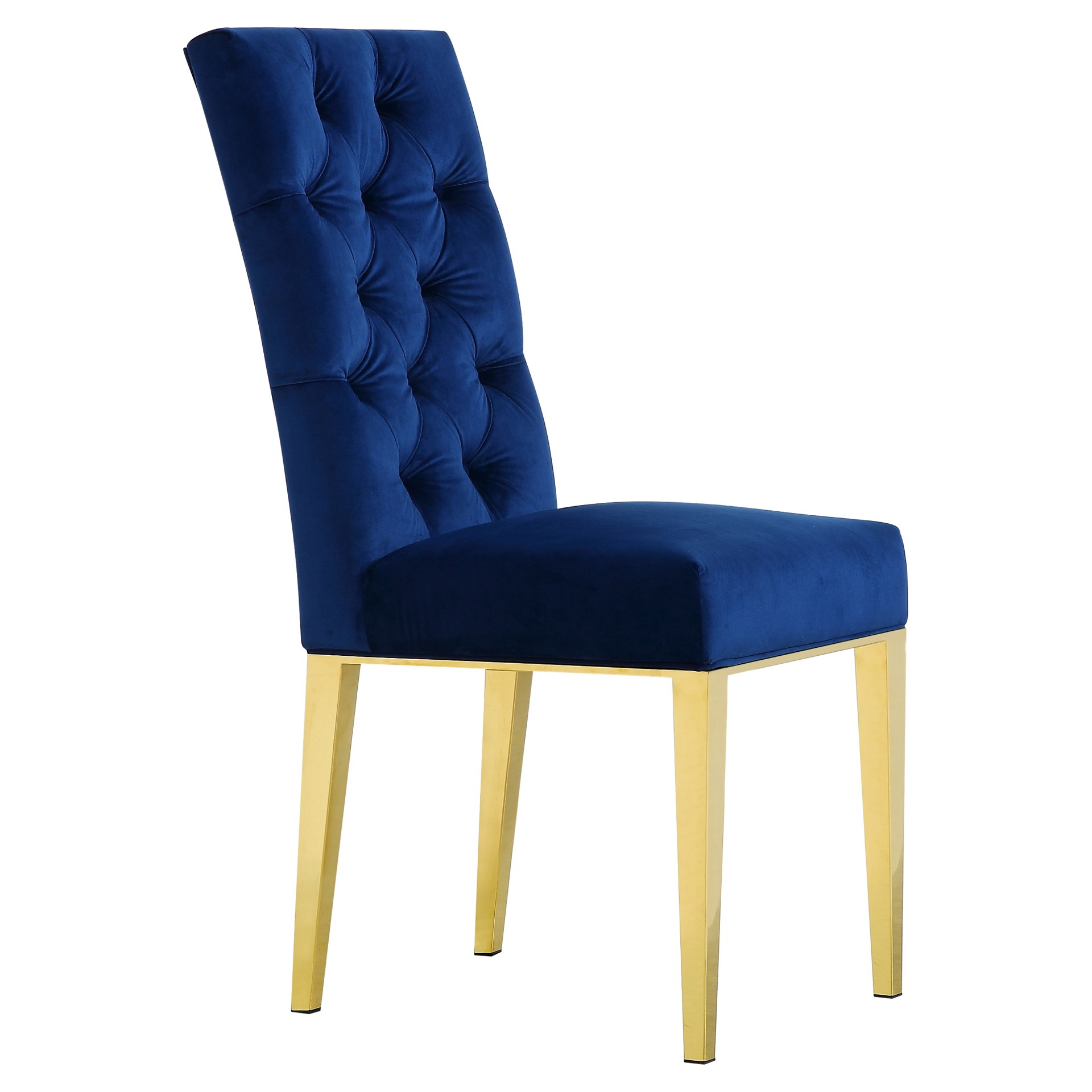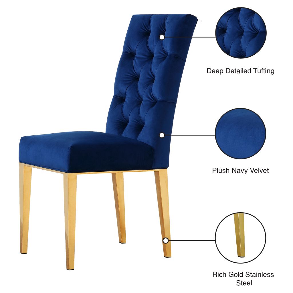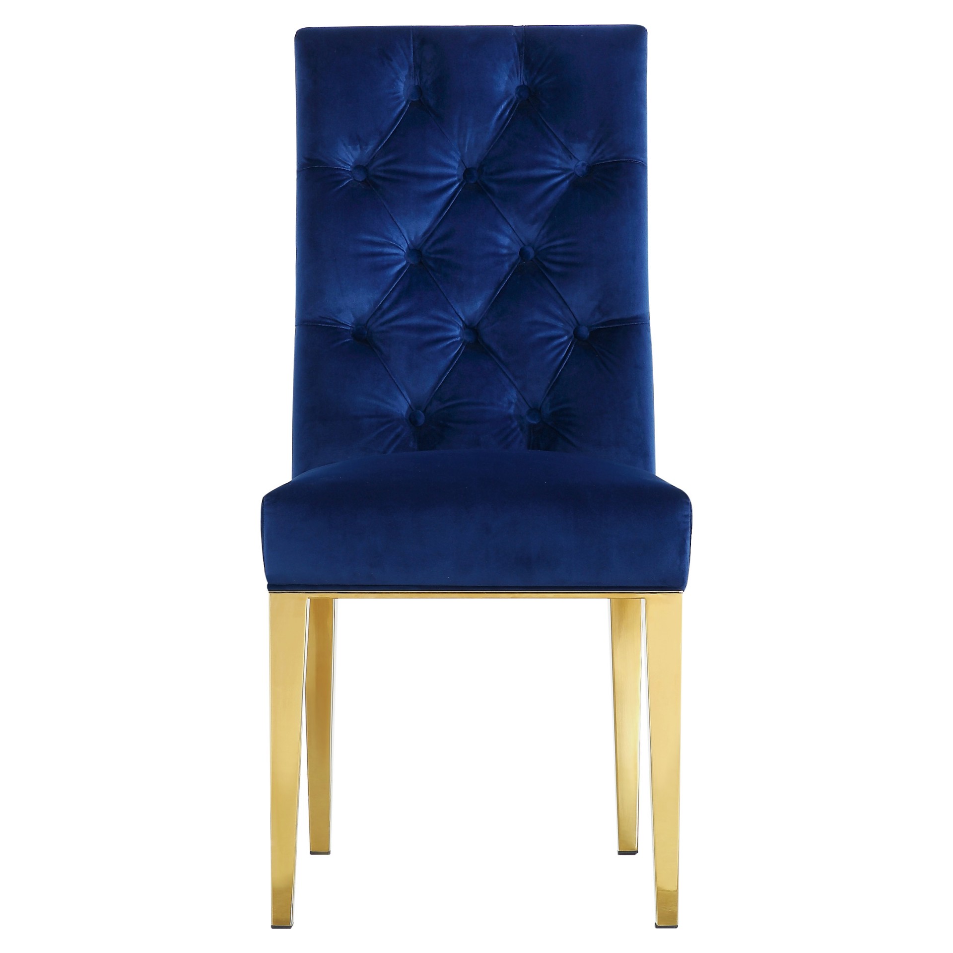 Optez pour cette chaise de salle à manger Capri en velours bleu marine pour un look moderne dans votre espace salle à manger contemporain.