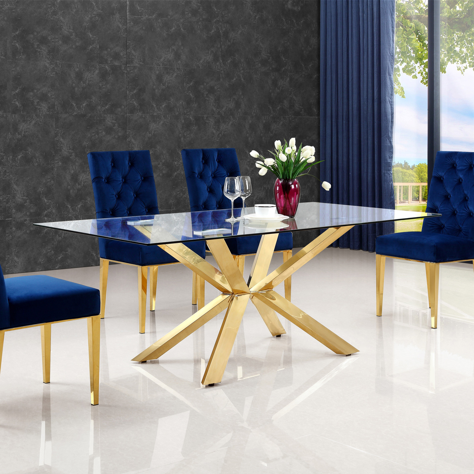 Les pieds sont fabriqués en acier inoxydable pour leur donner de la solidité et un soutien supplémentaire lorsque vous êtes assis, et ils sont finis dans une riche teinte dorée pour un look royal et sophistiqué.