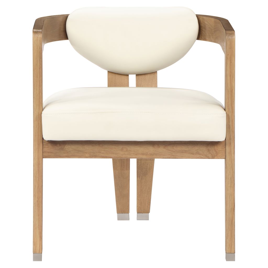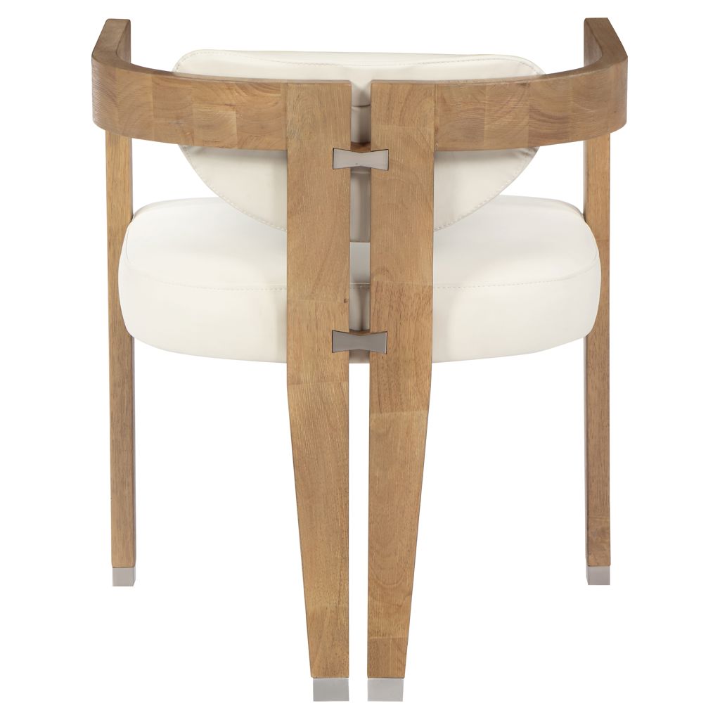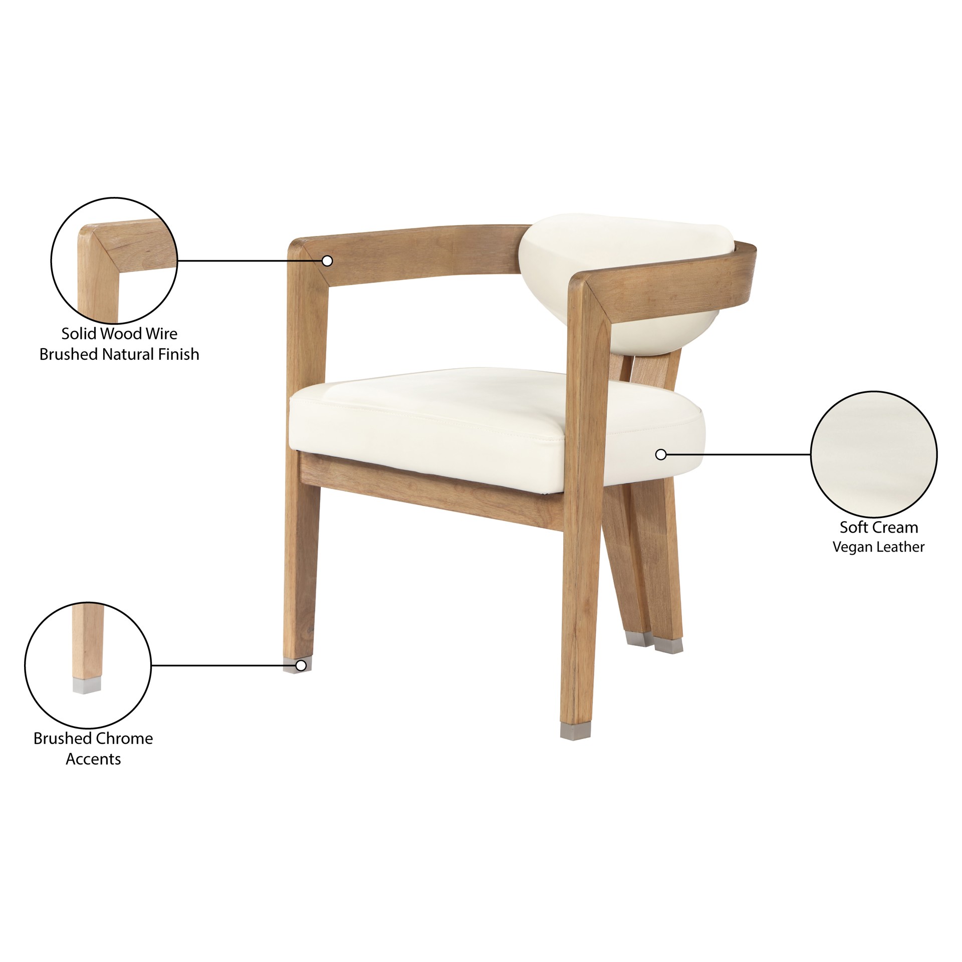 Un coussin et un dossier en similicuir crème doux offrent un confort lorsque vous êtes assis, et des accents chromés brossés ajoutent une touche de couleur à la chaise.