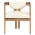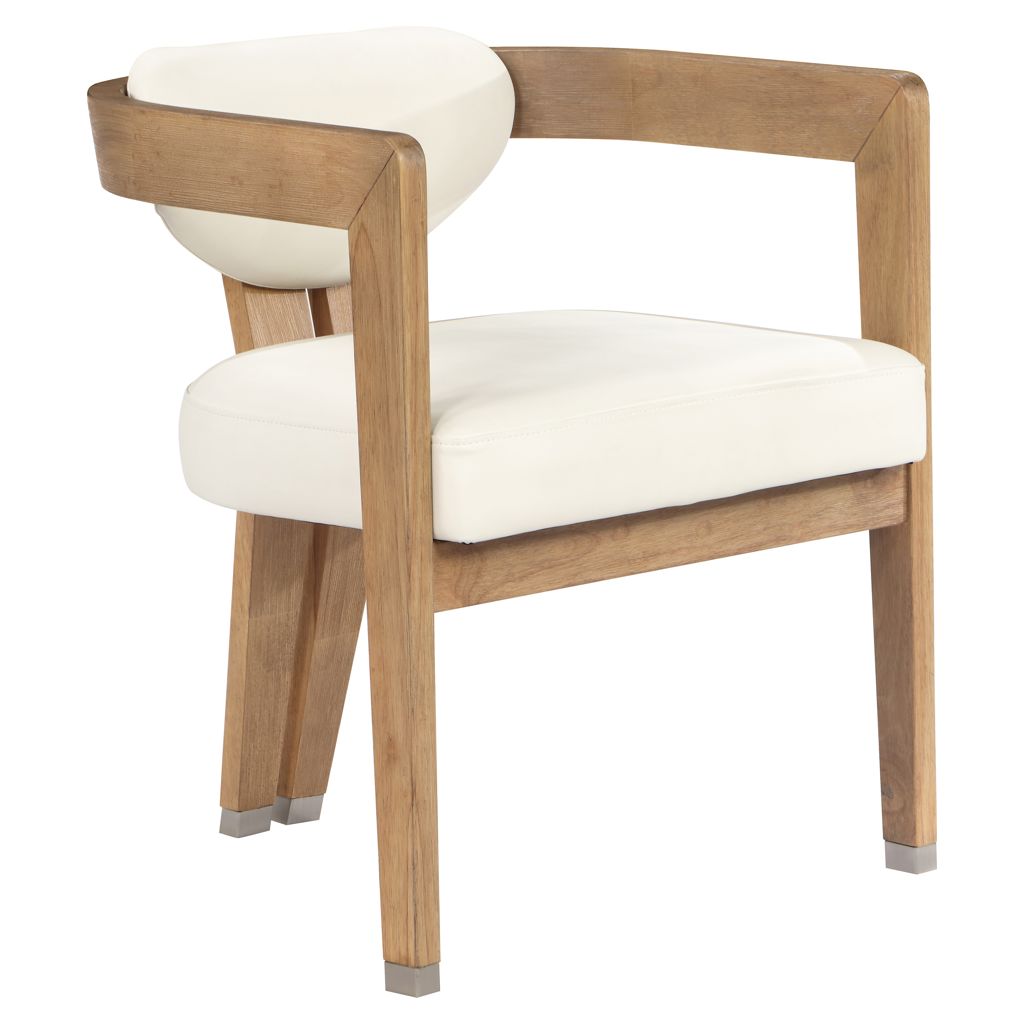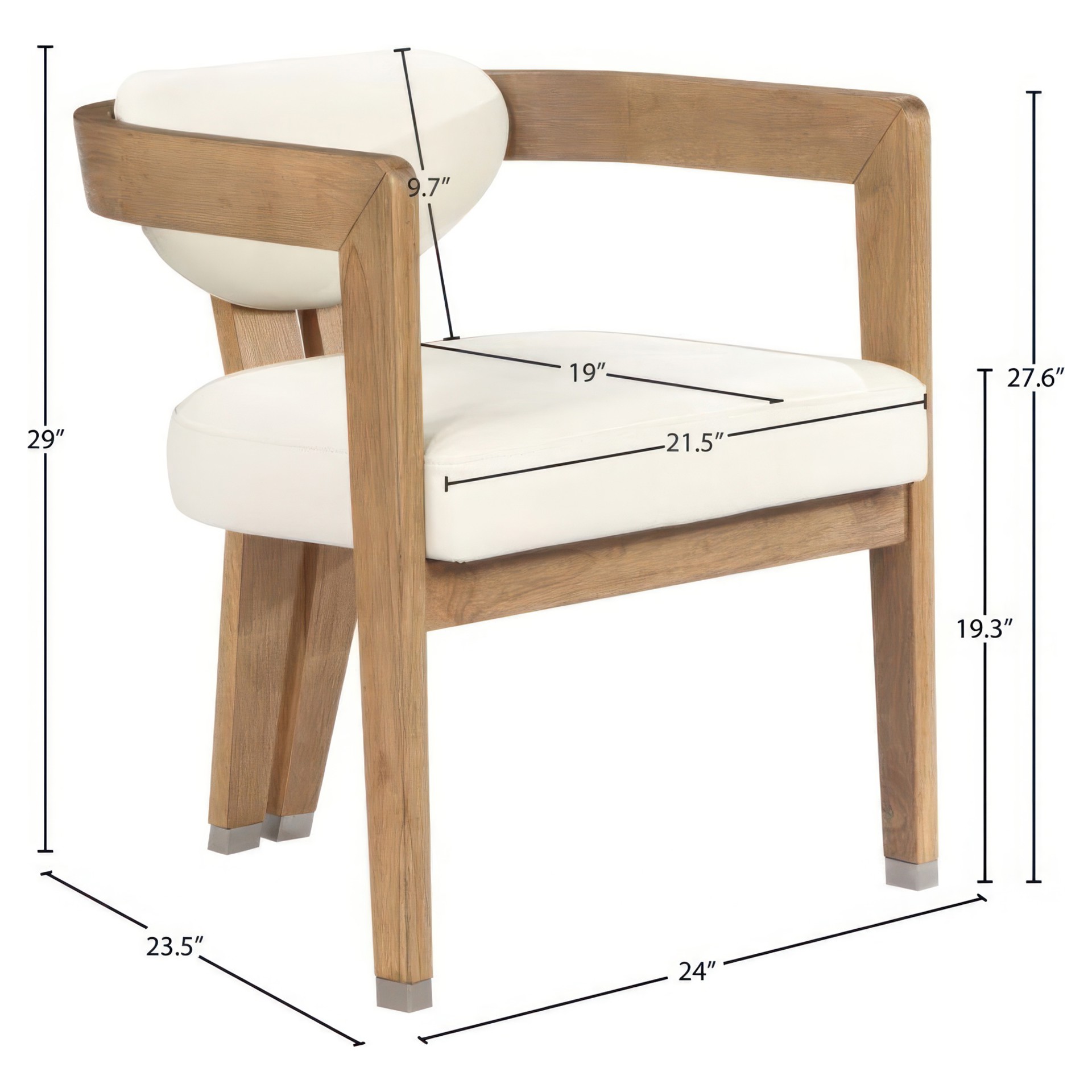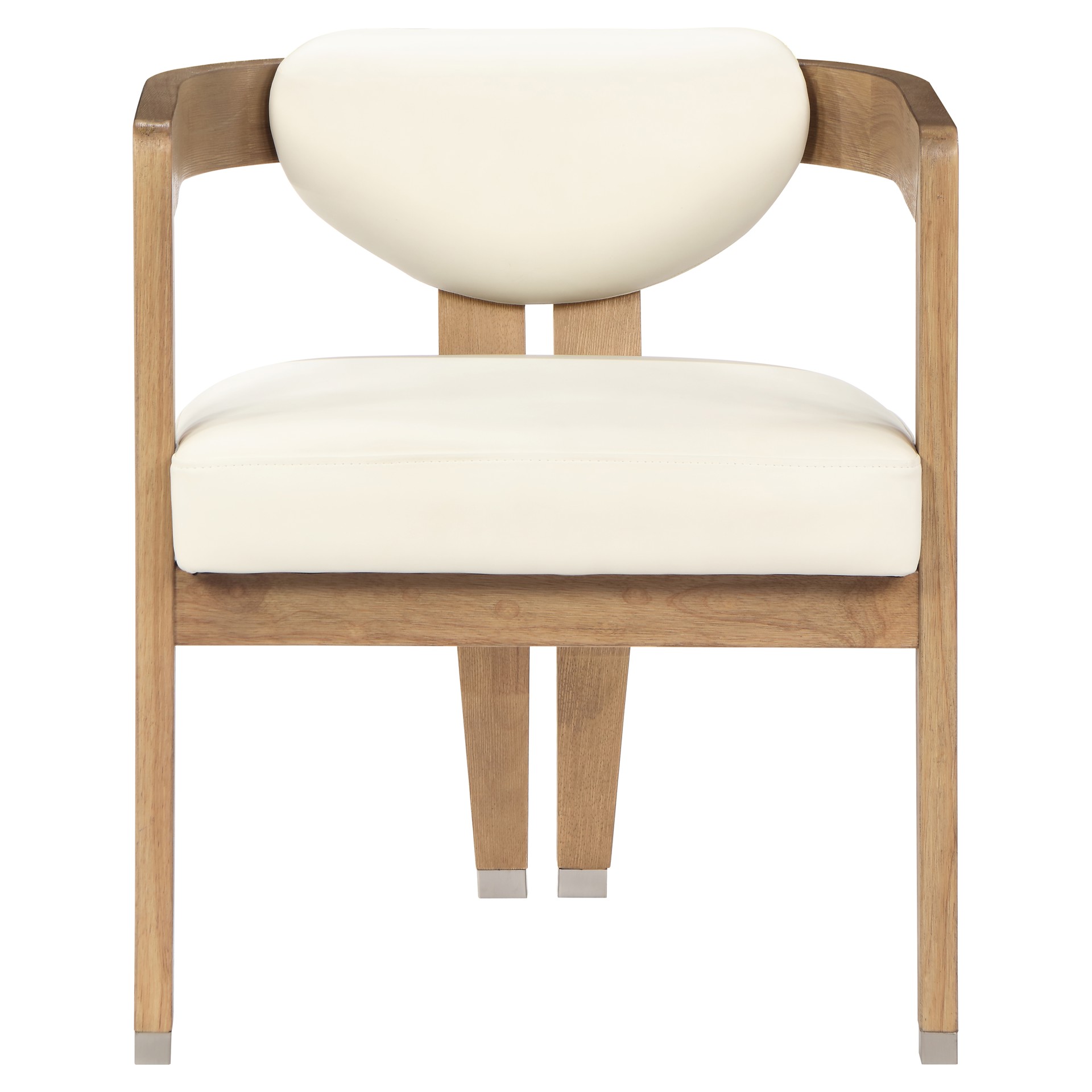 Un coussin et un dossier en similicuir crème doux offrent un confort lorsque vous êtes assis, et des accents chromés brossés ajoutent une touche de couleur à la chaise.