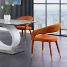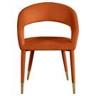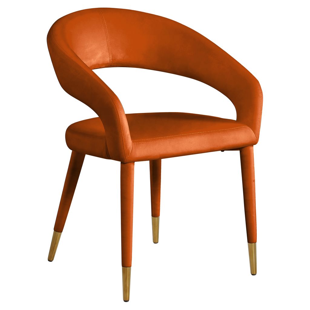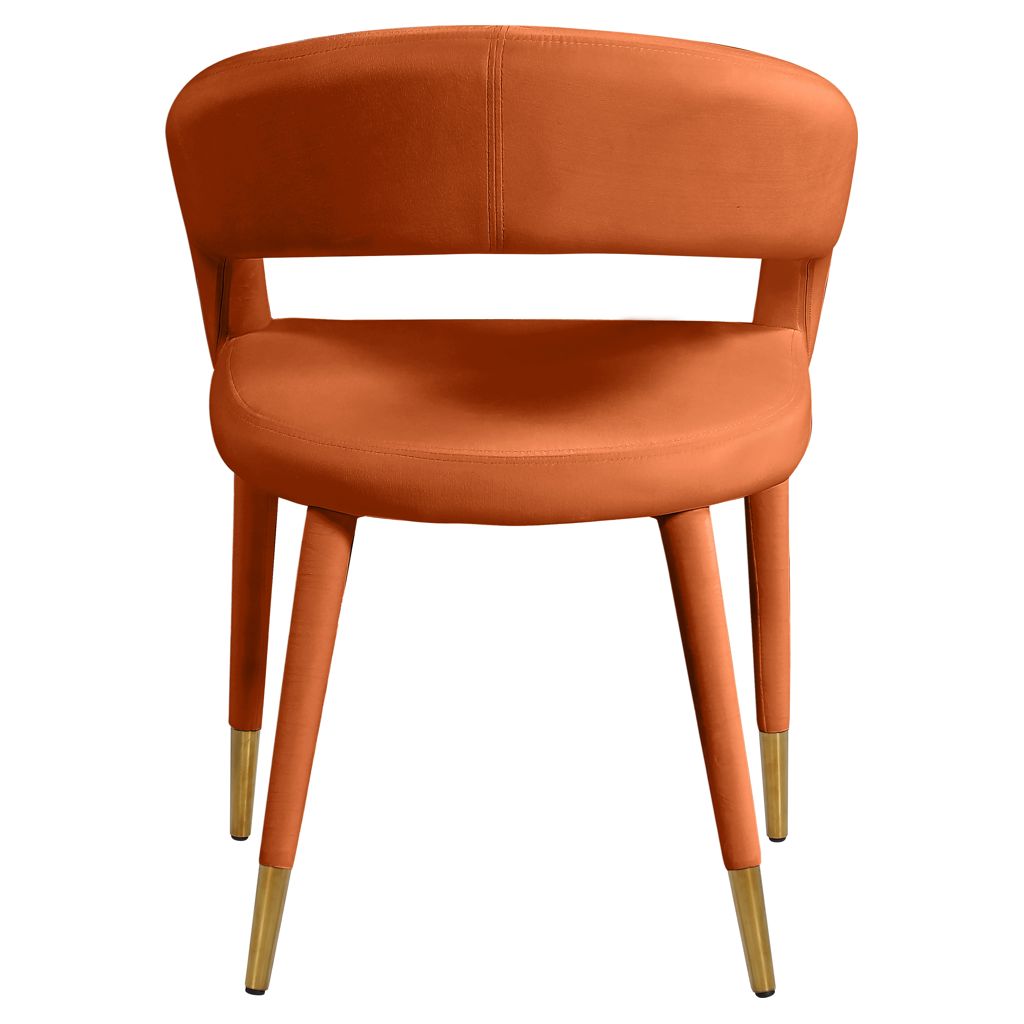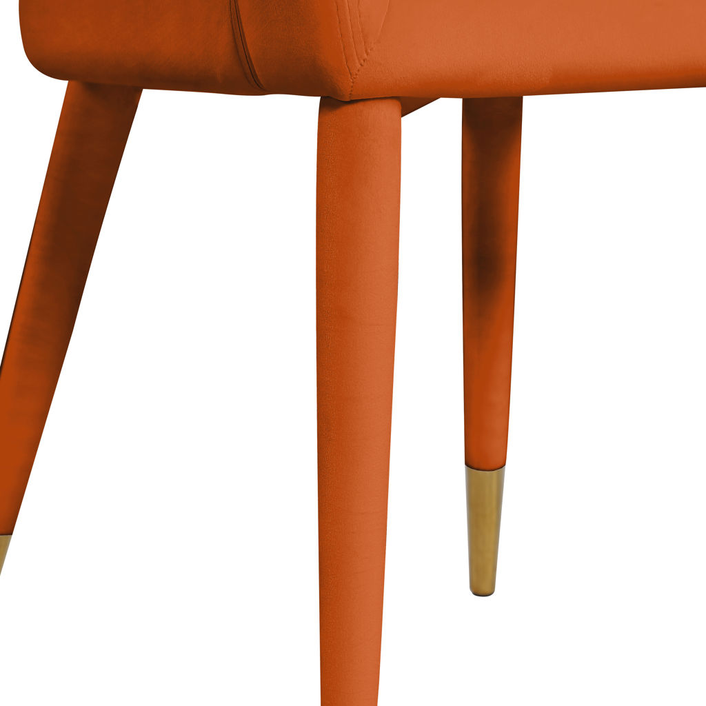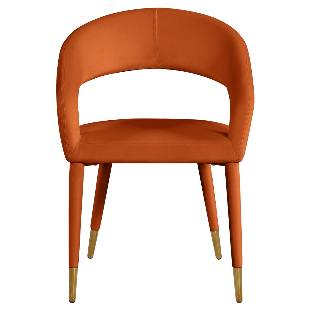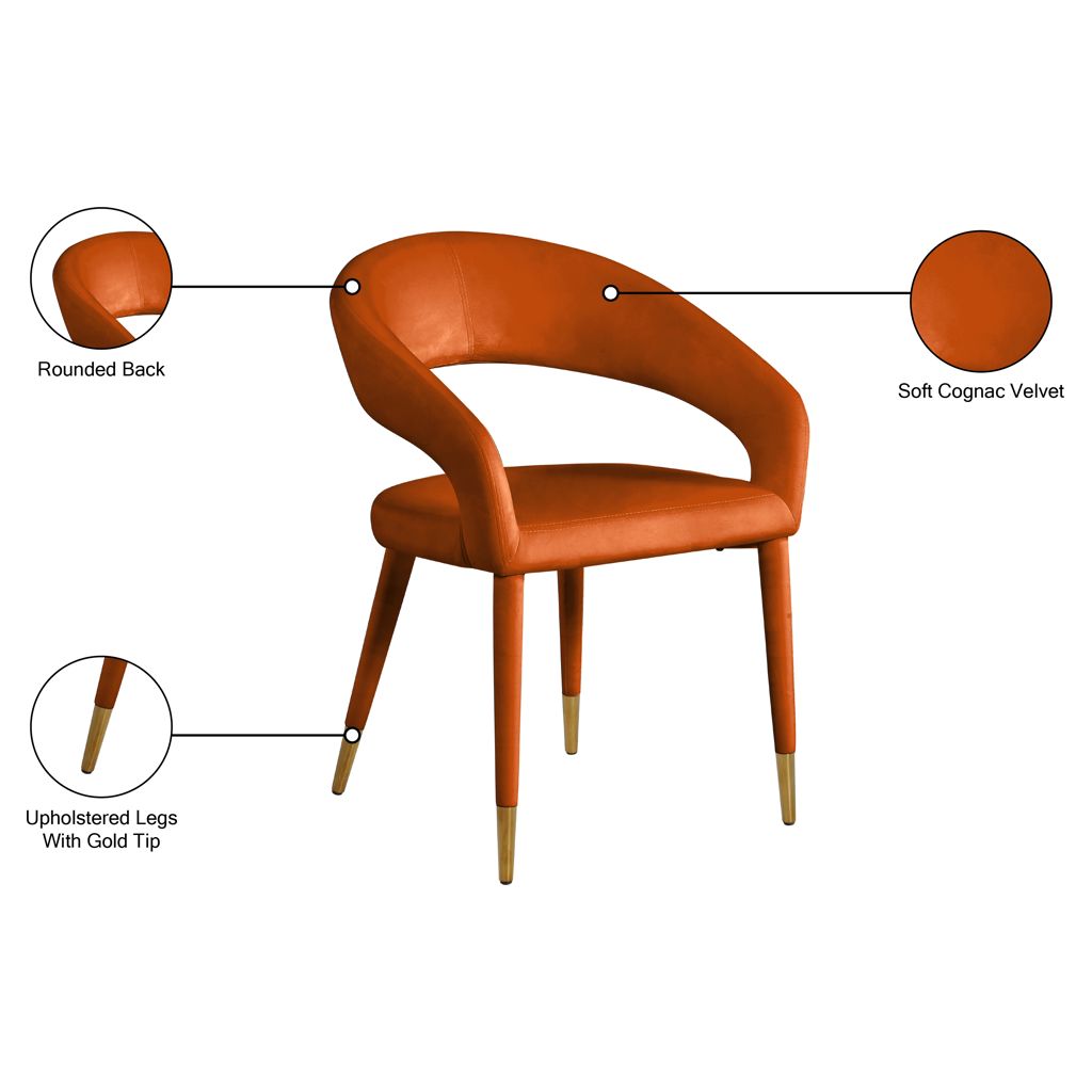 Le revêtement en velours cognac doux fait de cette chaise de salle à manger une option élégante et invitante à associer à votre table de salle à manger préférée.