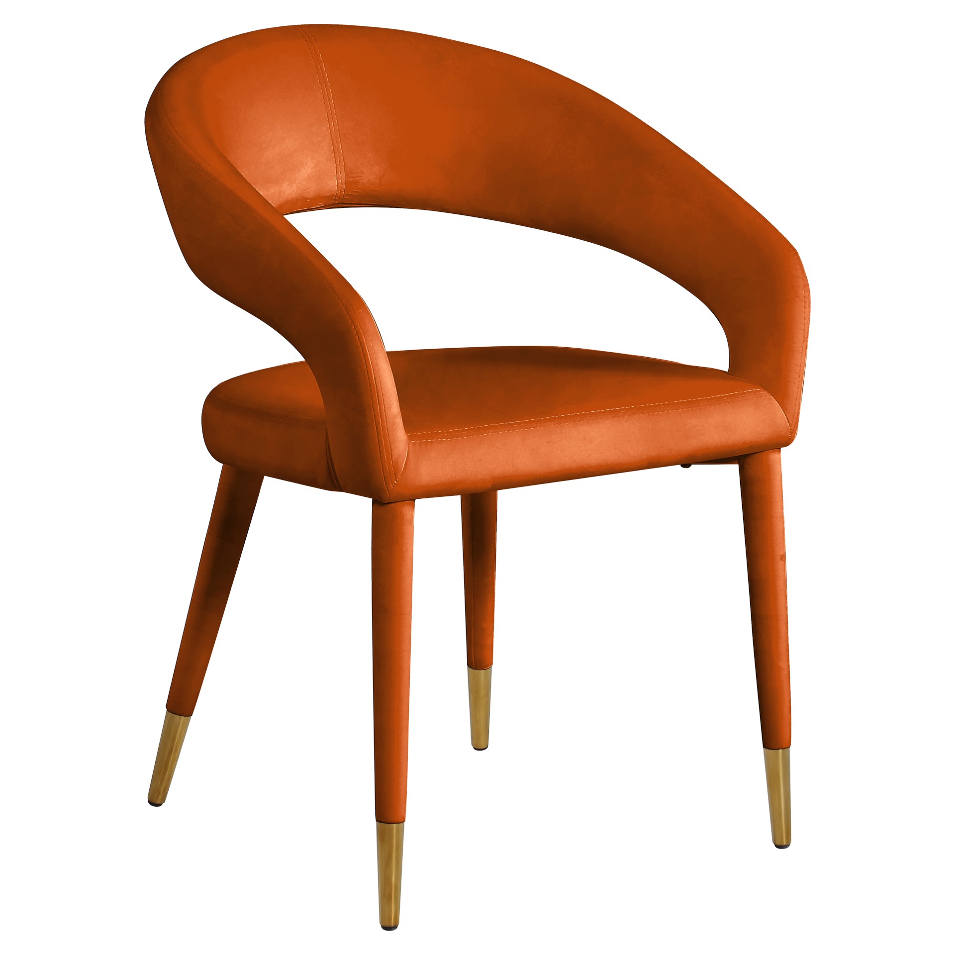 Le dossier arrondi ajoute du confort à l'heure des repas et confère à la chaise une touche chic et accrocheuse, tandis que les pieds effilés surmontés de pointes dorées confèrent à la chaise une finition élégante.