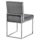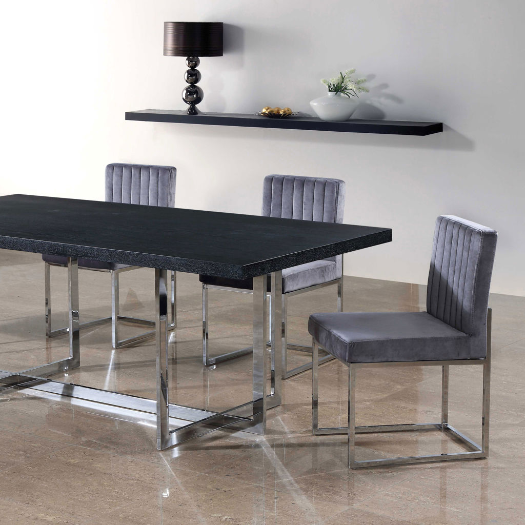 Le siège et le dossier sont recouverts de velours gris riche pour une ambiance somptueuse et une touche de couleur somptueuse pour égayer votre pièce, et les deux sont bien rembourrés pour garantir que les convives restent à l'aise pendant qu'ils savourent leur repas.