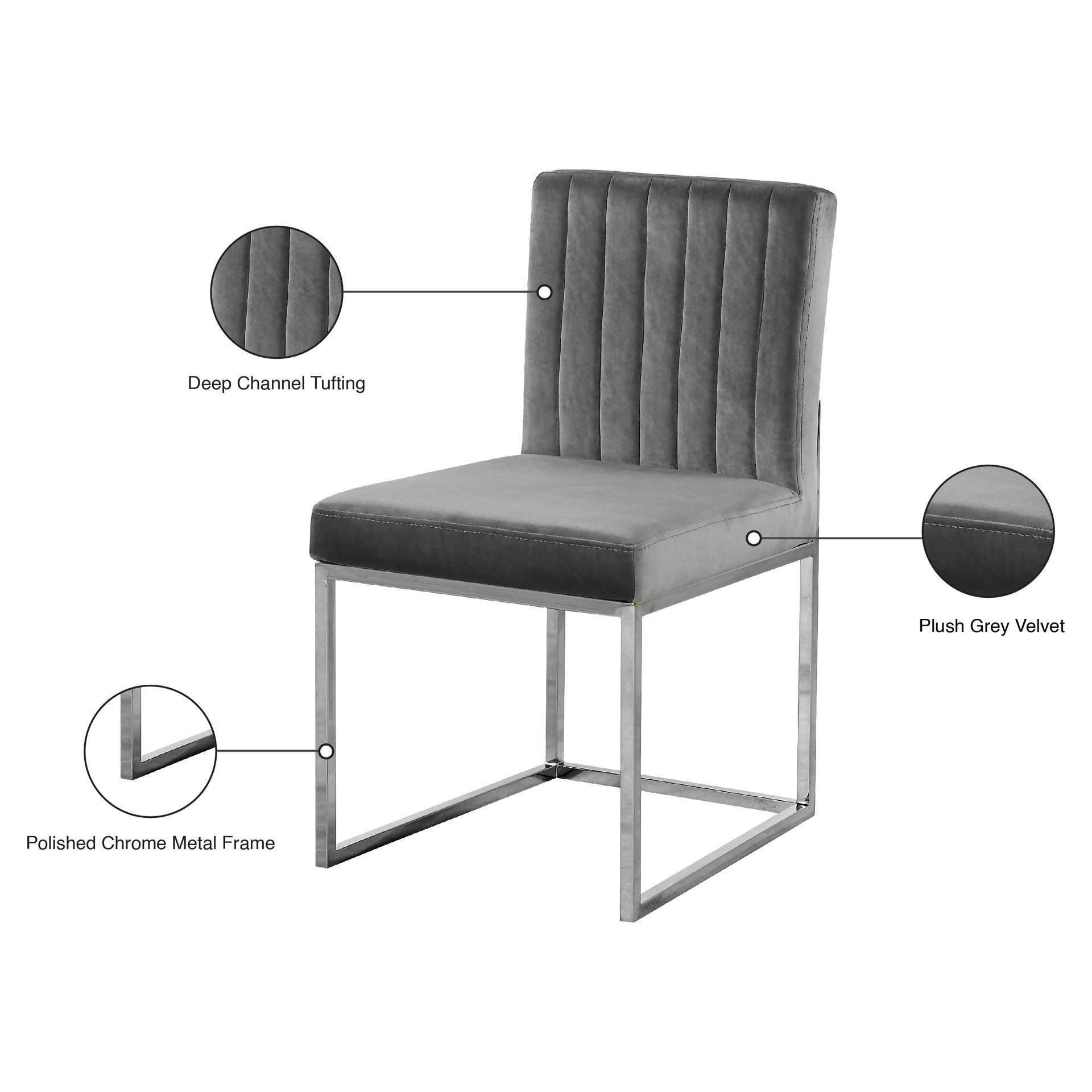 Amenez la salle à manger à un nouveau niveau chic avec cette chaise de salle à manger en velours gris Giselle.