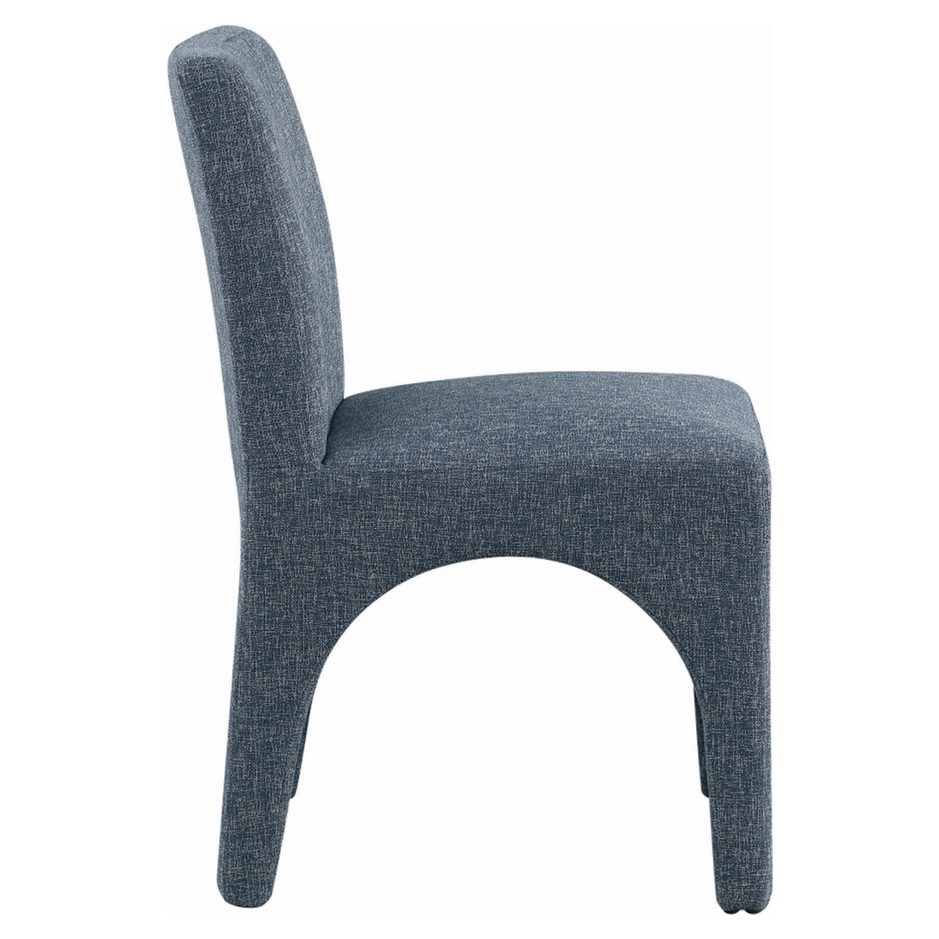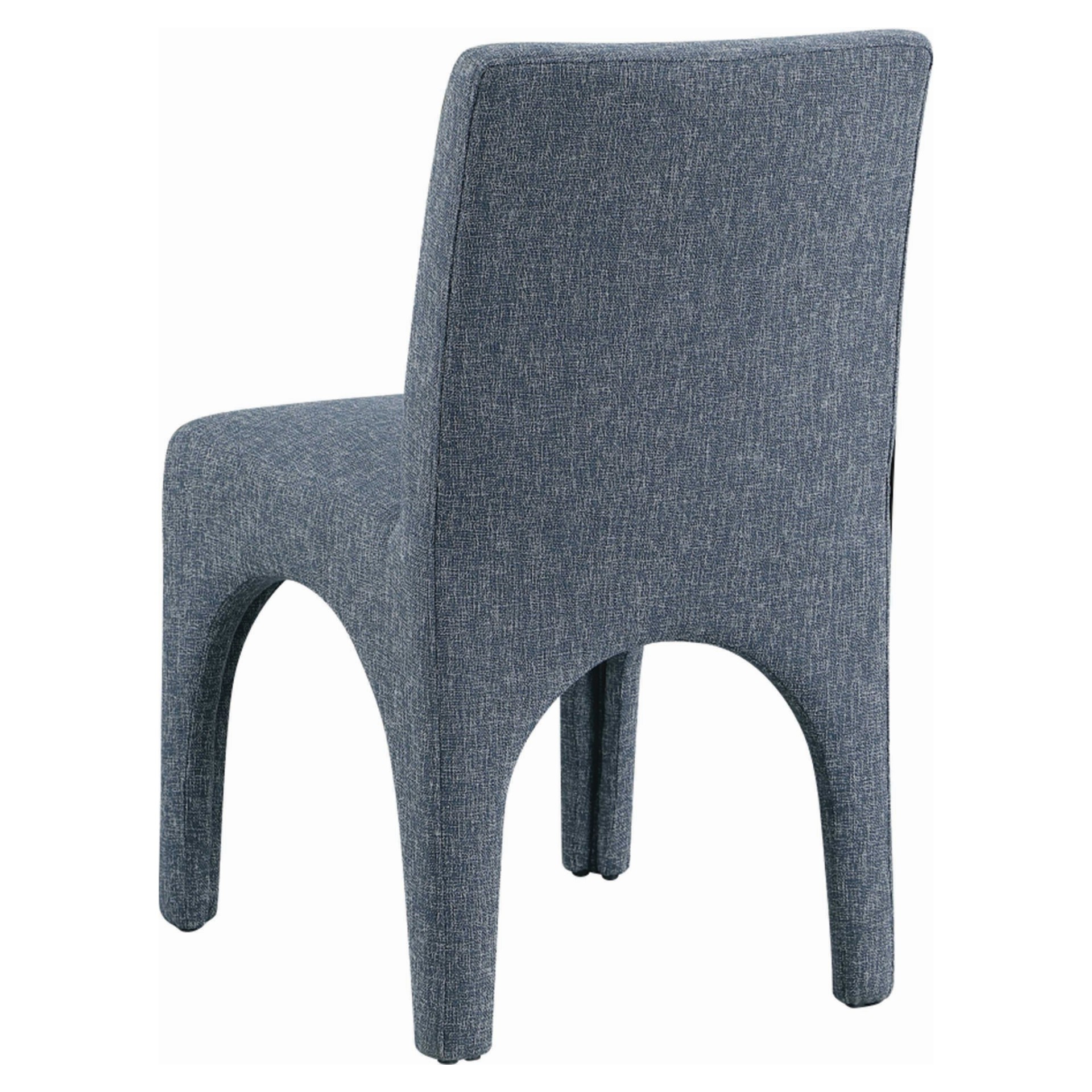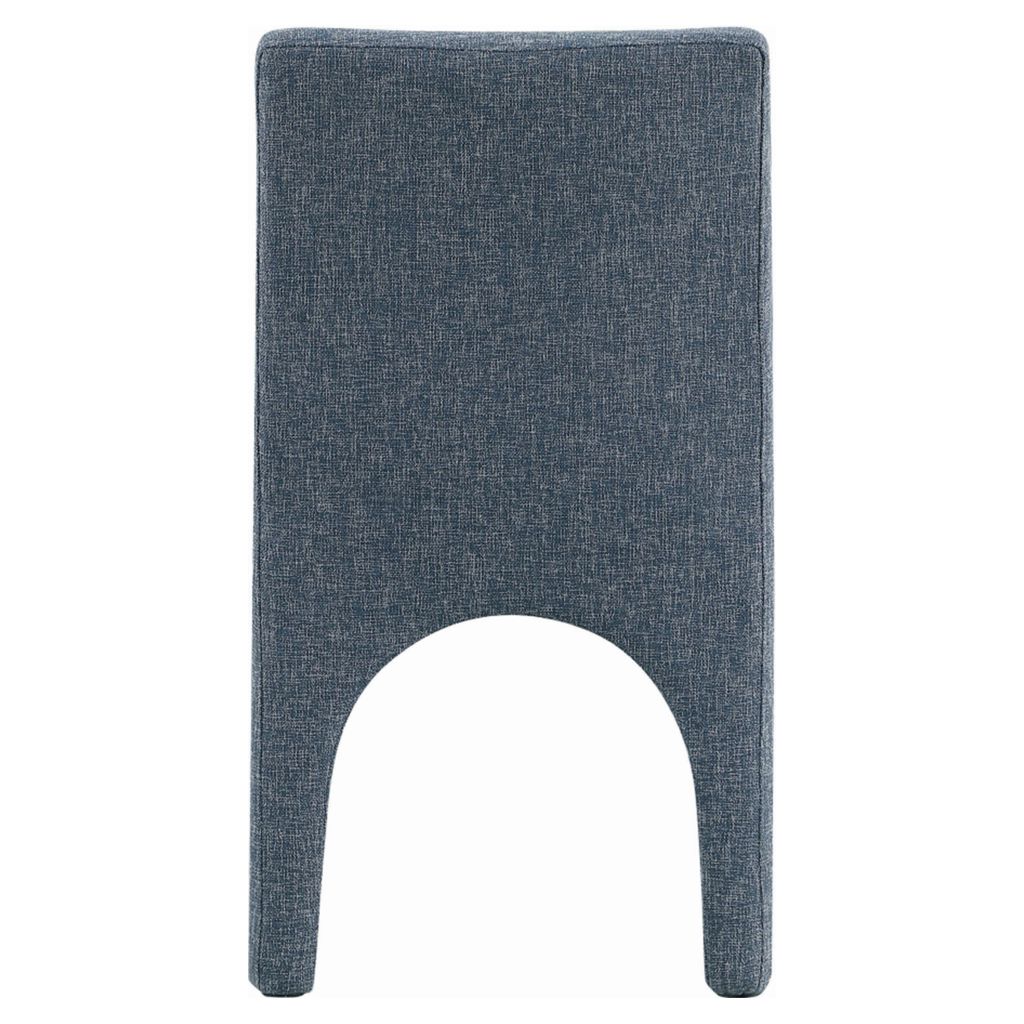 Cette chaise est recouverte d'un tissu bleu moelleux au subtil tissage blanc, donnant à votre salle à manger un look raffiné et sophistiqué.