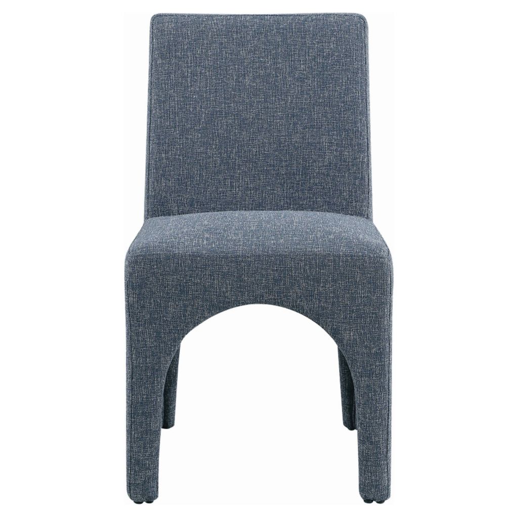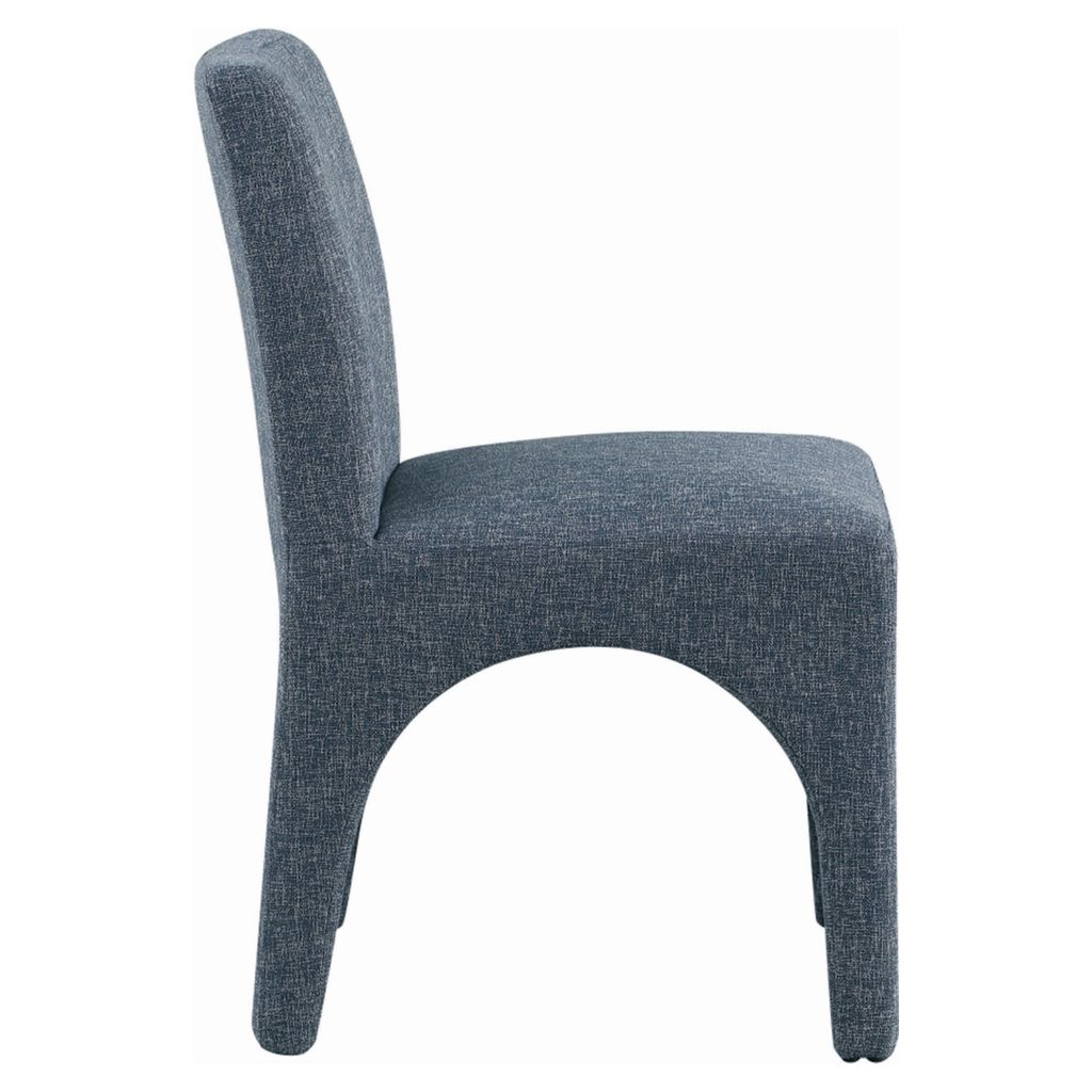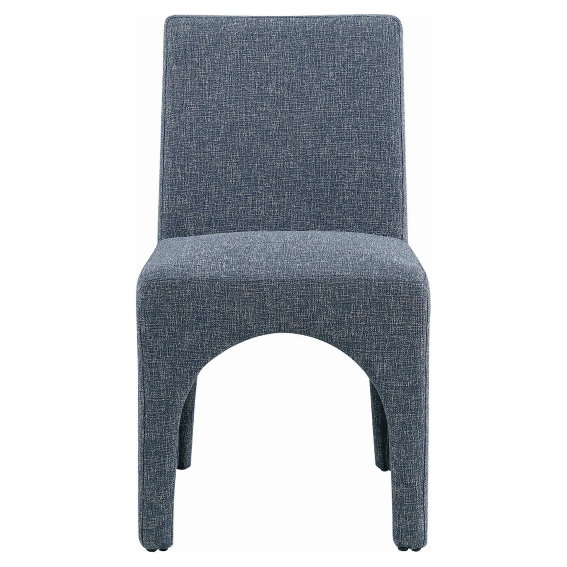 Cette chaise est recouverte d'un tissu bleu moelleux au subtil tissage blanc, donnant à votre salle à manger un look raffiné et sophistiqué.