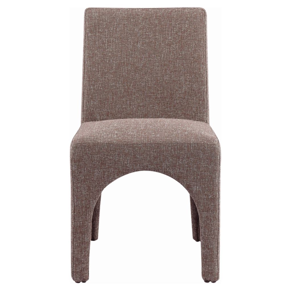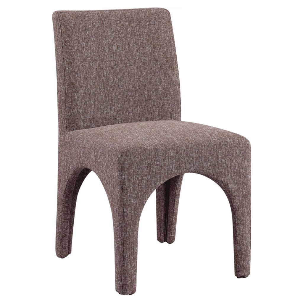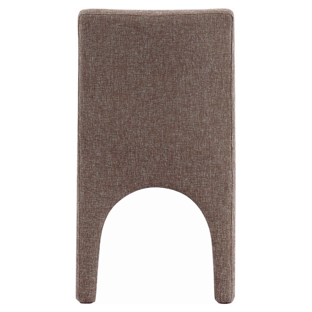 Cette chaise est recouverte d'un tissu brun moelleux au subtil tissage blanc, donnant à votre salle à manger un look raffiné et sophistiqué.