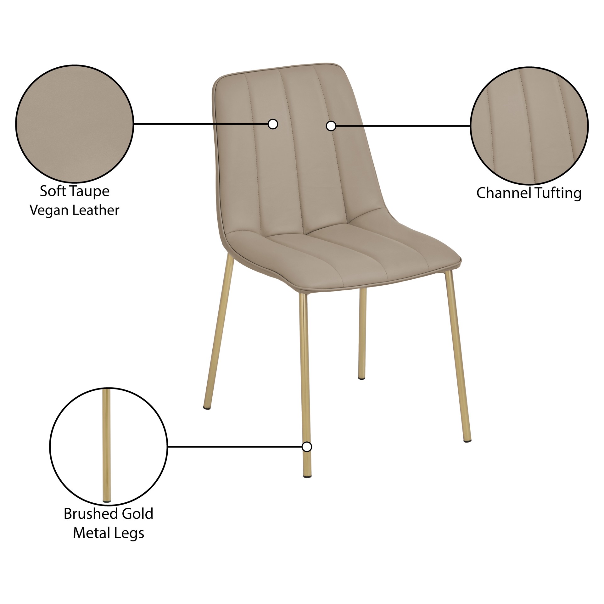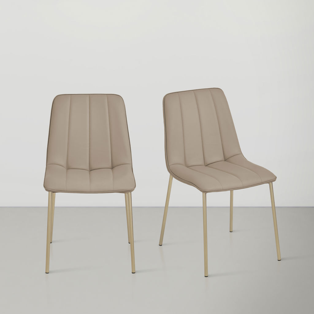 Cette chaise classique a une touche moderne avec son revêtement en similicuir taupe doux qui ressemble à la vraie chose mais nécessite un minimum d'entretien.
