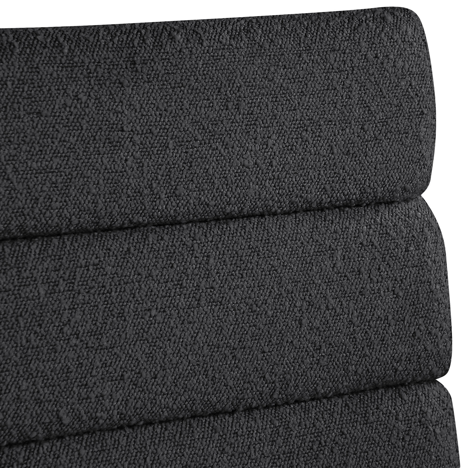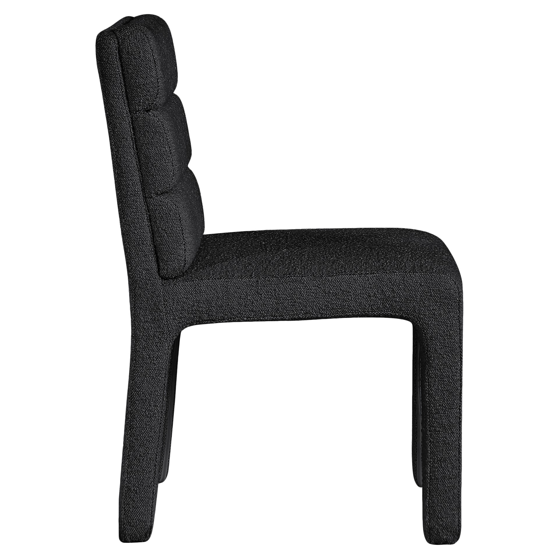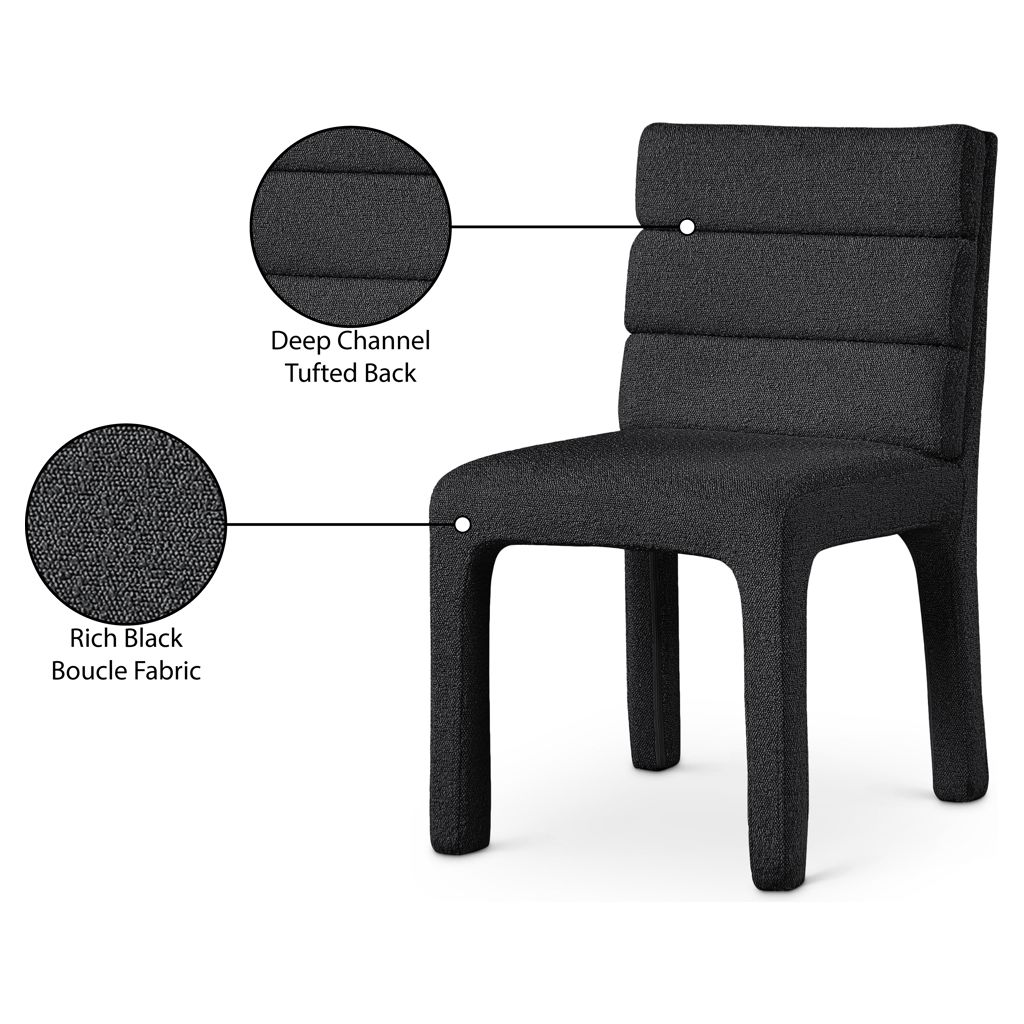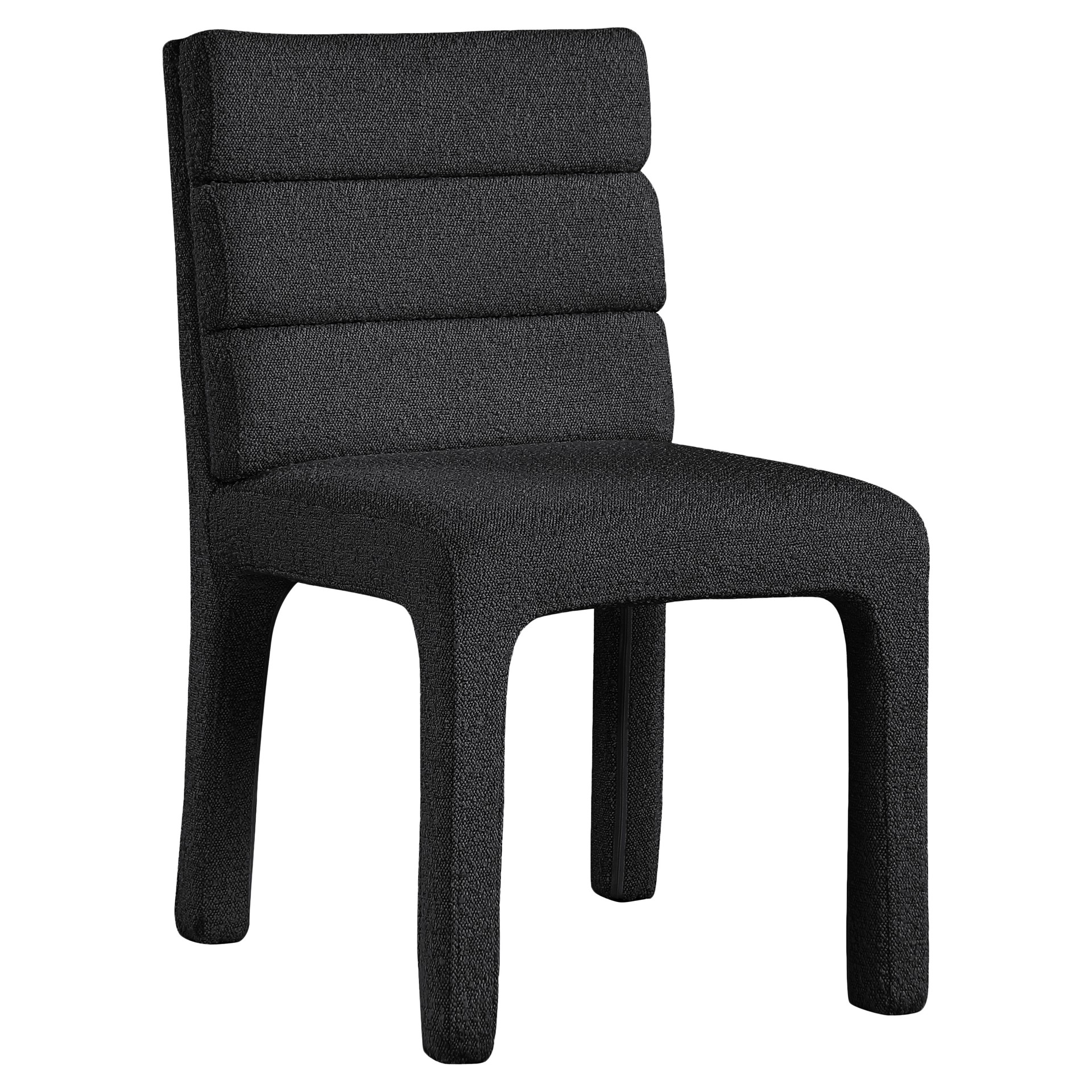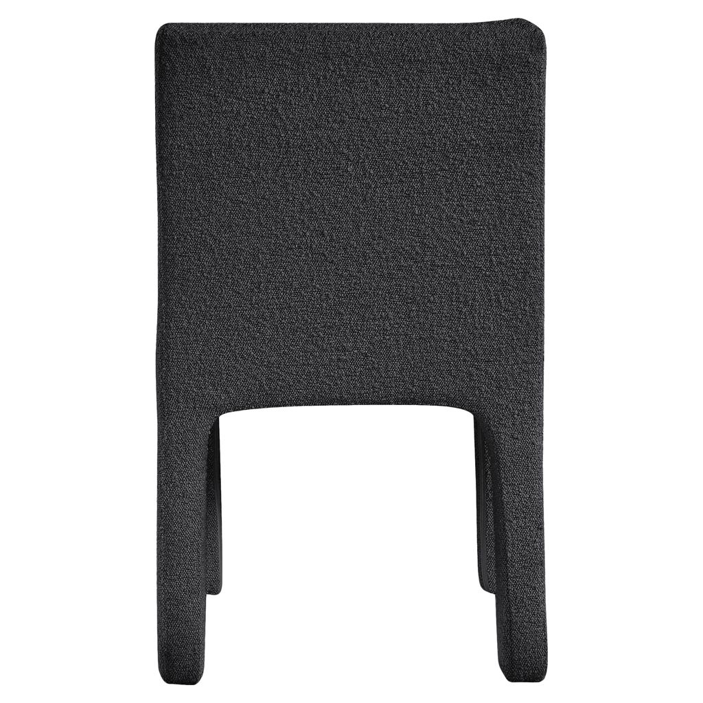 La structure en métal assure une durabilité durable tandis que le revêtement en tissu bouclé noir donne à la chaise un look élégant et moderne.