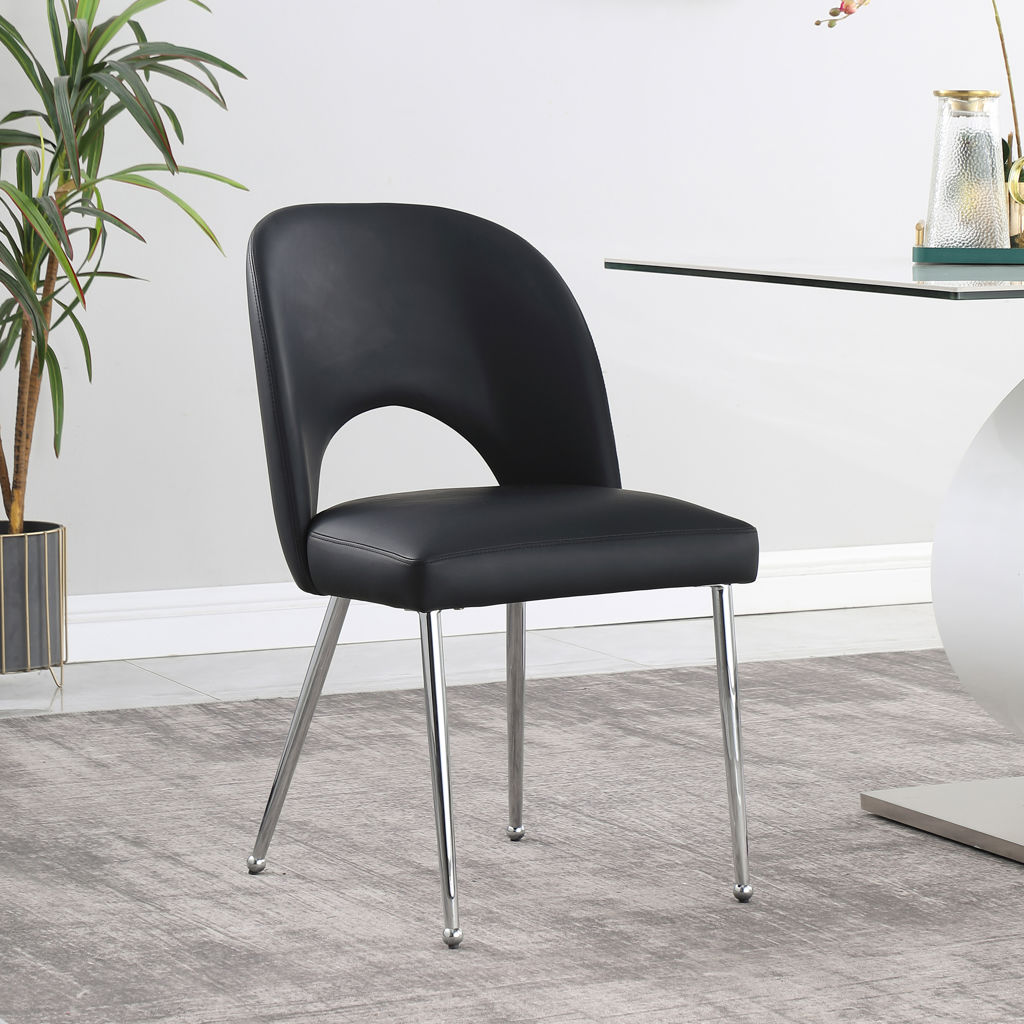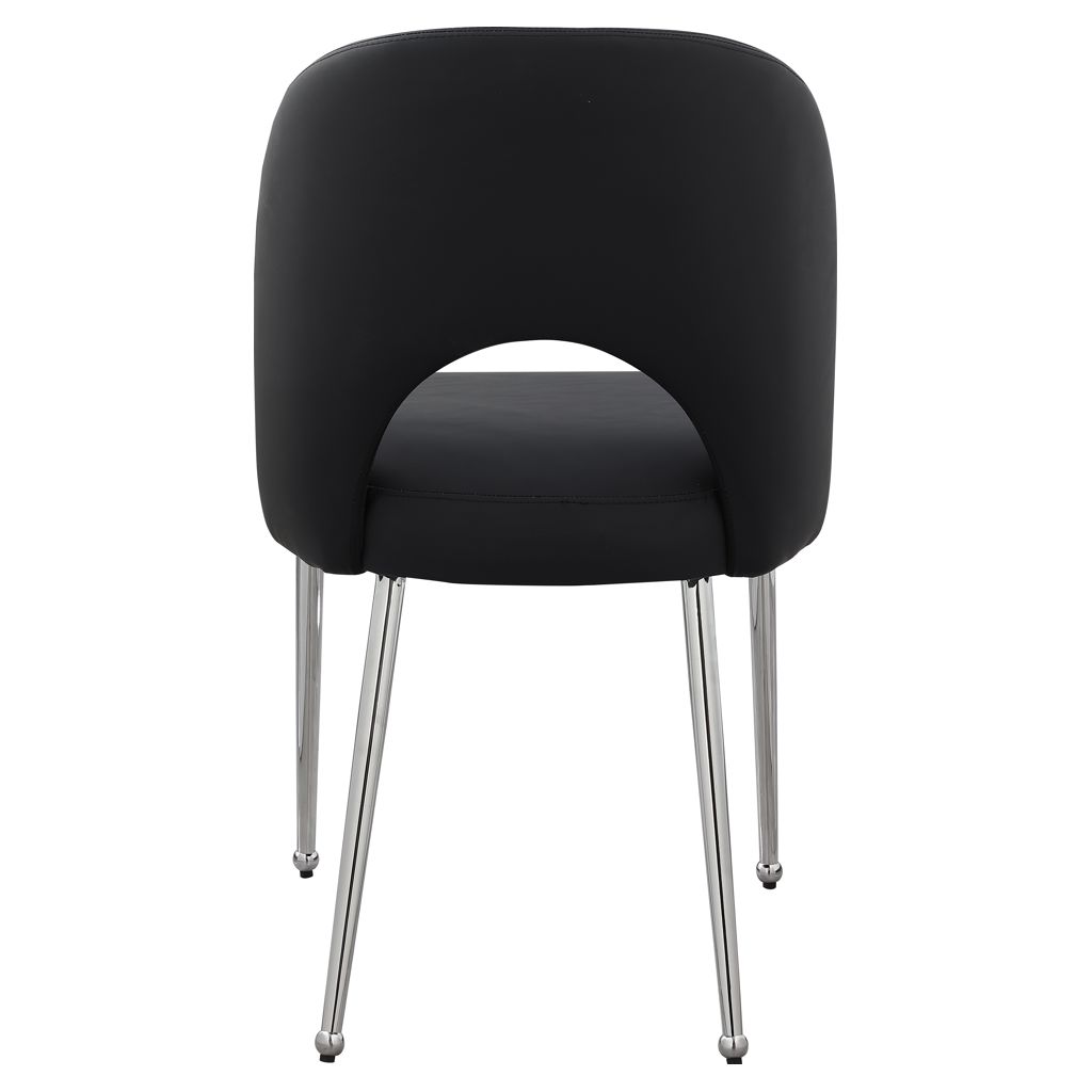 Sa riche finition chromée complète son assise et son dossier noirs, ce qui en fait l’ajout parfait pour toute maison contemporaine.