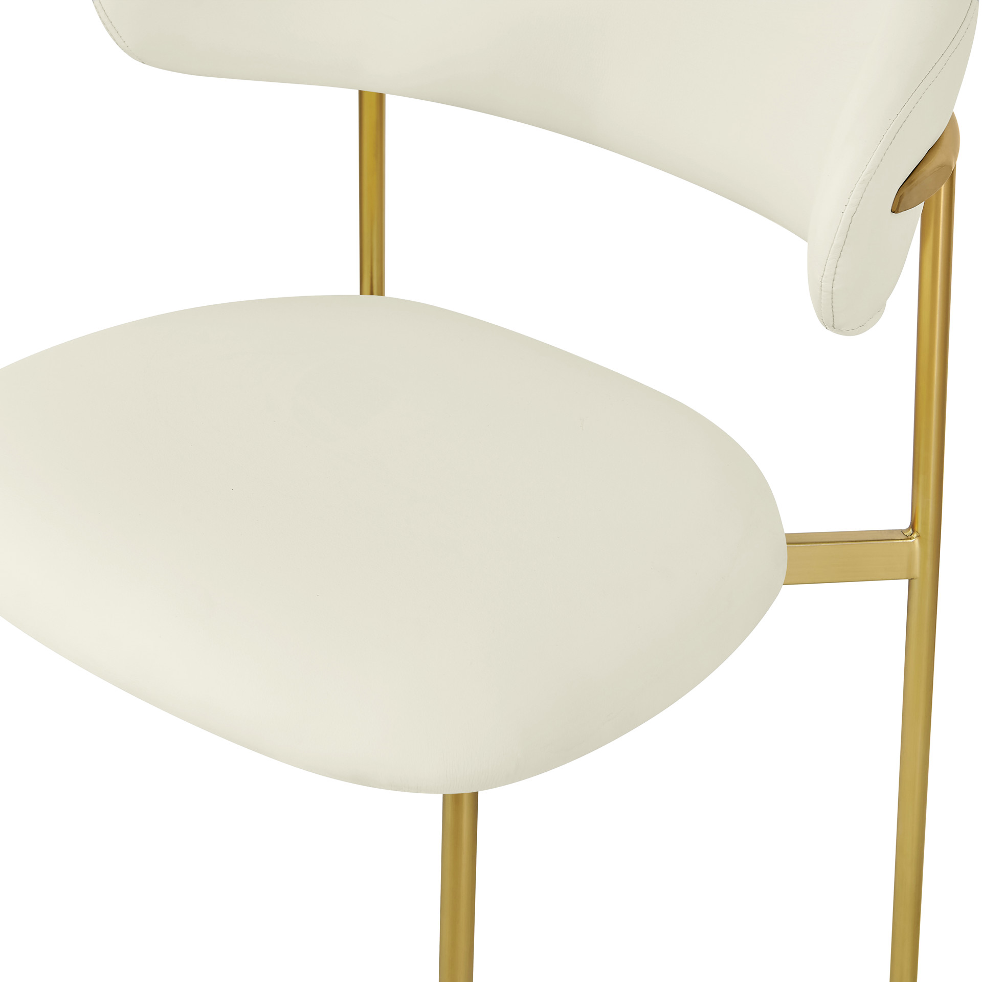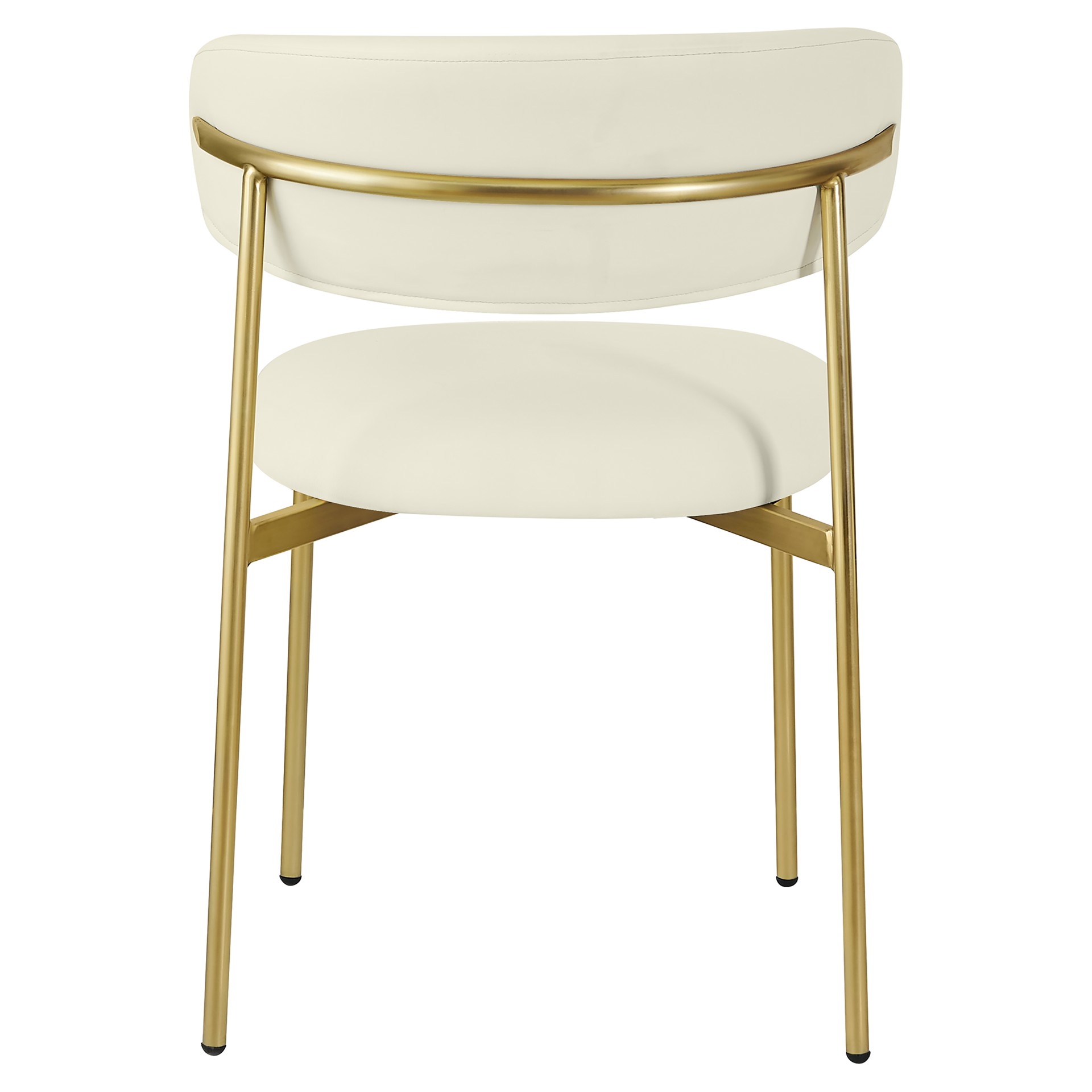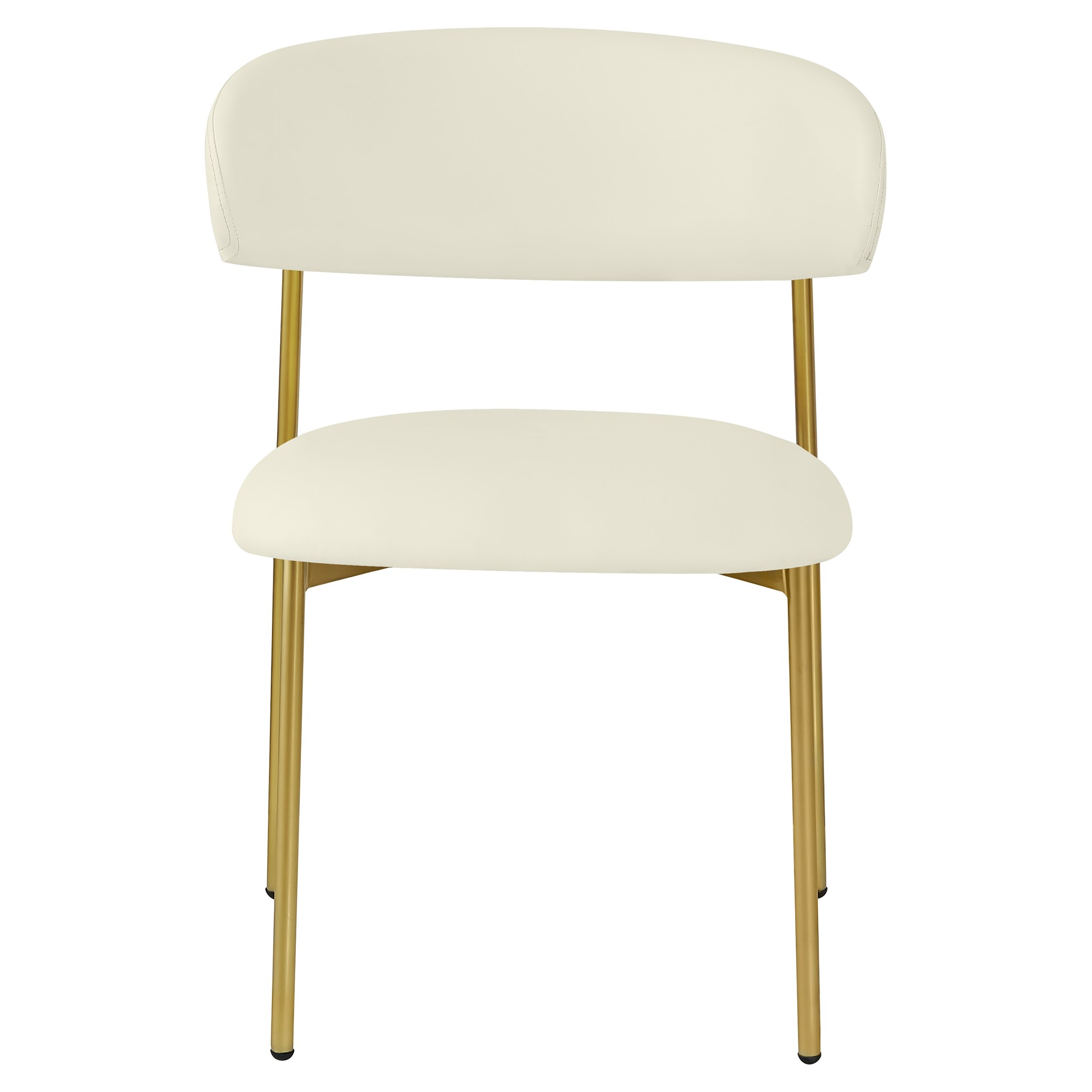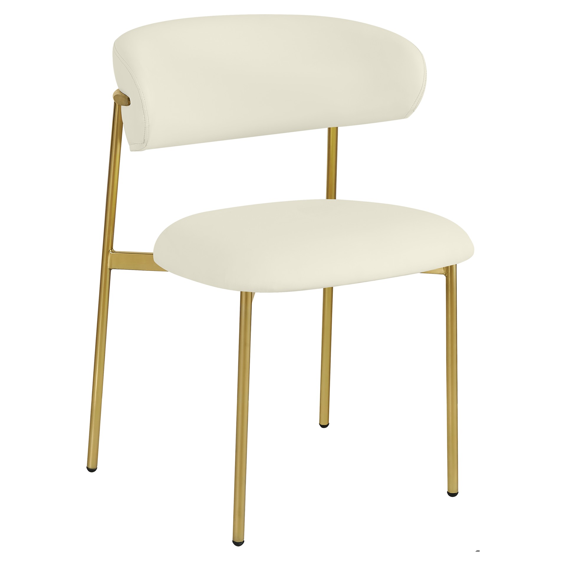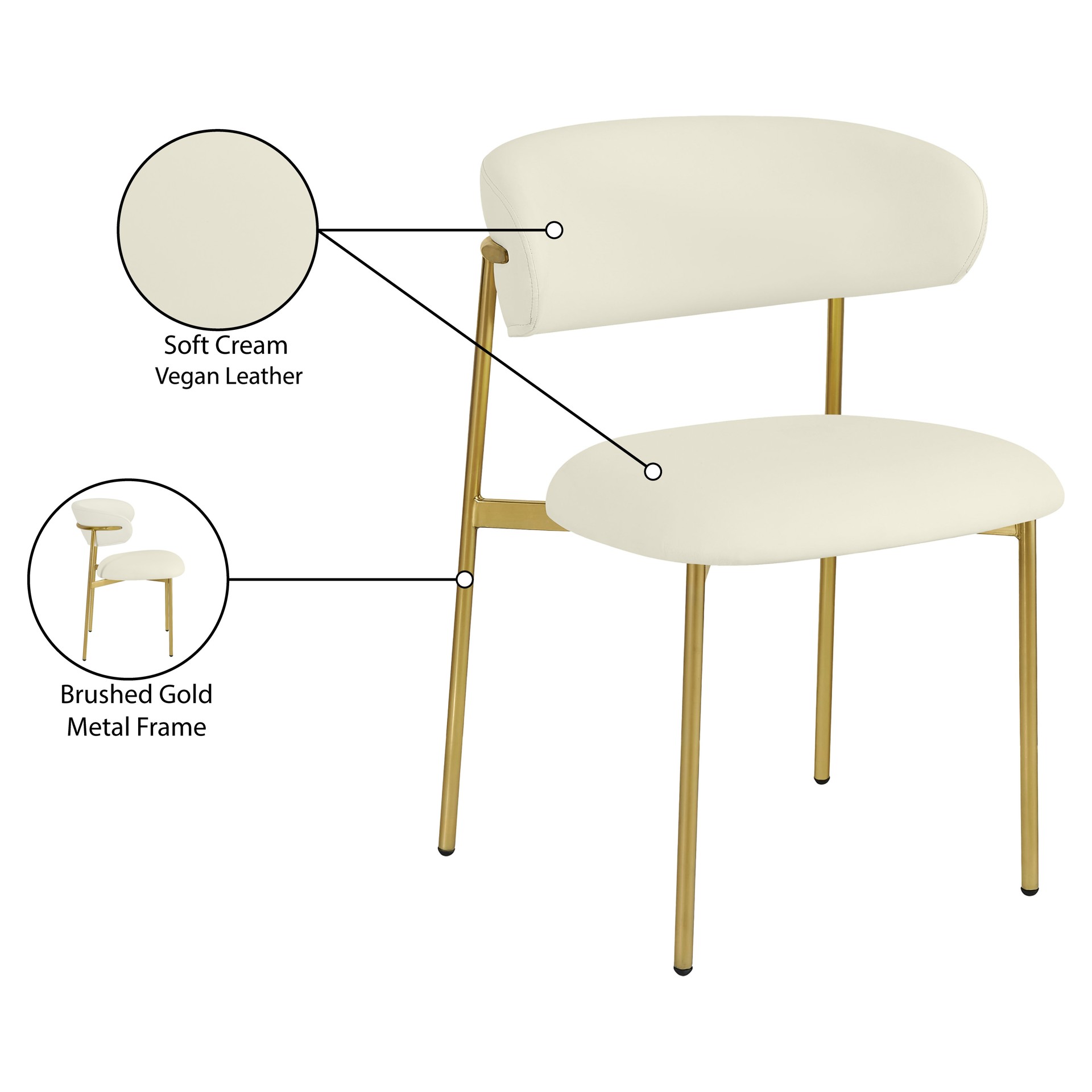 Bénéficiant d'une finition dorée brossée sur le cadre et les pieds pour une sensation élégante et raffinée, cette chaise de salle à manger en simili cuir présente un dossier incurvé pour un confort total tout au long du désert.