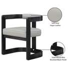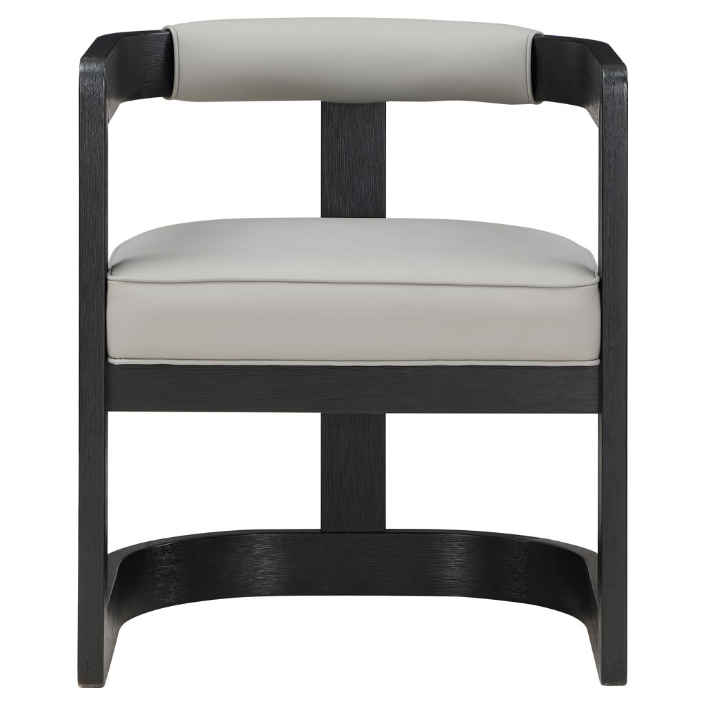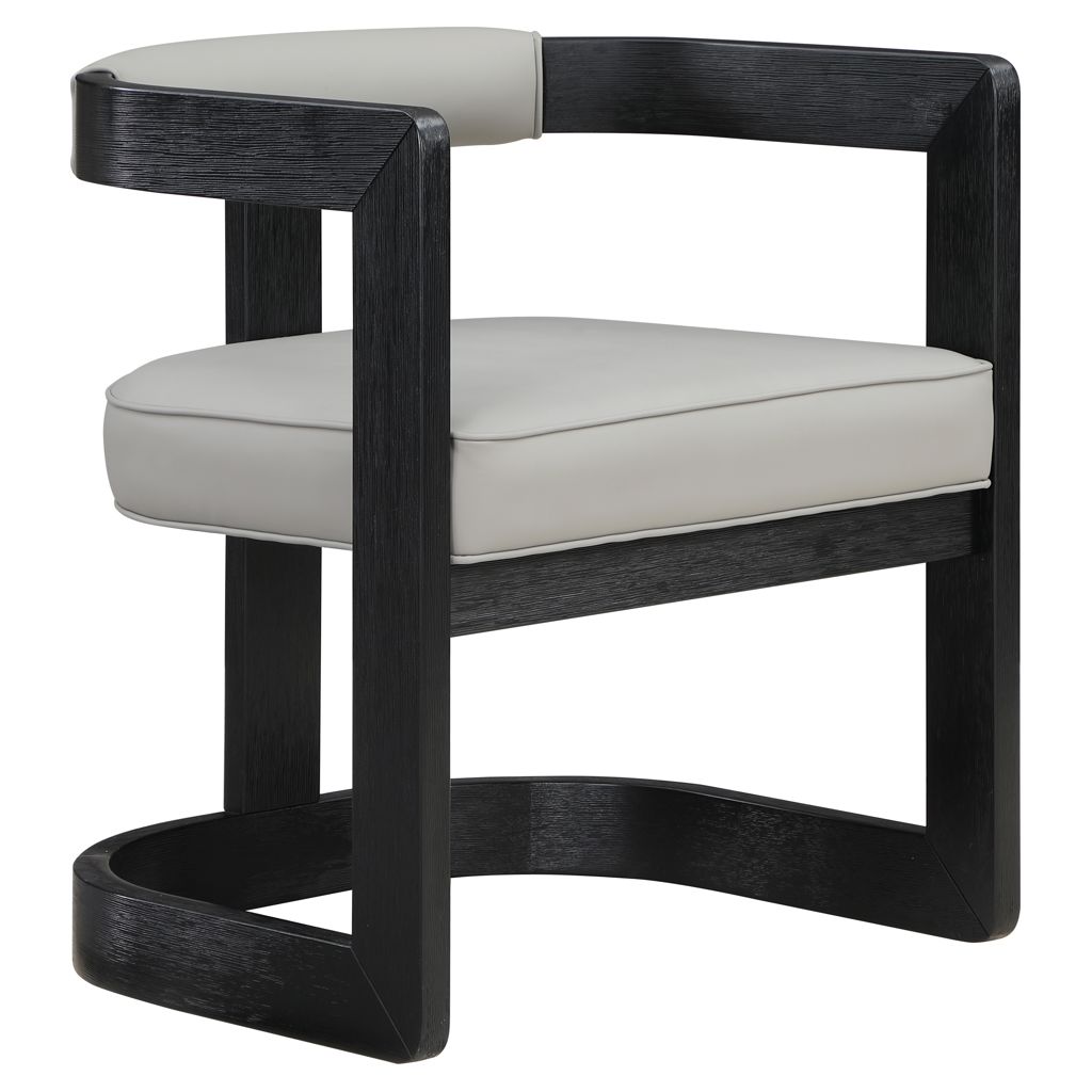 Dotée d'une structure fabriquée en bois d'hévéa massif avec une finition noire brossée, cette chaise fait une déclaration audacieuse dans n'importe quelle salle à manger.