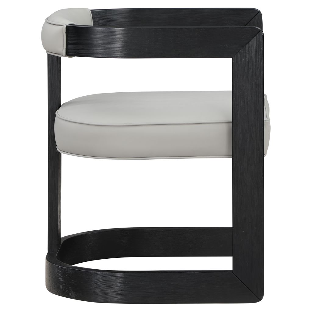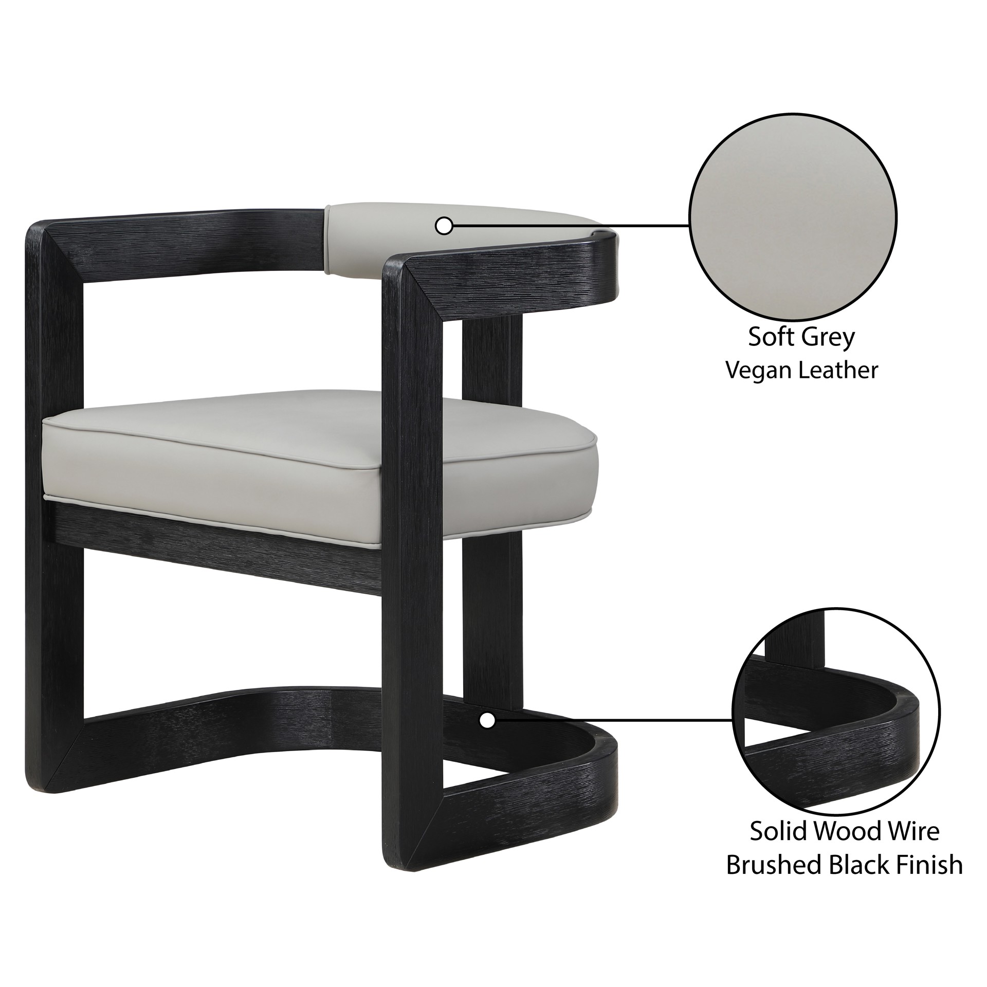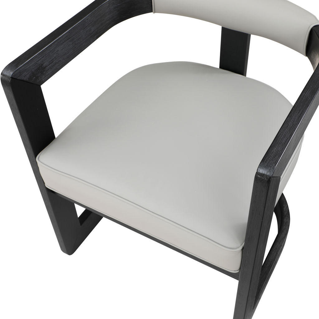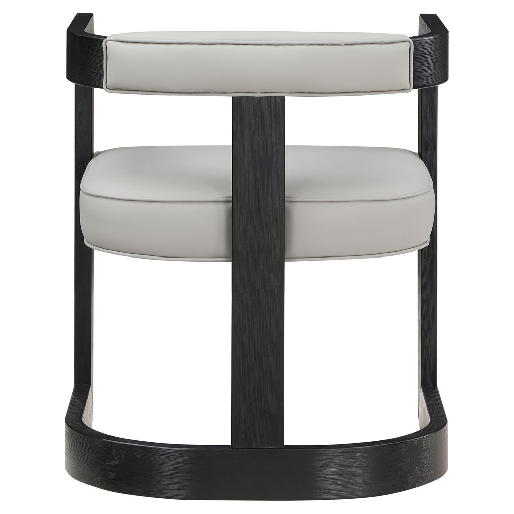 Un coussin et un dossier en similicuir gris doux ajoutent du confort pendant que vous vous asseyez et dînez, tout en donnant à la chaise une saveur de « côté sauvage ».