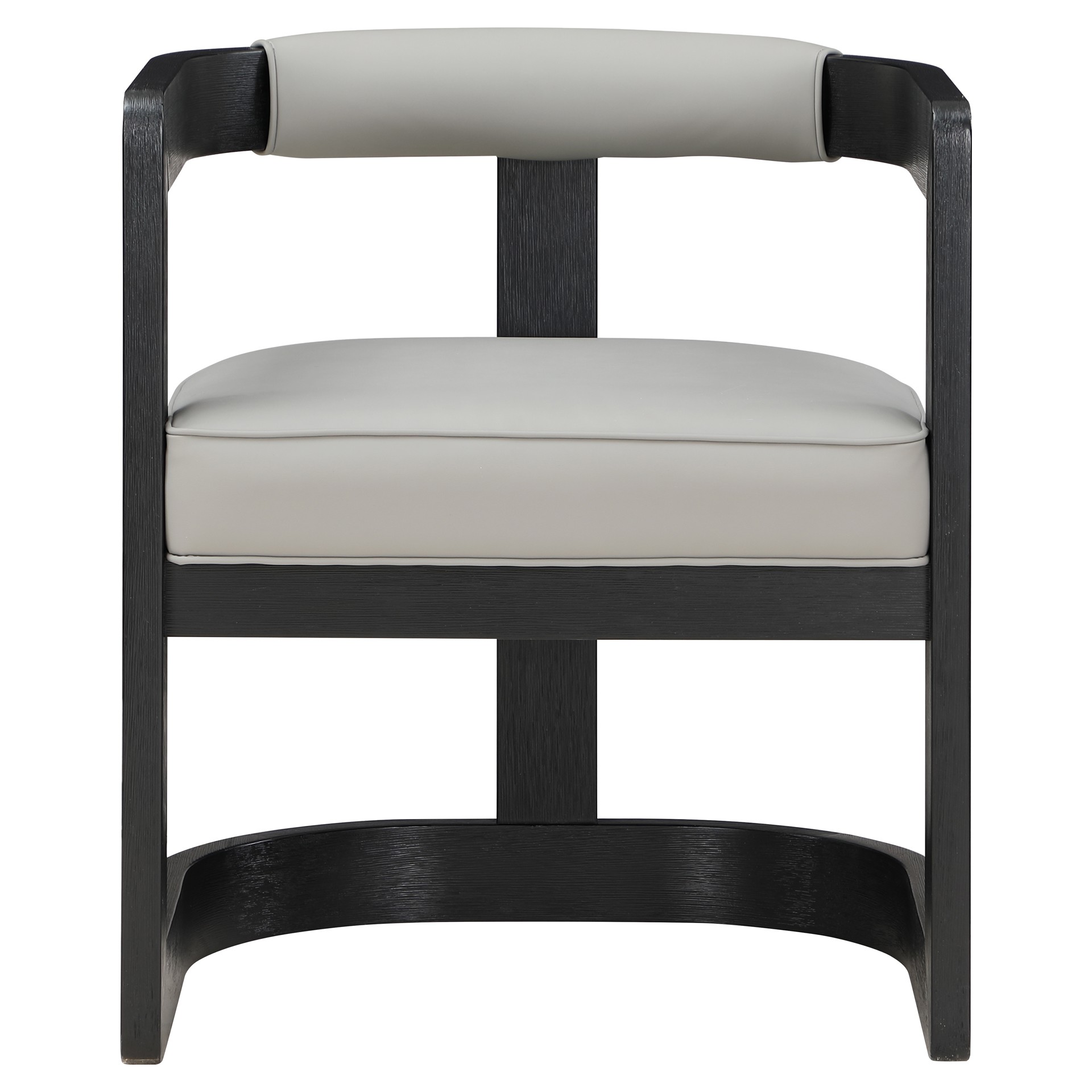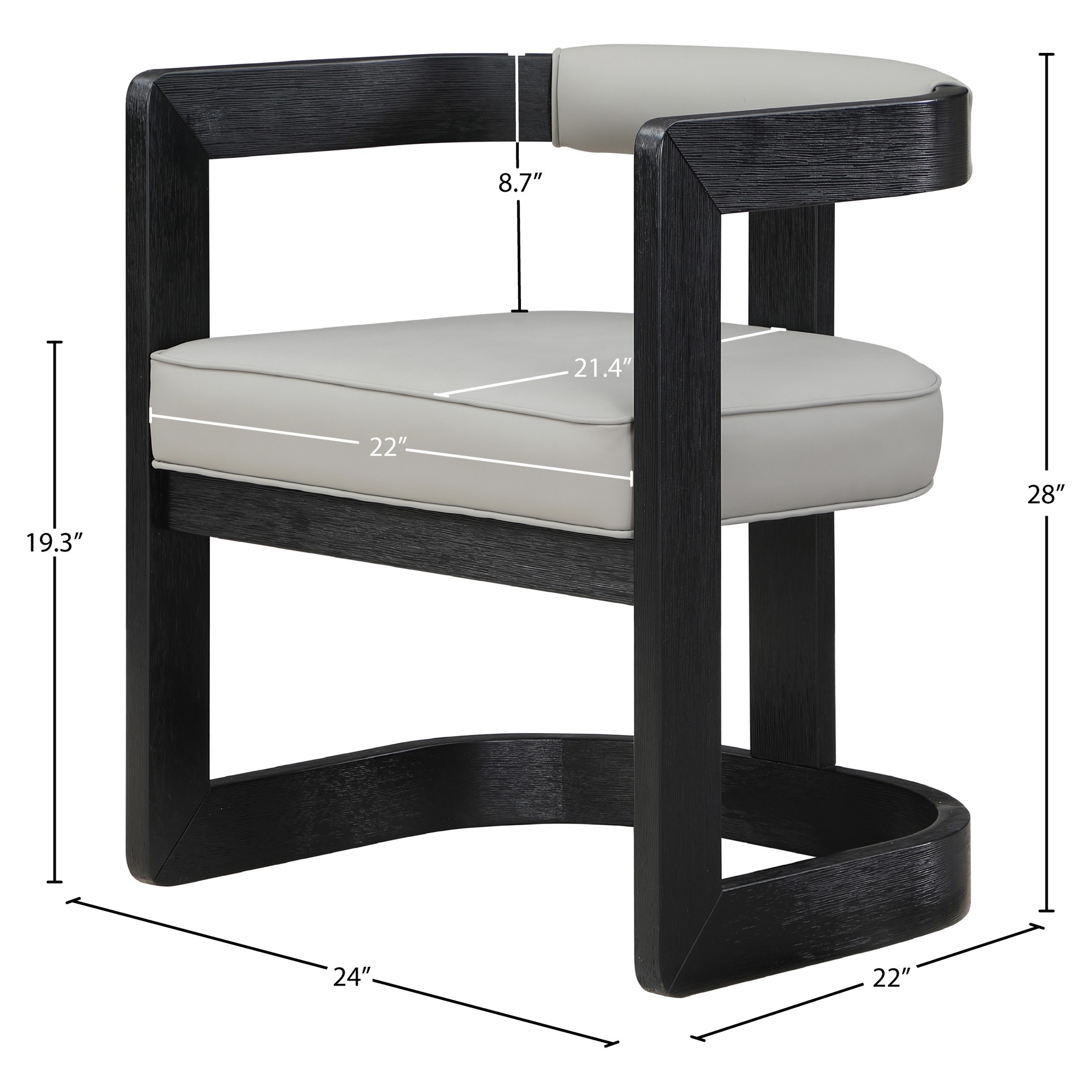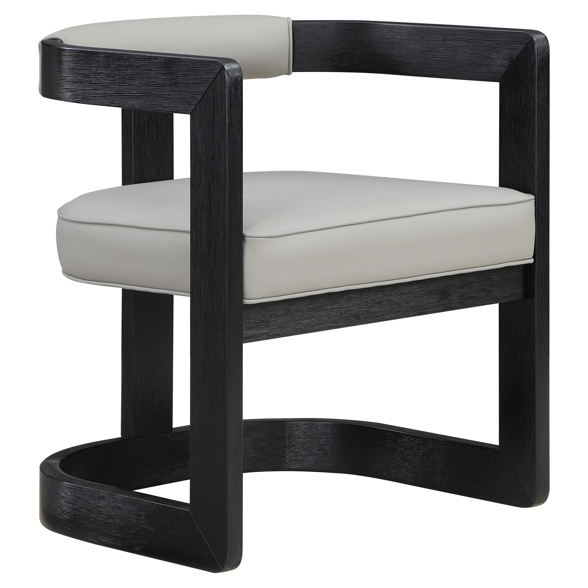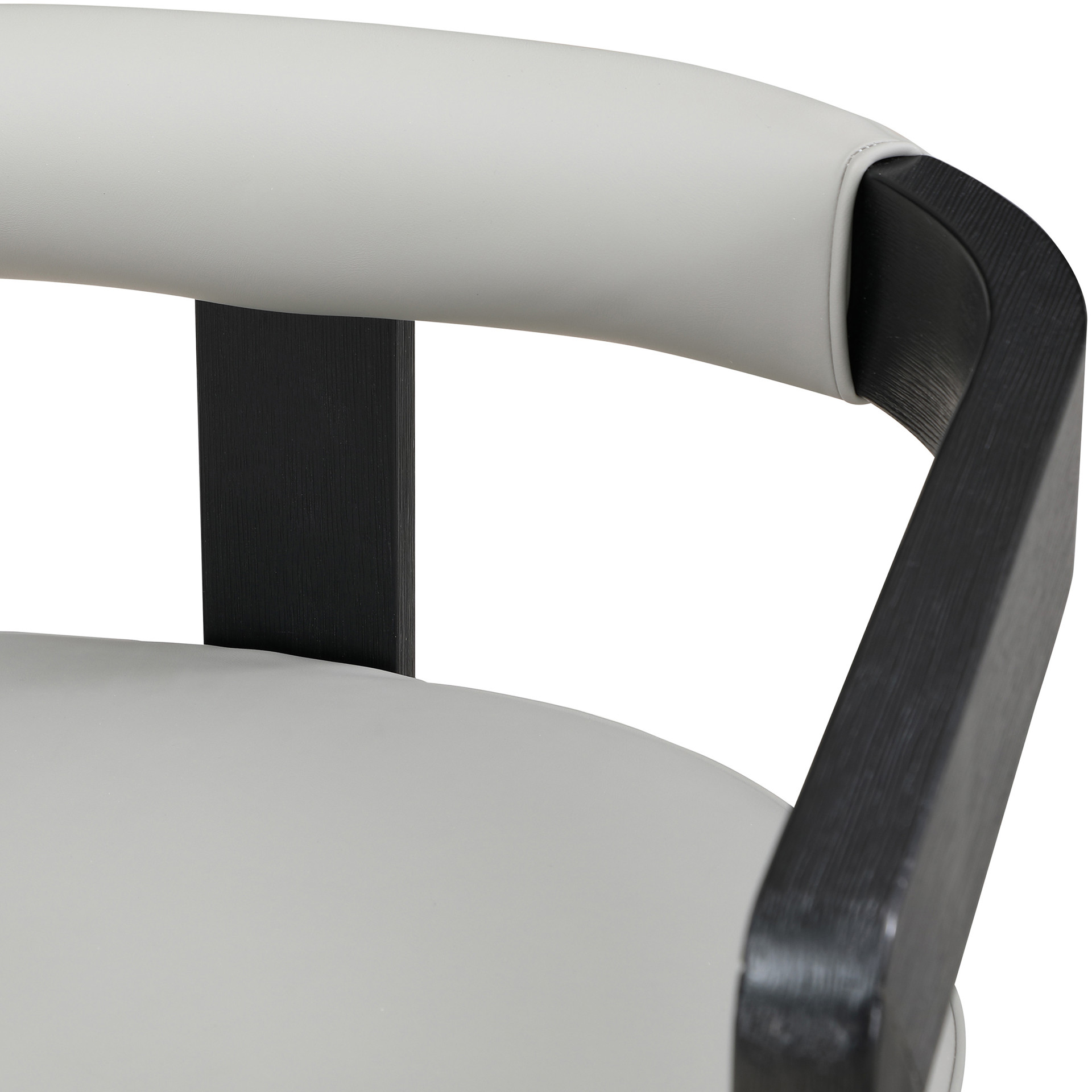 Un coussin et un dossier en similicuir gris doux ajoutent du confort pendant que vous vous asseyez et dînez, tout en donnant à la chaise une saveur de « côté sauvage ».