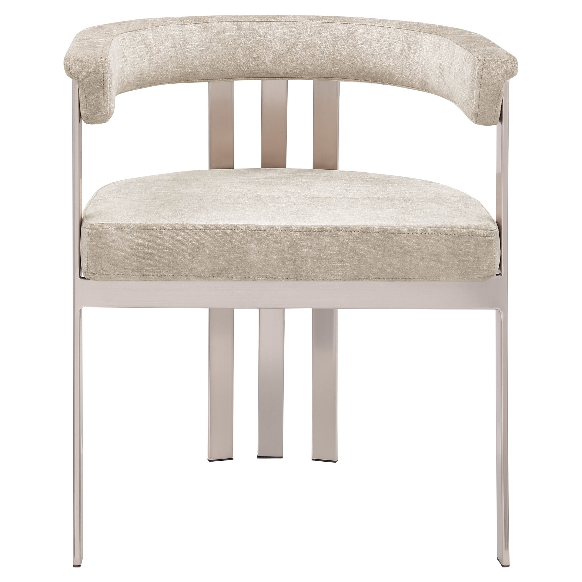Transformez votre espace salle à manger en un havre contemporain avec cette chaise de salle à manger en velours beige Marcello.
