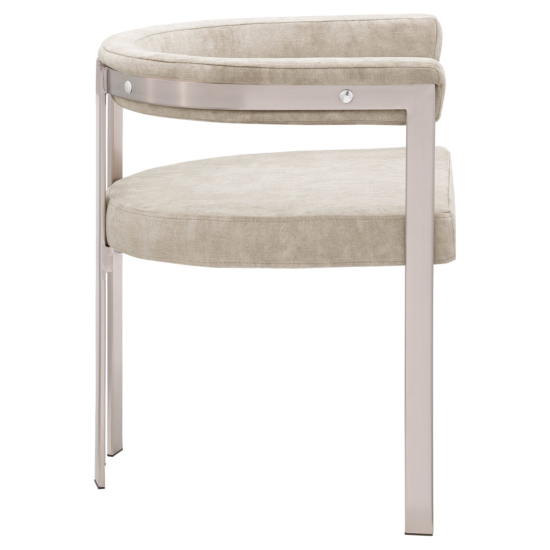 Son velours beige doux et haut de gamme est doux sur lequel vous pouvez vous asseoir, tandis que sa structure en fer chromé brossé assure une durabilité pour les années à venir.