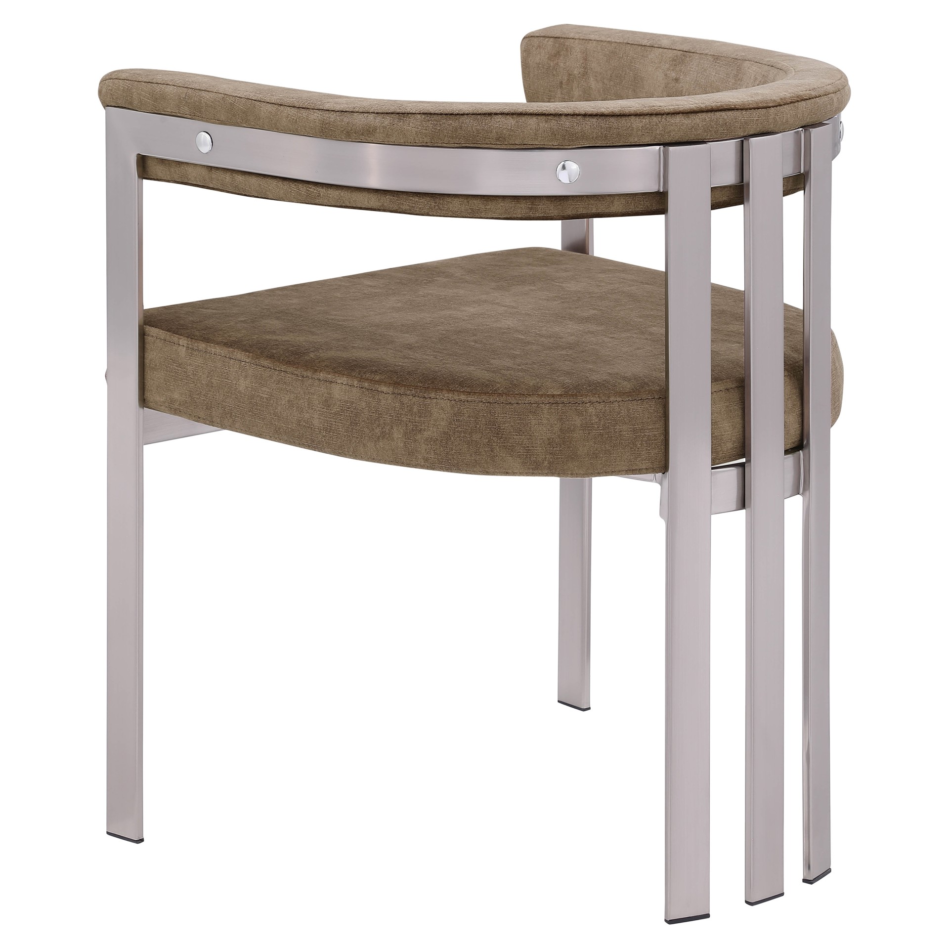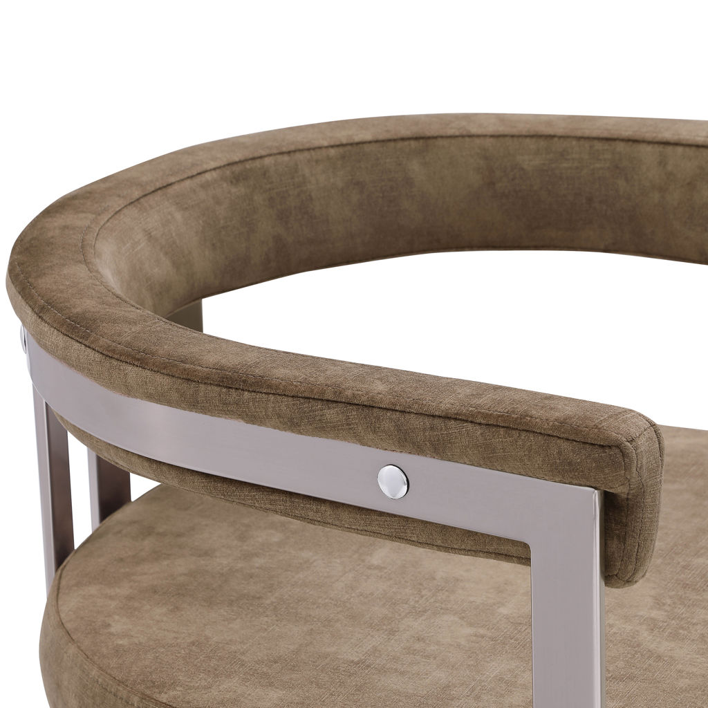Son velours marron doux et haut de gamme est doux sur lequel vous pouvez vous asseoir, tandis que son cadre en fer chromé brossé assure une durabilité pour les années à venir.
