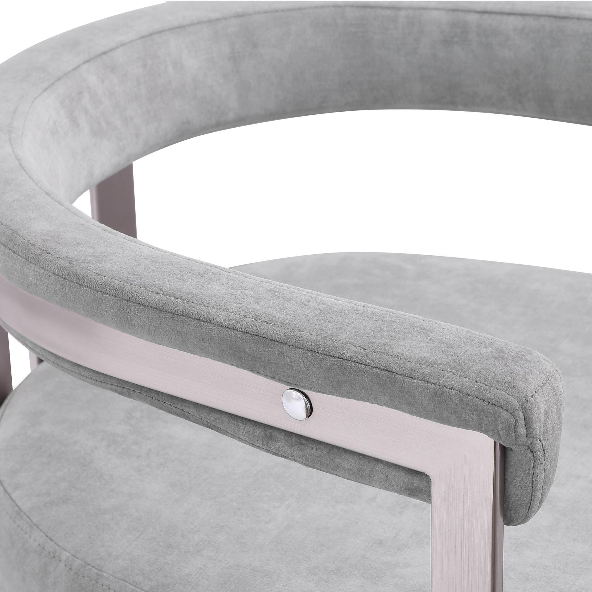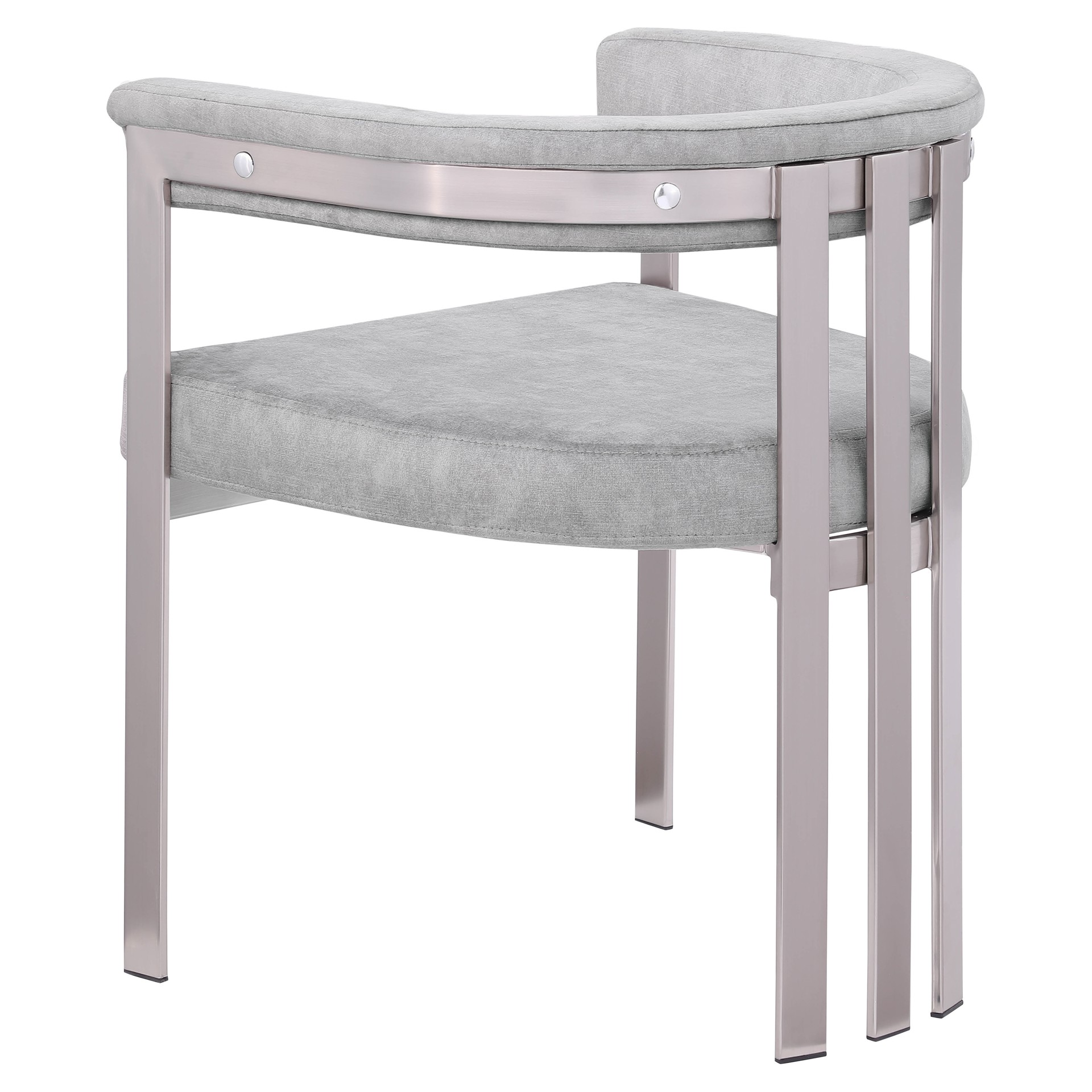 Son velours gris doux et haut de gamme est doux sur lequel vous pouvez vous asseoir, tandis que son cadre en fer chromé brossé assure une durabilité pour les années à venir.