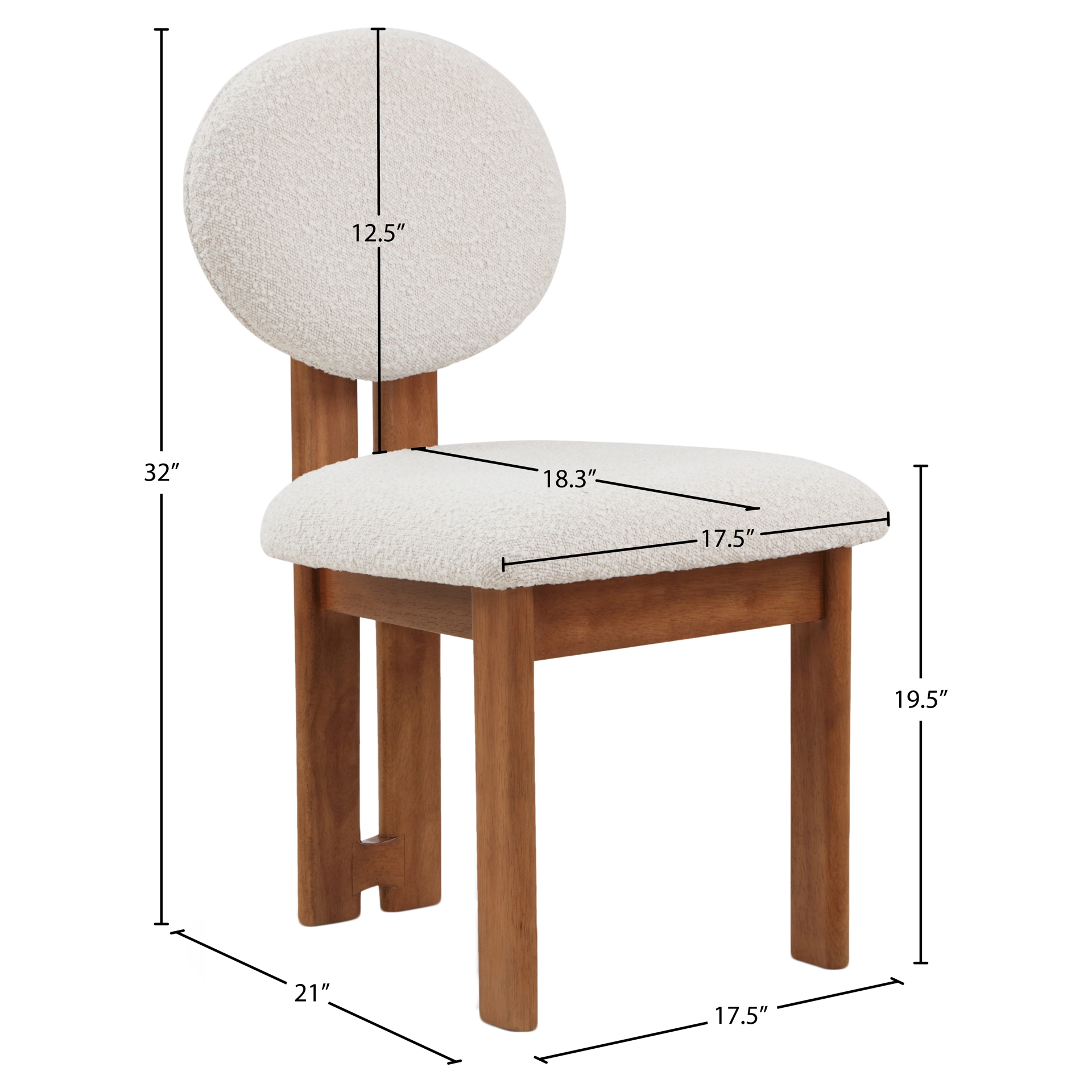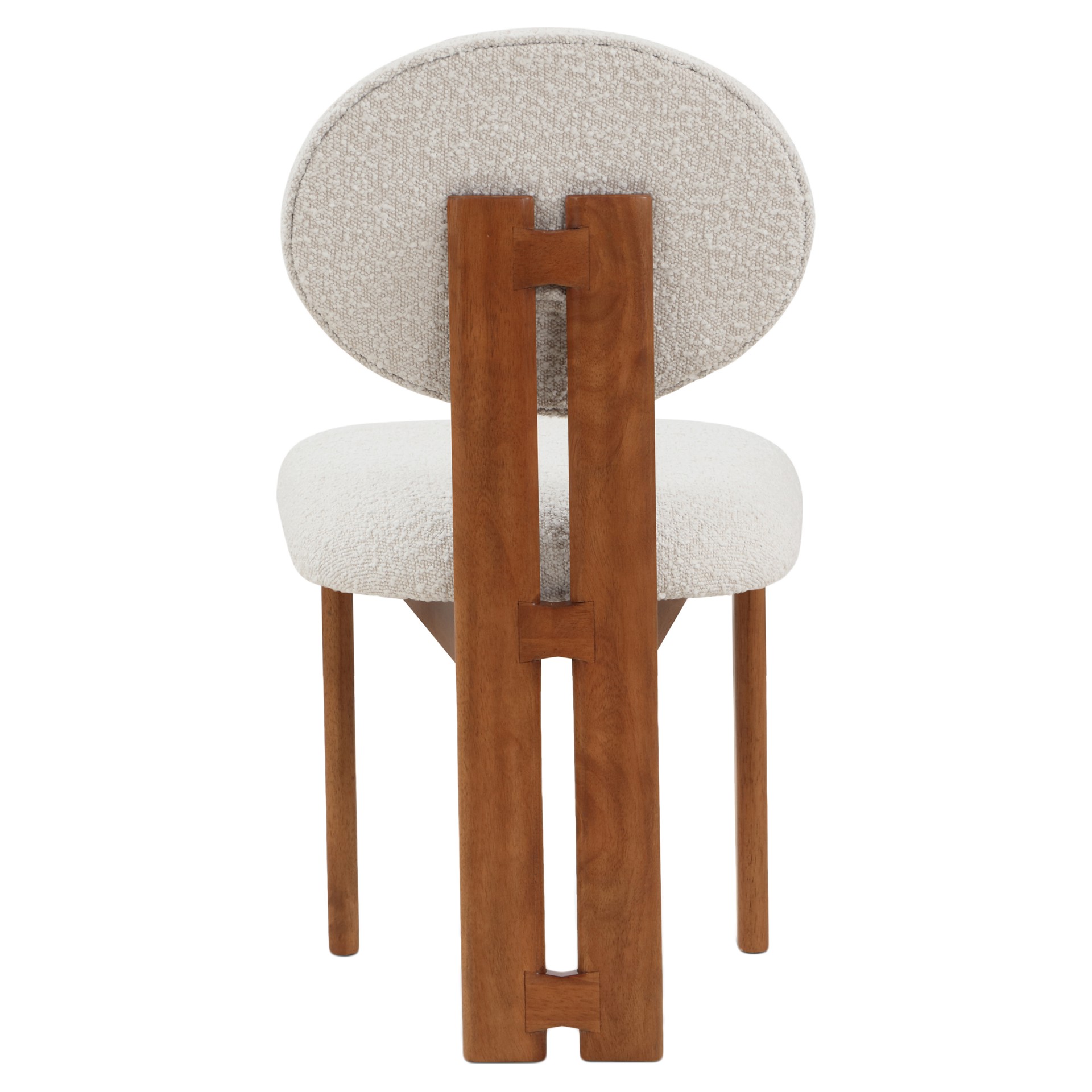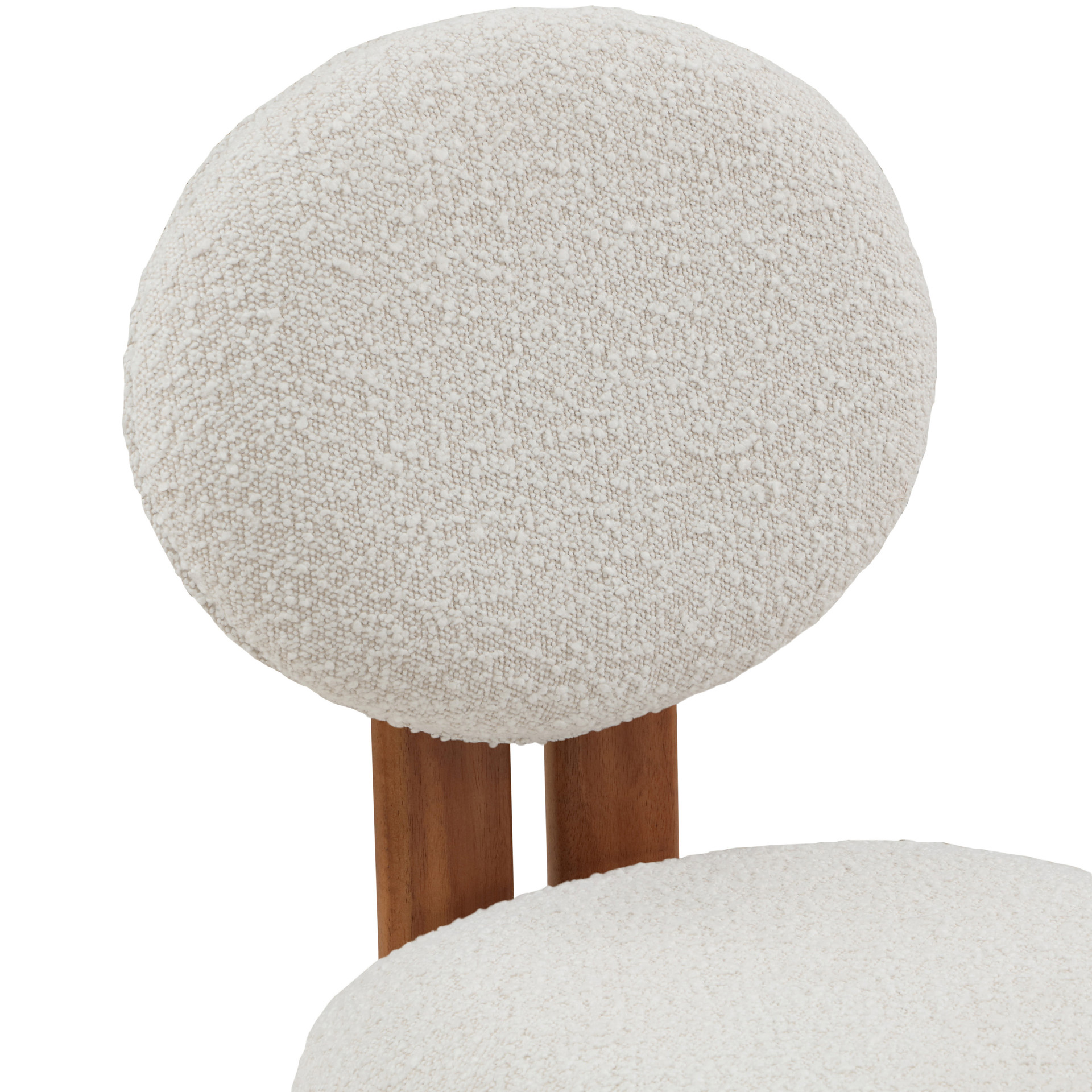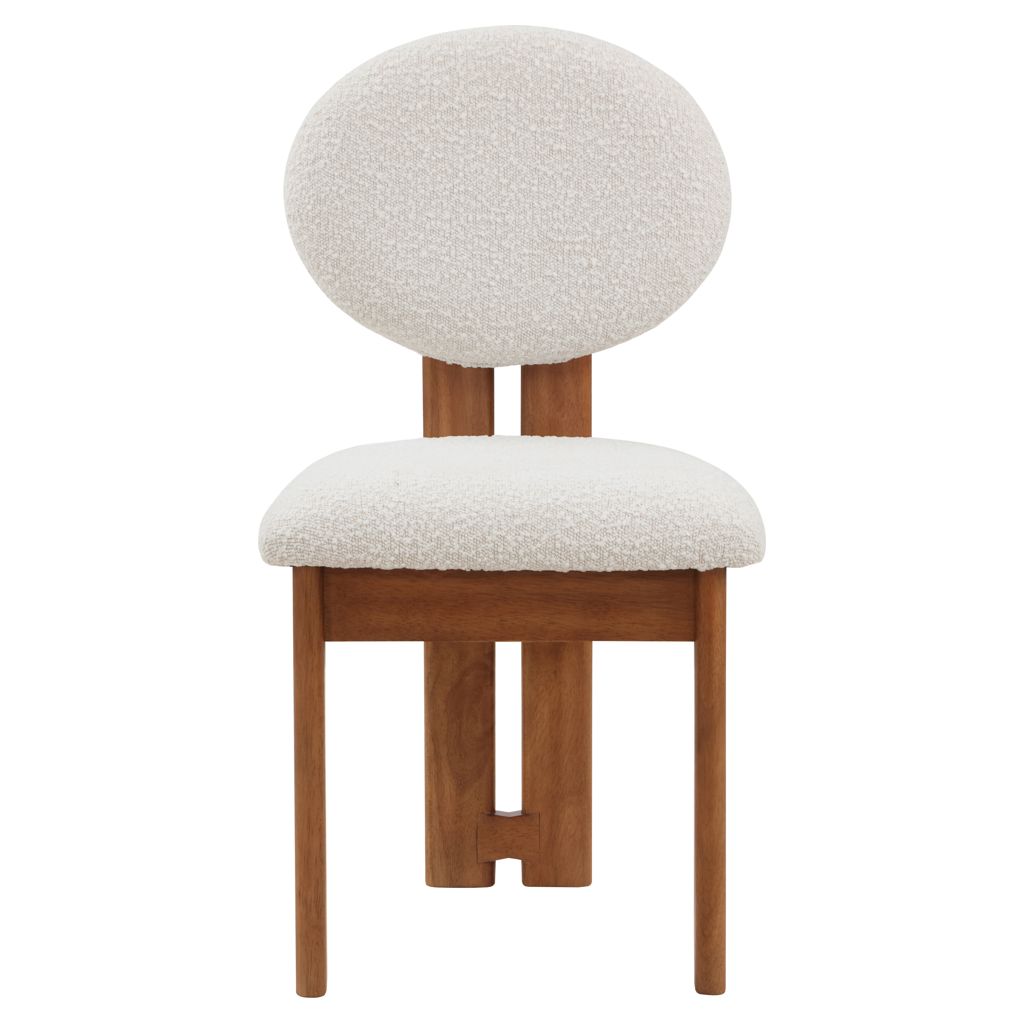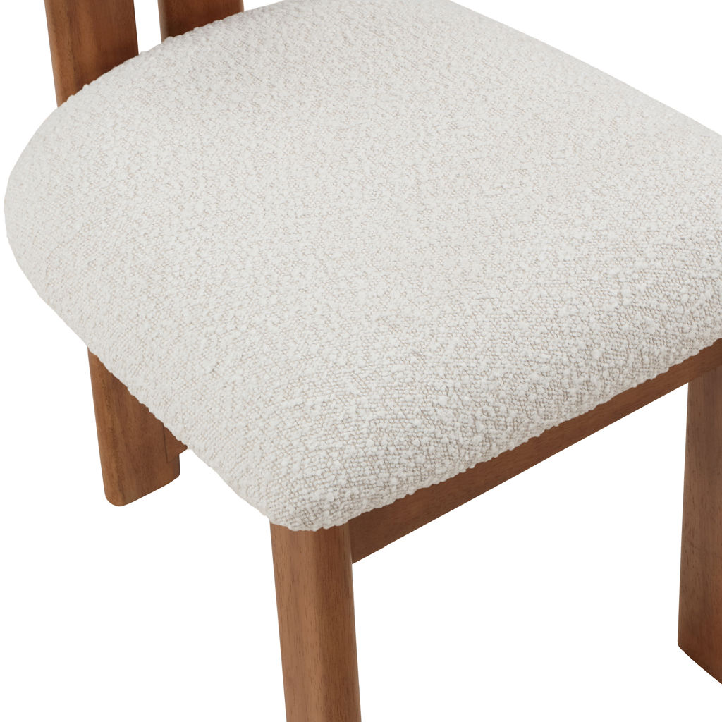 Cette jolie chaise est dotée d'un riche revêtement en tissu bouclé crème sur le siège et le dossier, afin que les invités se sentent très à l'aise dès la minute où ils s'assoient et tout au long du repas.