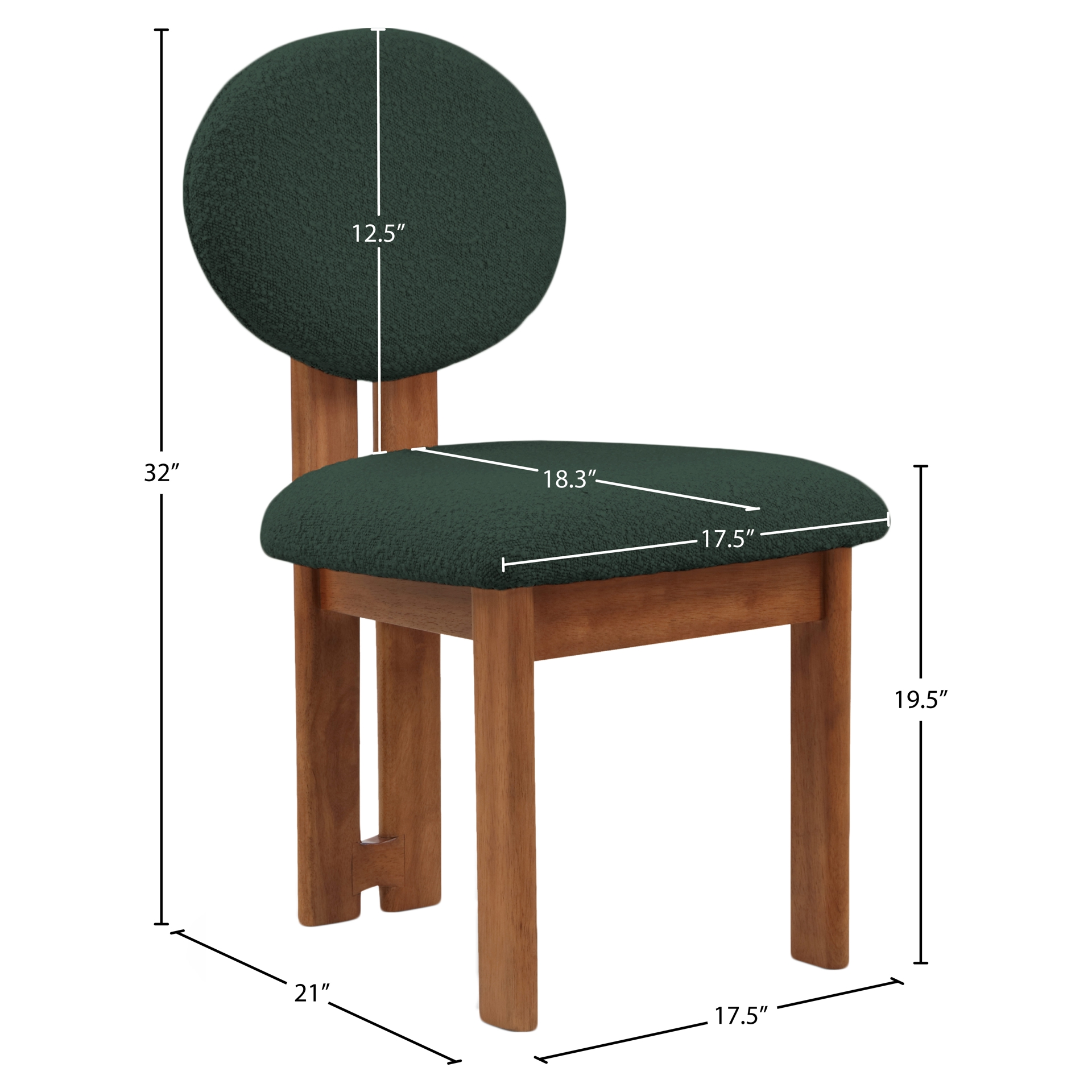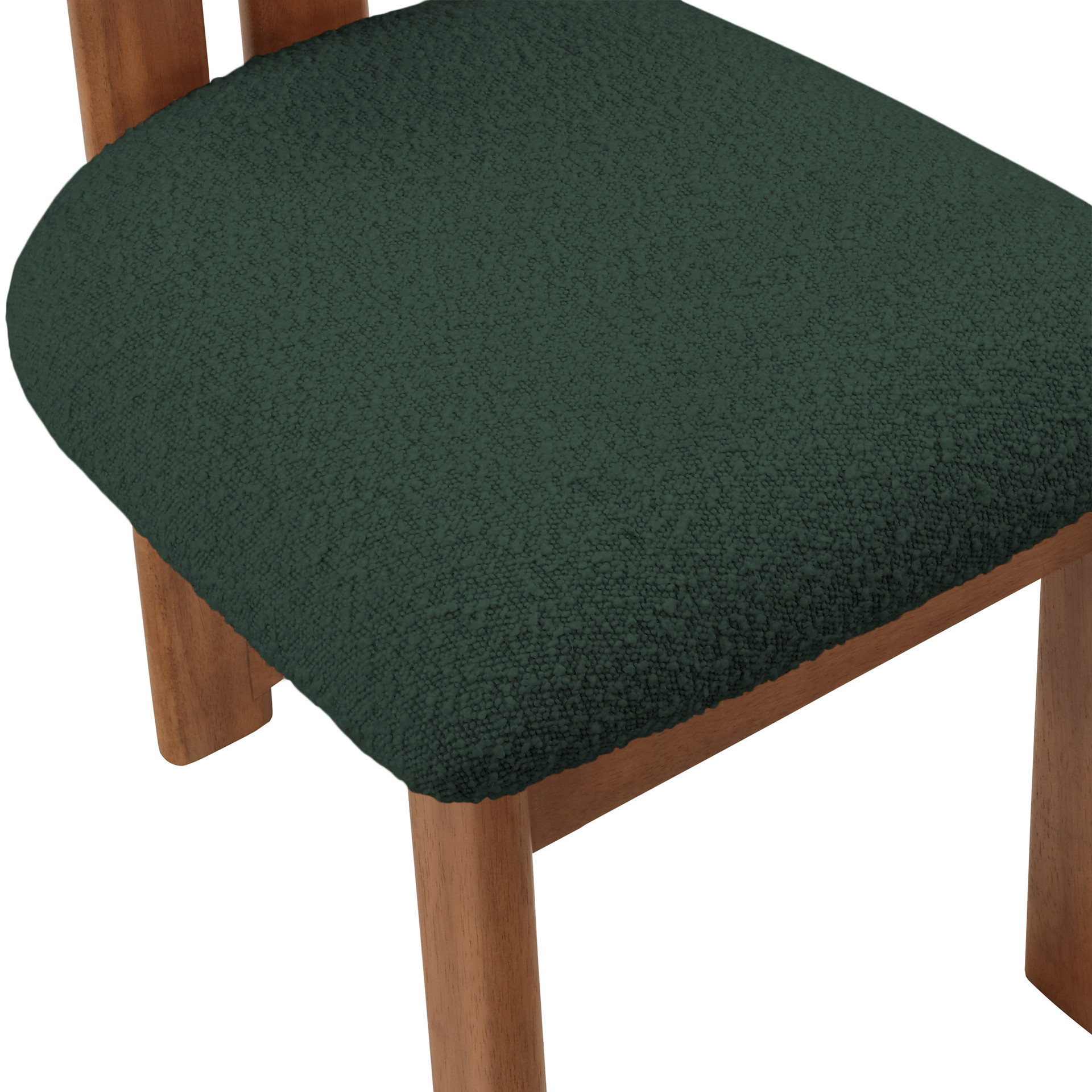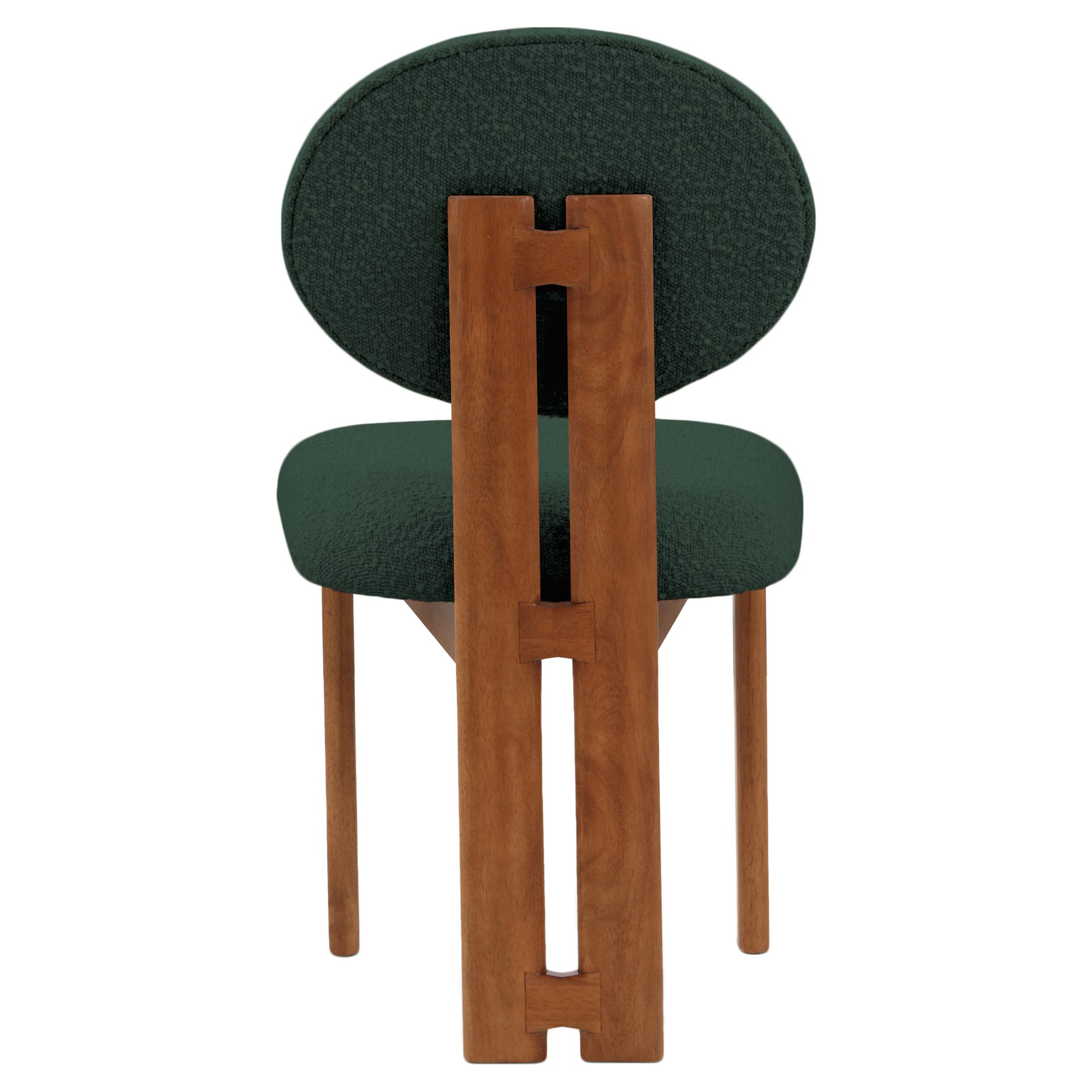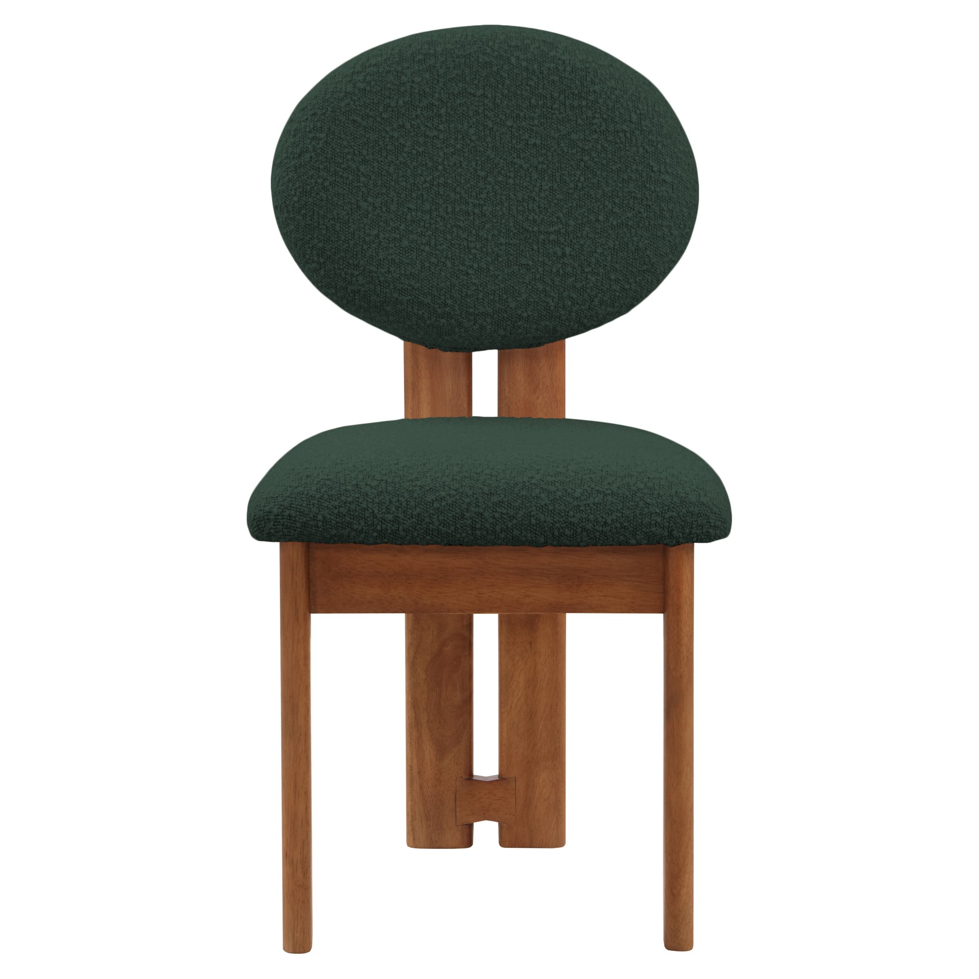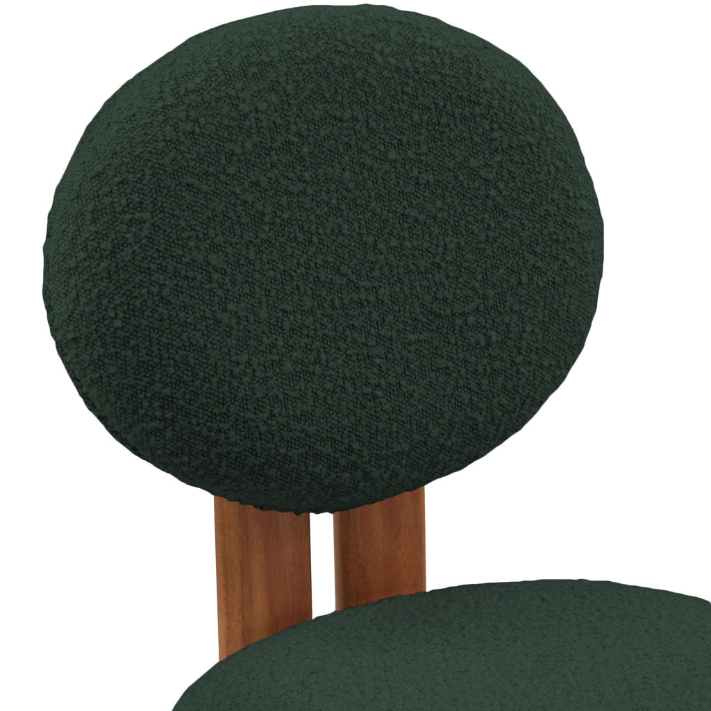 Cette jolie chaise est dotée d'un riche revêtement en tissu bouclé vert sur le siège et le dossier, afin que les invités se sentent très à l'aise dès la minute où ils s'assoient et tout au long du repas.