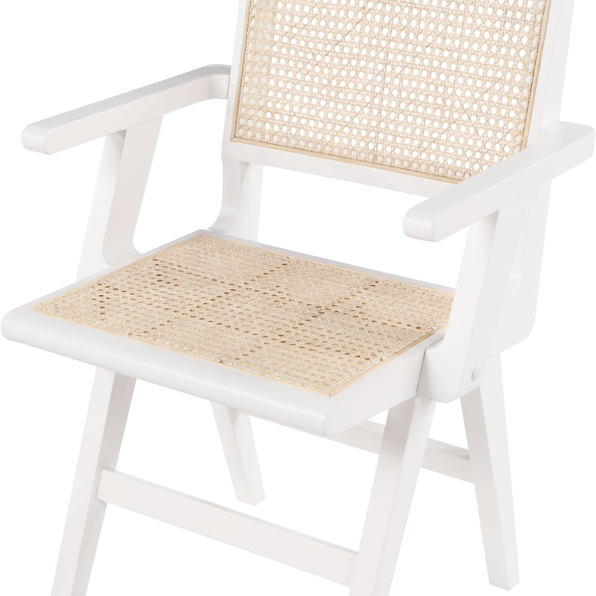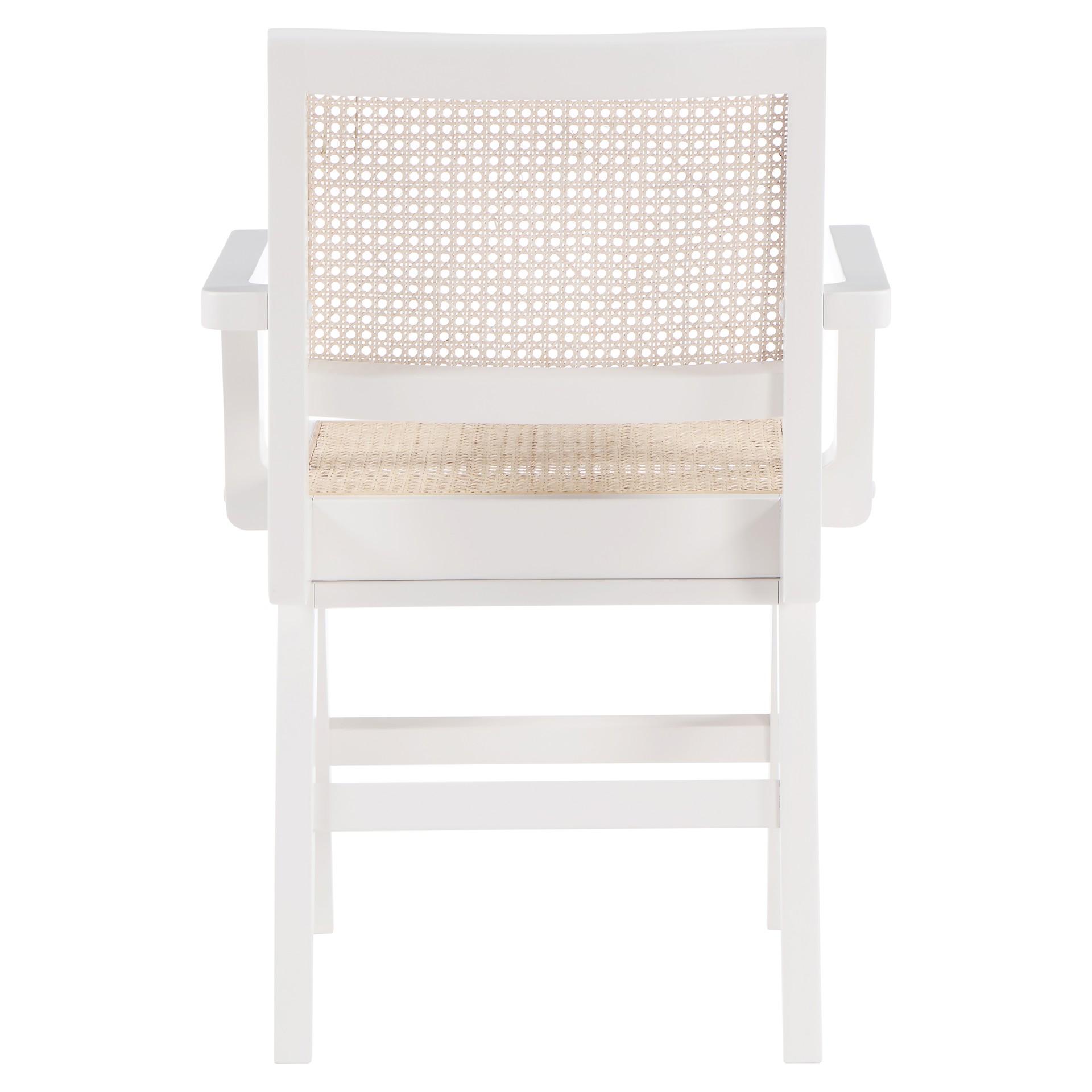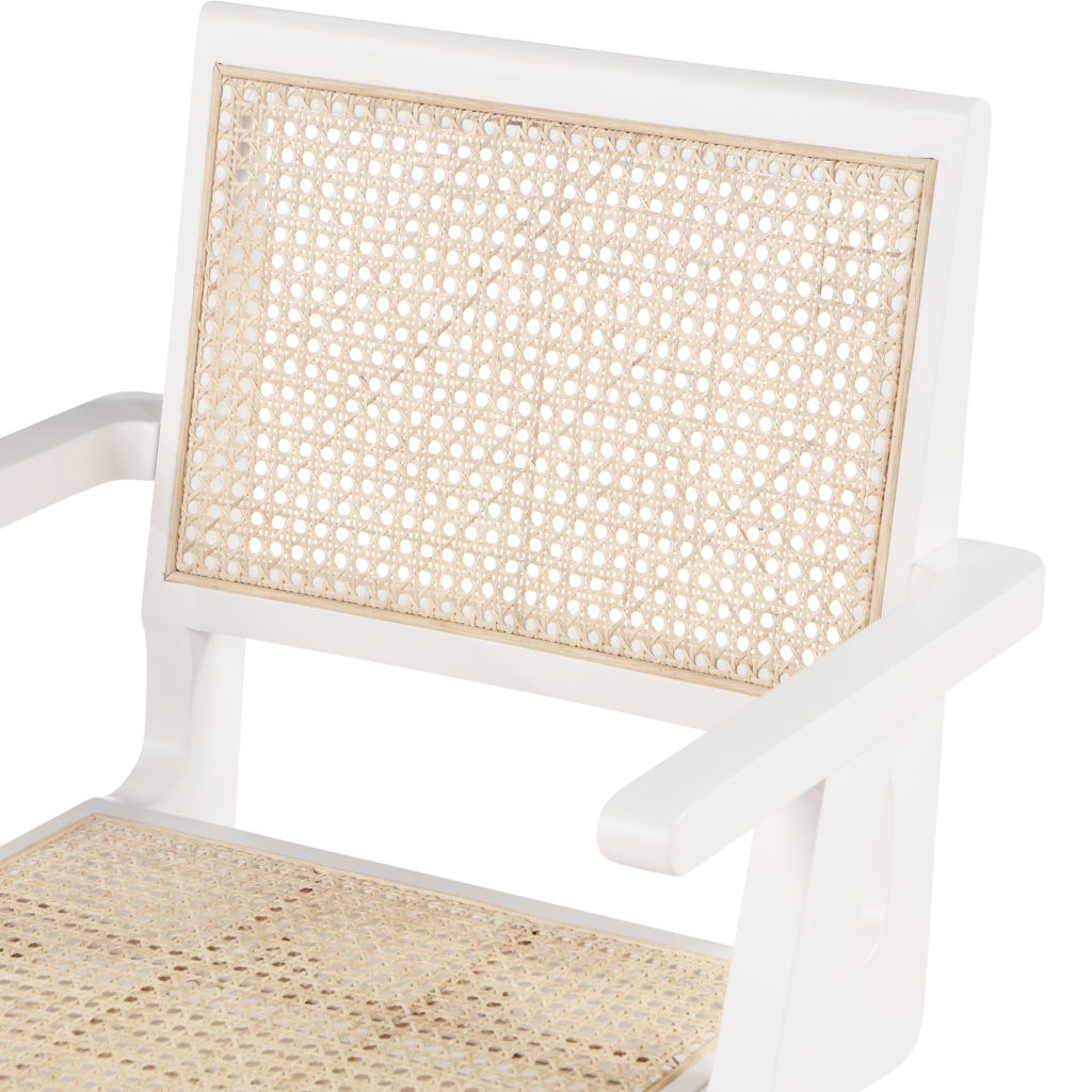 Dotée d'une structure en bois d'hévéa avec une finition blanche et d'un dossier et d'un siège en canne/rotin naturel, cette chaise est aussi élégante que confortable.