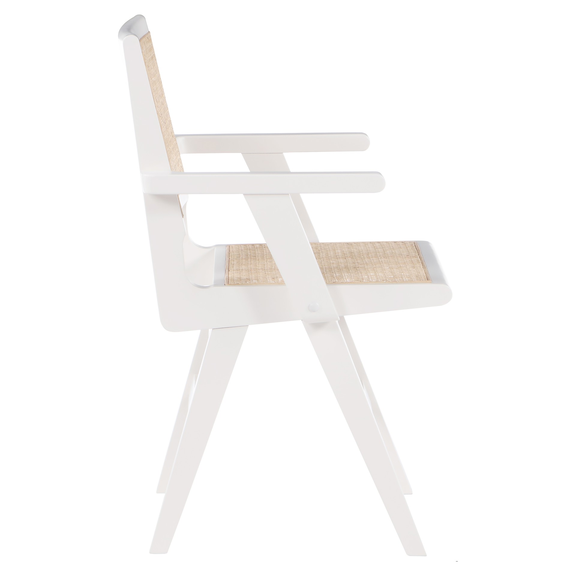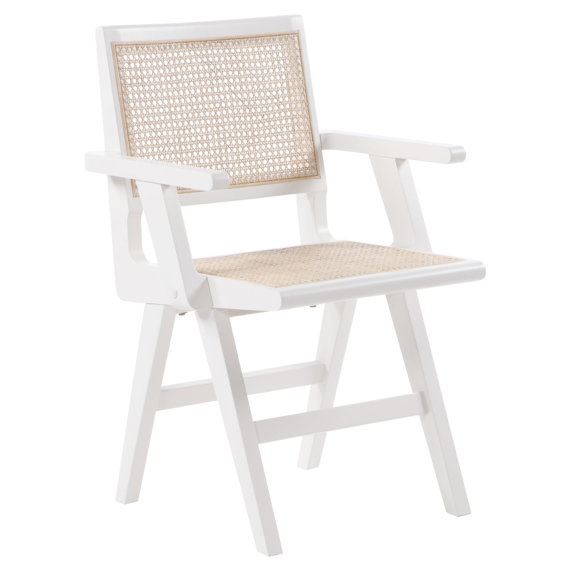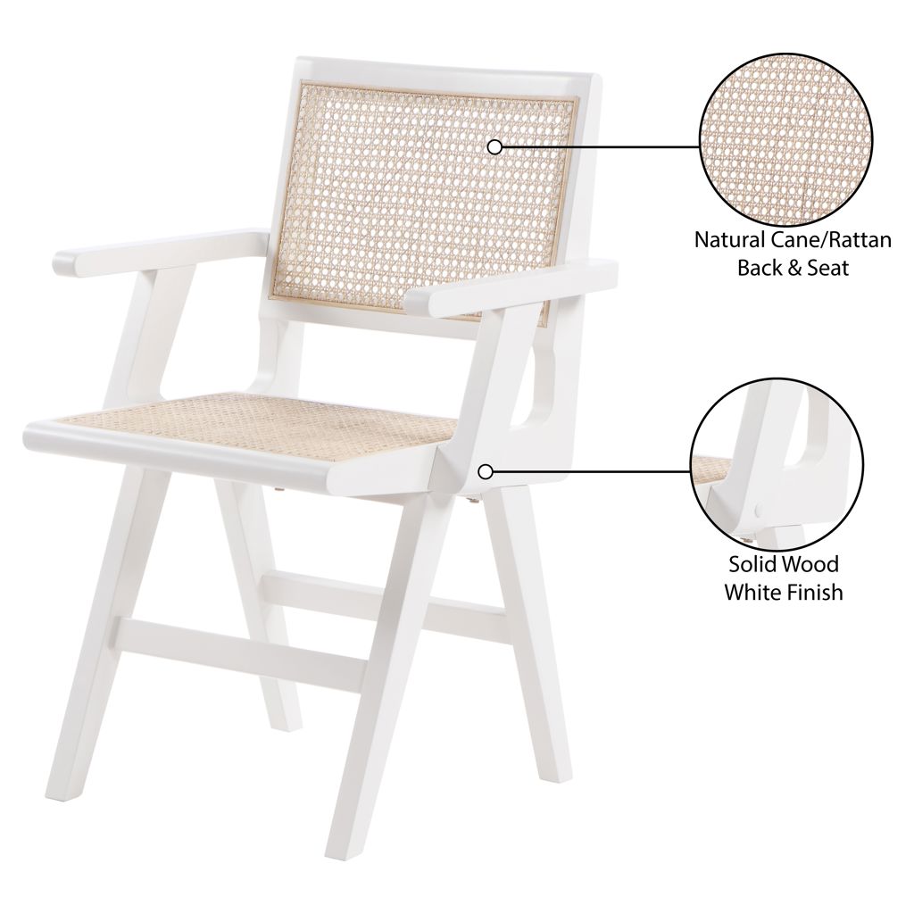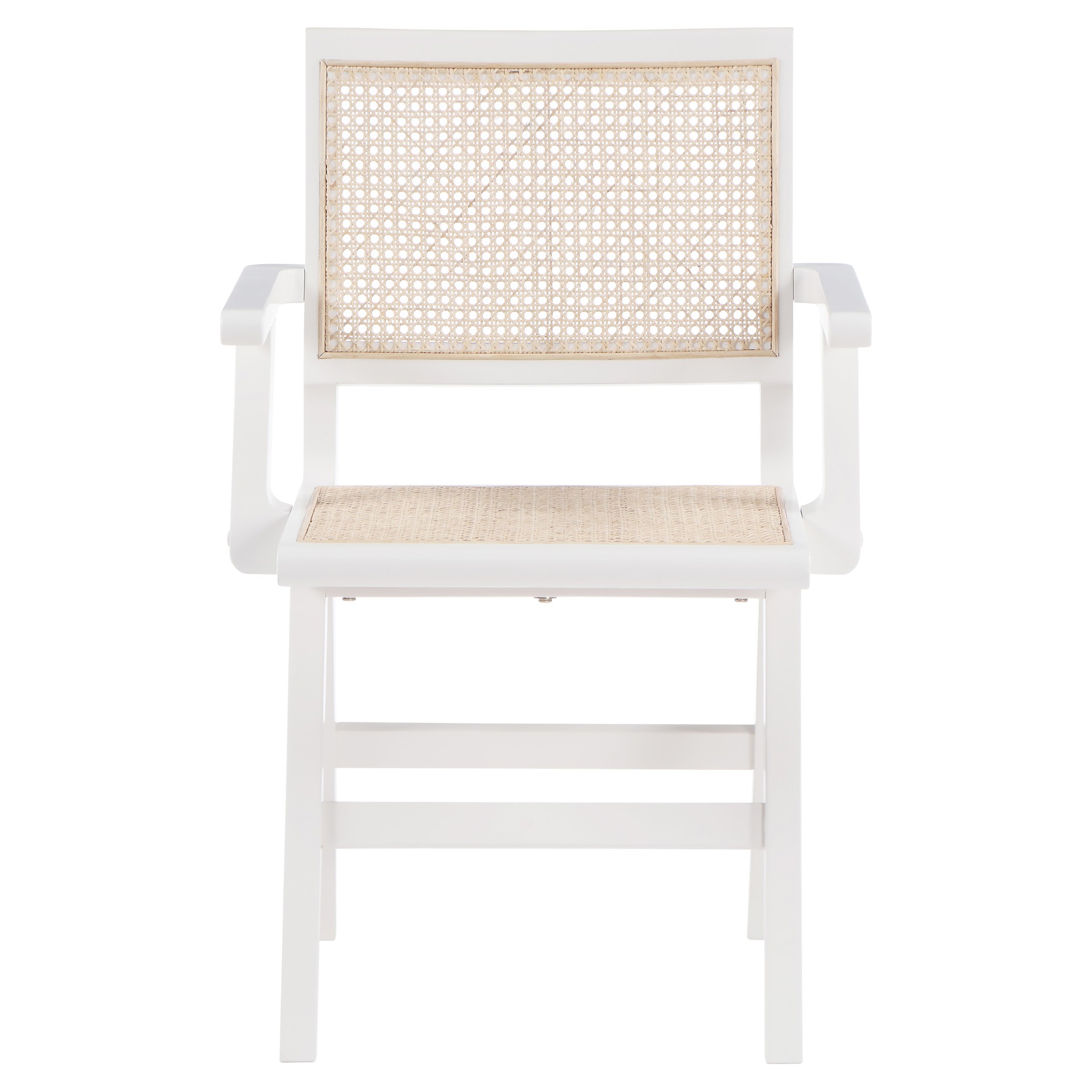 Dotée d'une structure en bois d'hévéa avec une finition blanche et d'un dossier et d'un siège en canne/rotin naturel, cette chaise est aussi élégante que confortable.