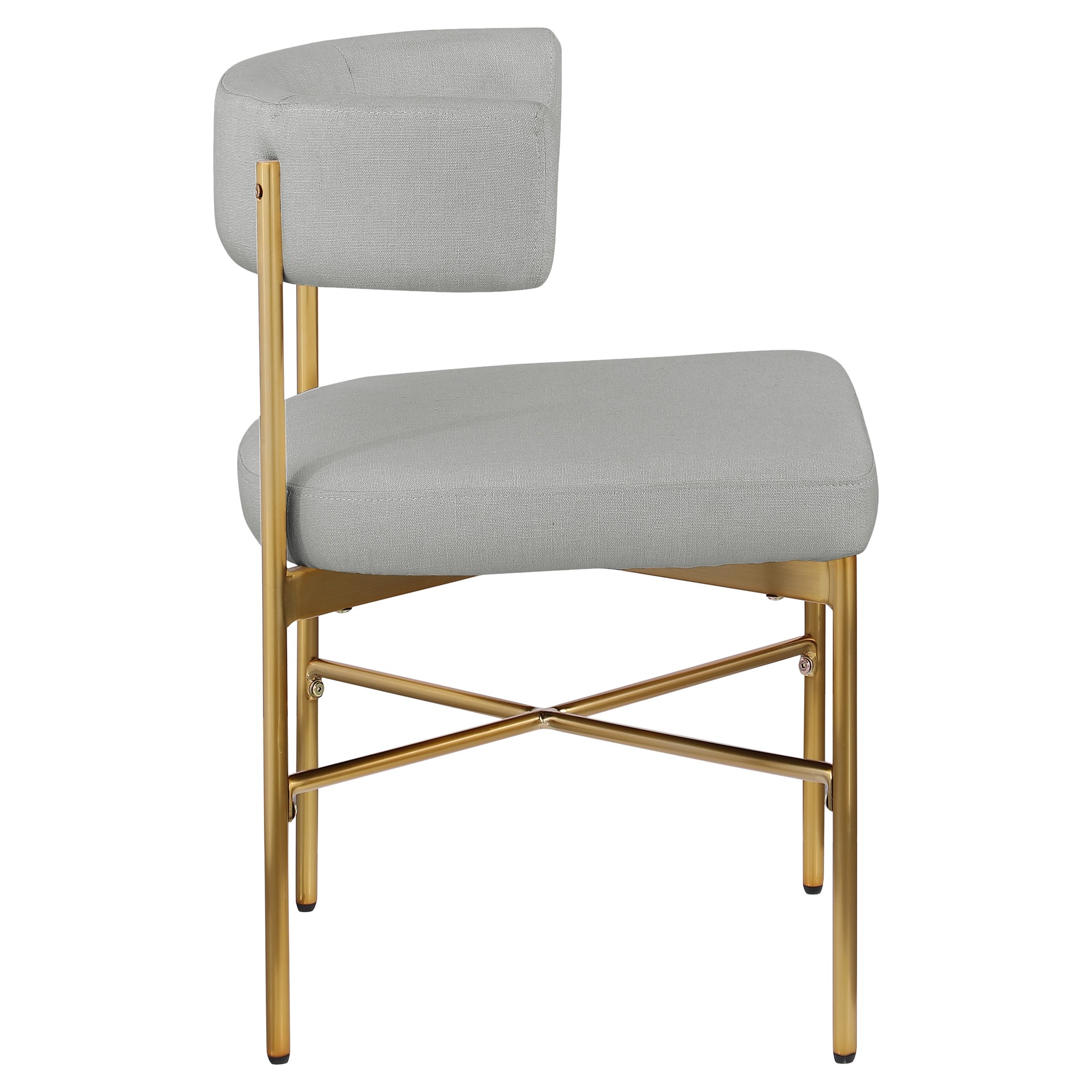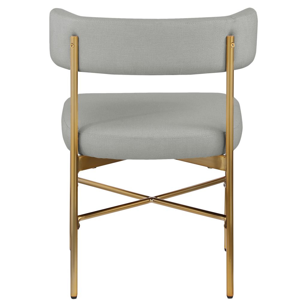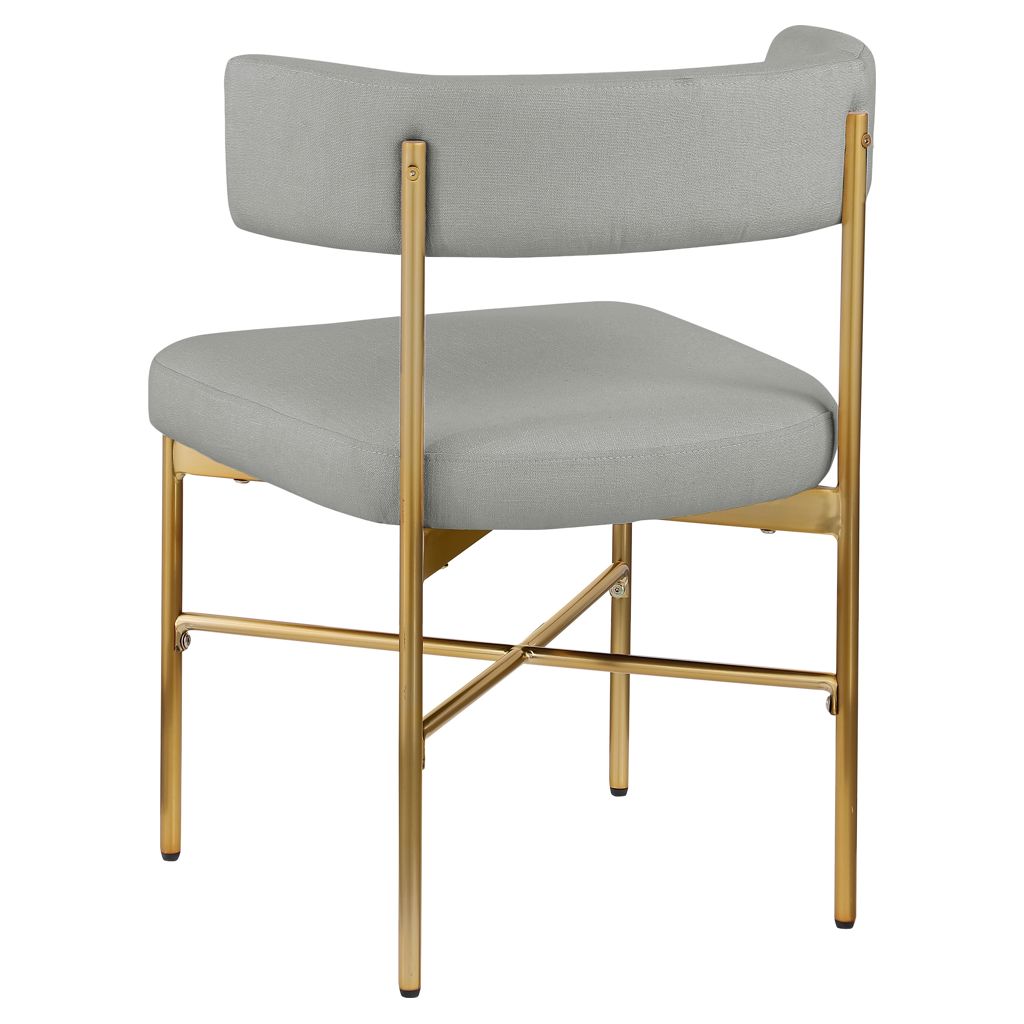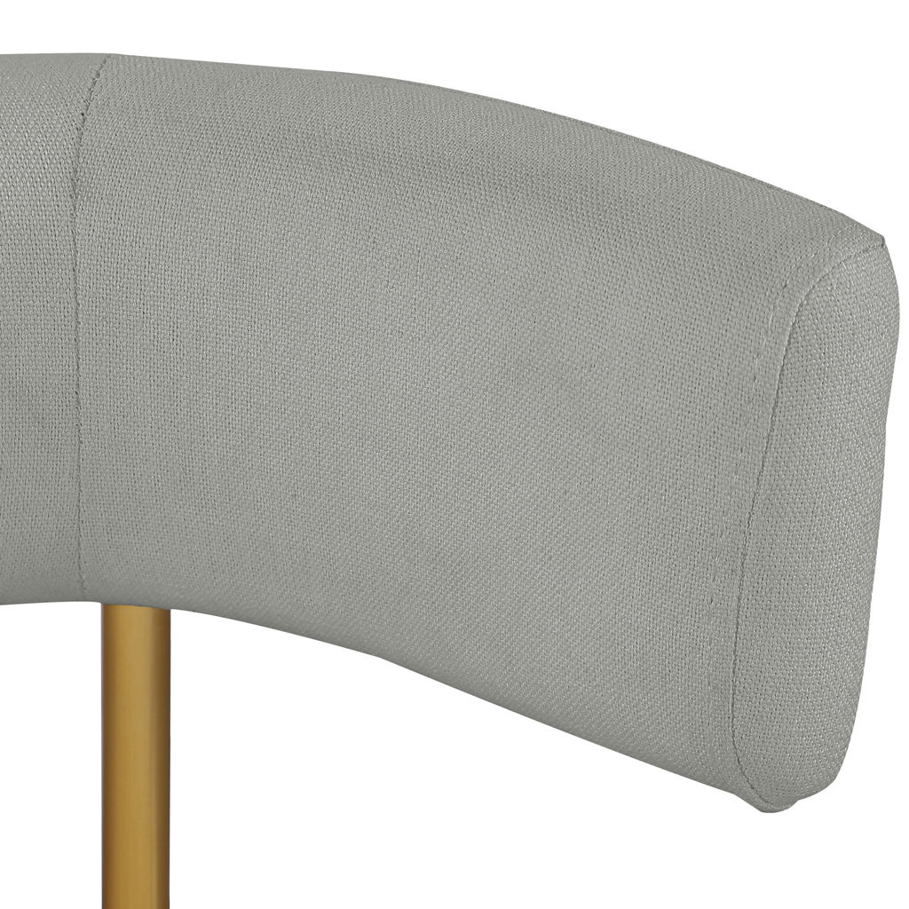 Cette jolie chaise est dotée d'un riche revêtement en tissu texturé en lin gris clair durable sur le dossier et l'assise incurvés, donnant à votre espace une sensation élégante et raffinée.