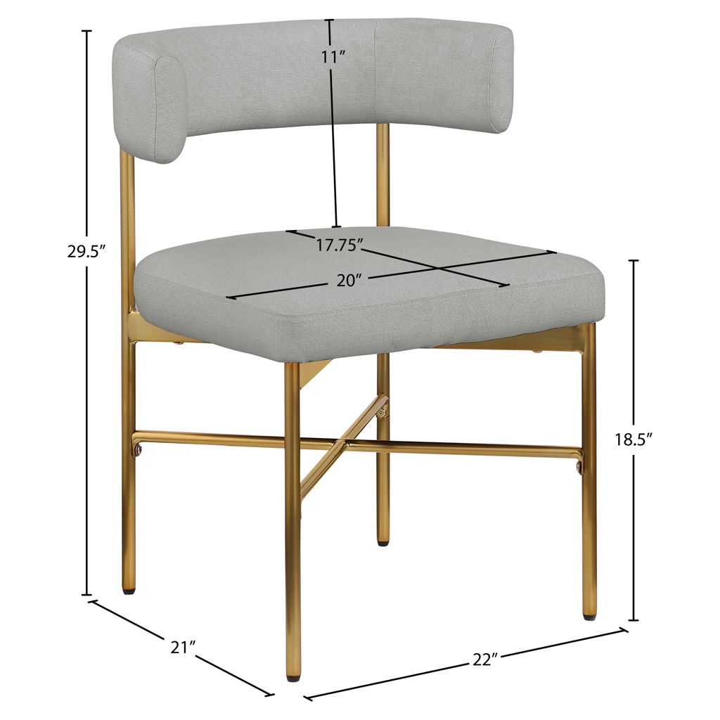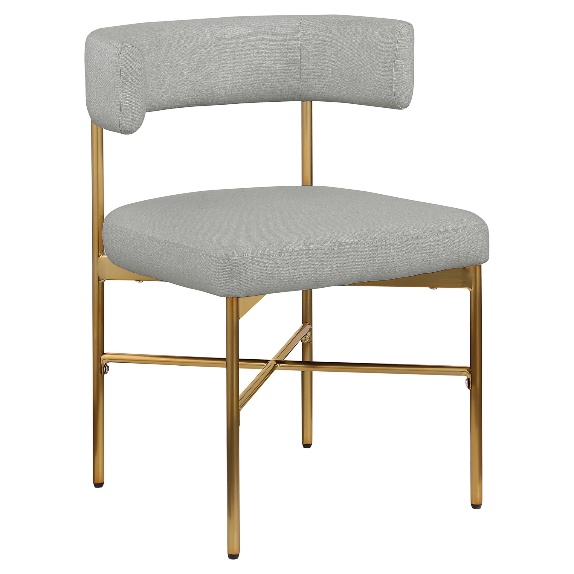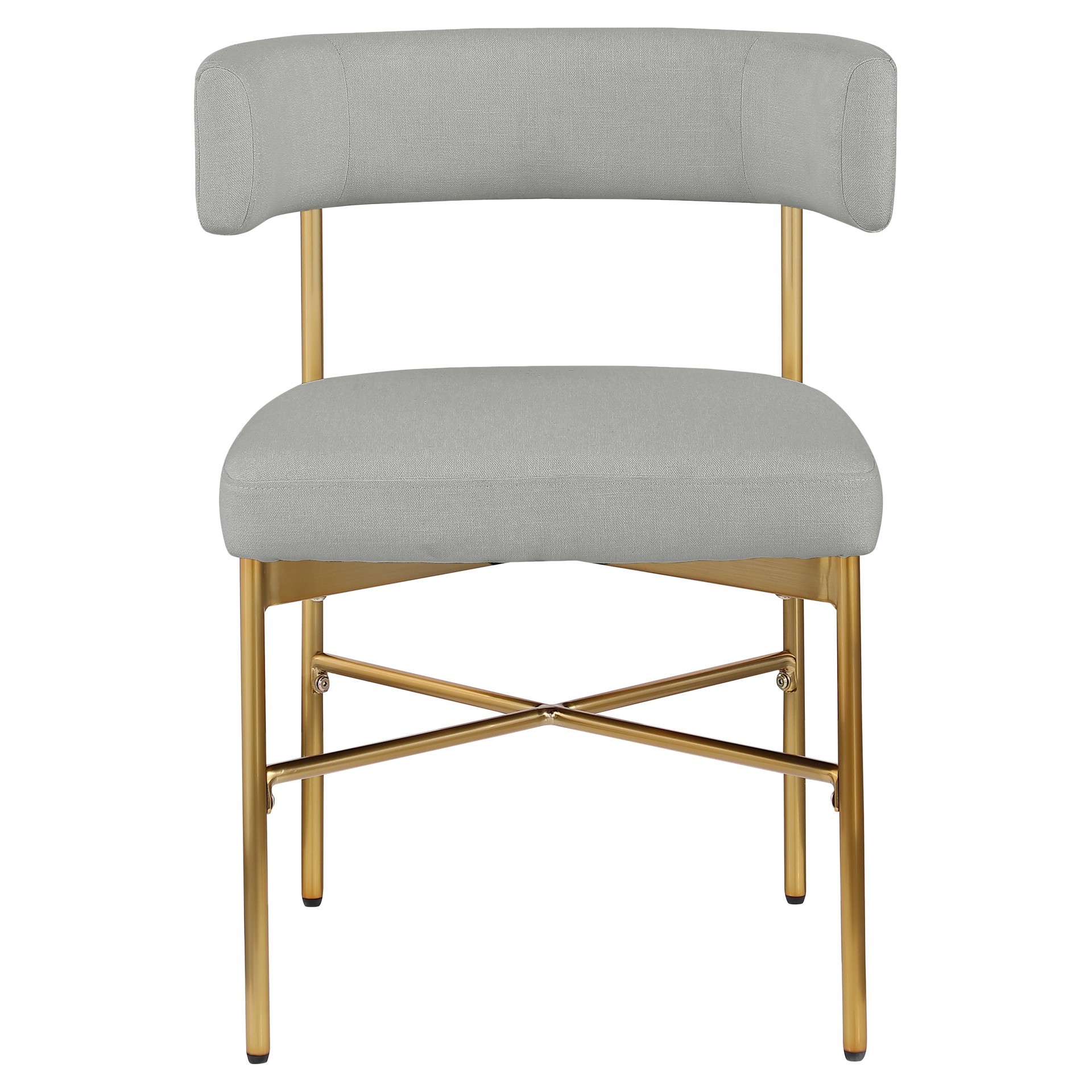 Cette jolie chaise est dotée d'un riche revêtement en tissu texturé en lin gris clair durable sur le dossier et l'assise incurvés, donnant à votre espace une sensation élégante et raffinée.