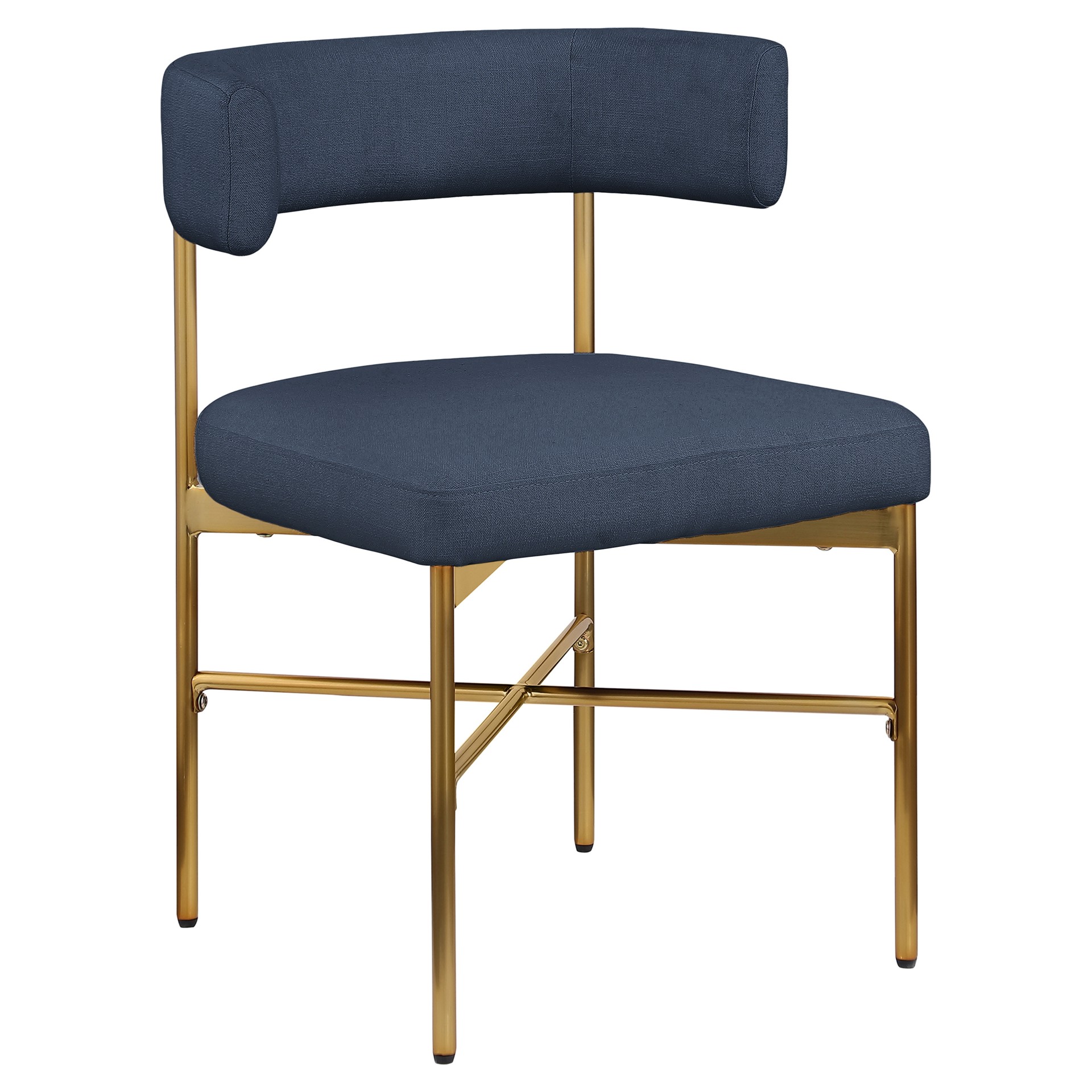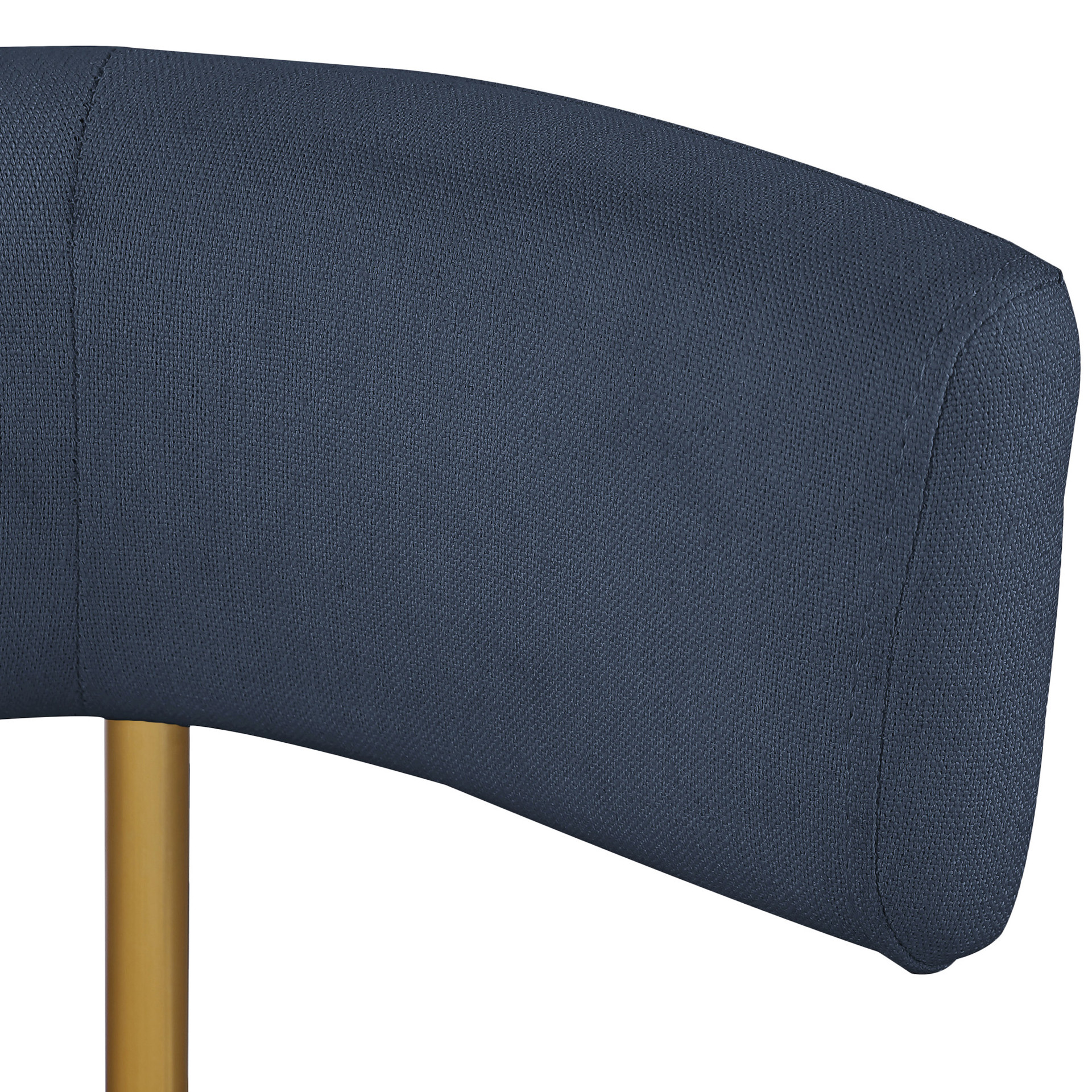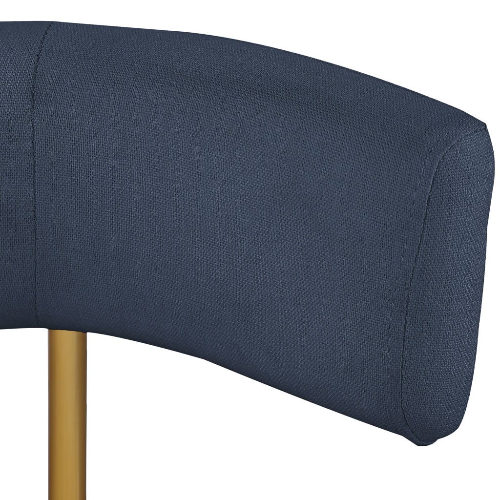 Cette jolie chaise est dotée d'un riche revêtement en tissu texturé en lin bleu marine durable sur le dossier et l'assise incurvés, donnant à votre espace une sensation élégante et raffinée.