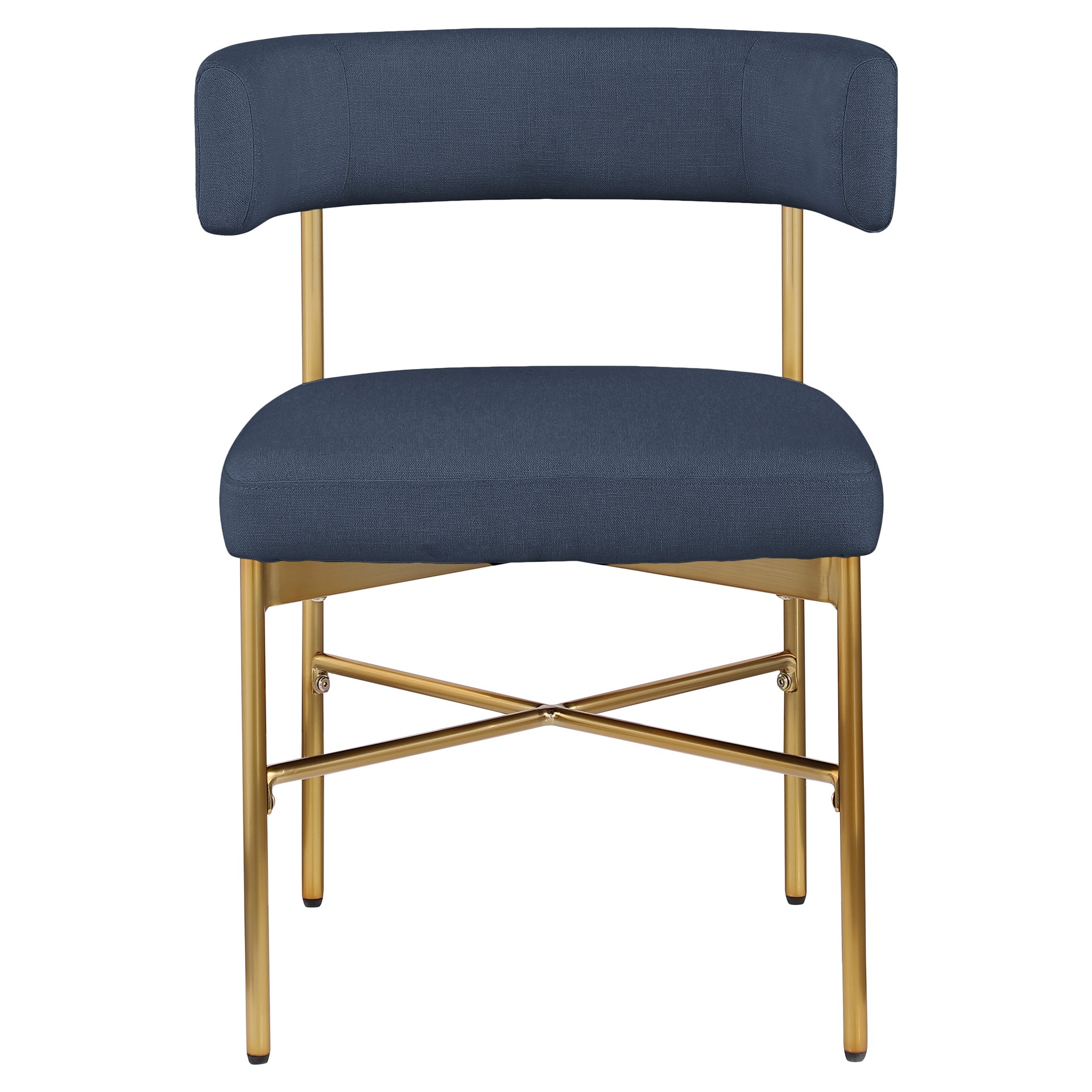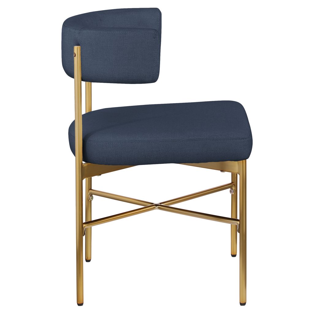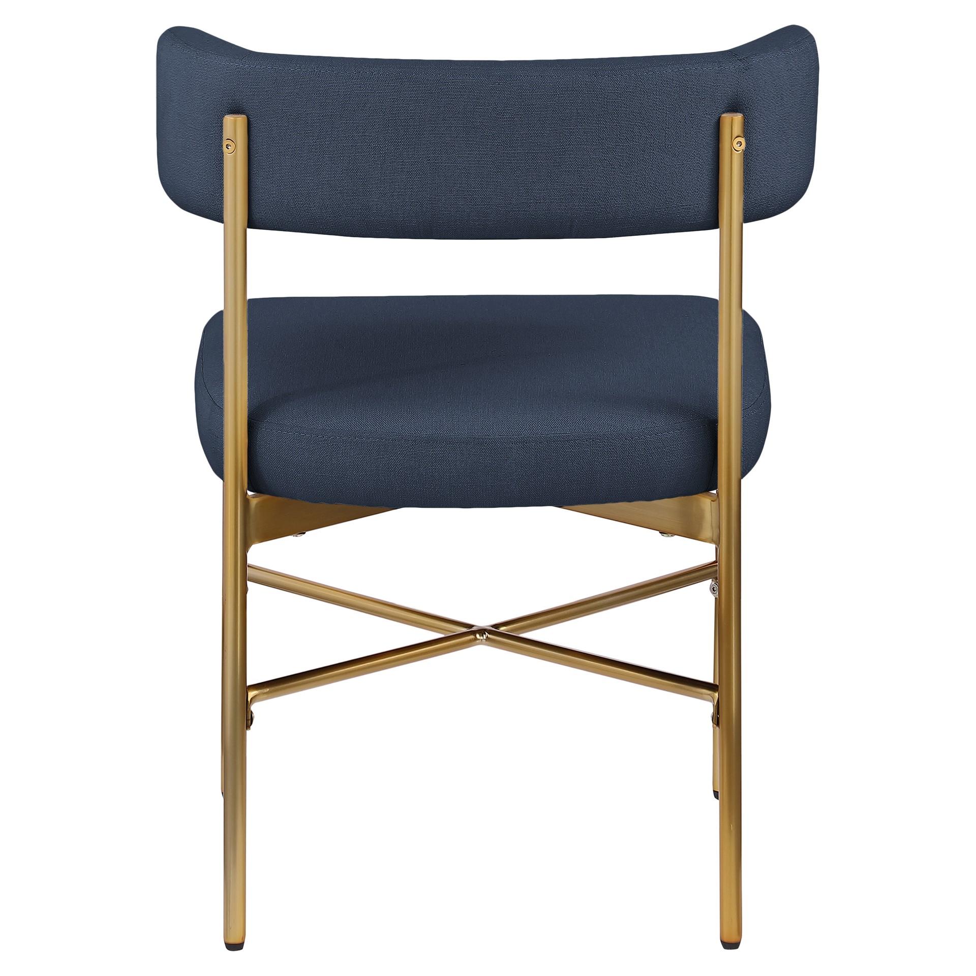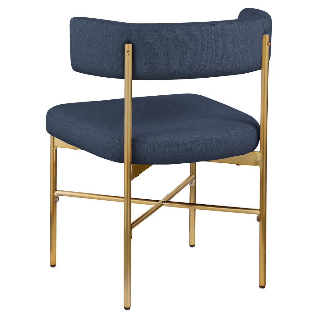 Cette jolie chaise est dotée d'un riche revêtement en tissu texturé en lin bleu marine durable sur le dossier et l'assise incurvés, donnant à votre espace une sensation élégante et raffinée.
