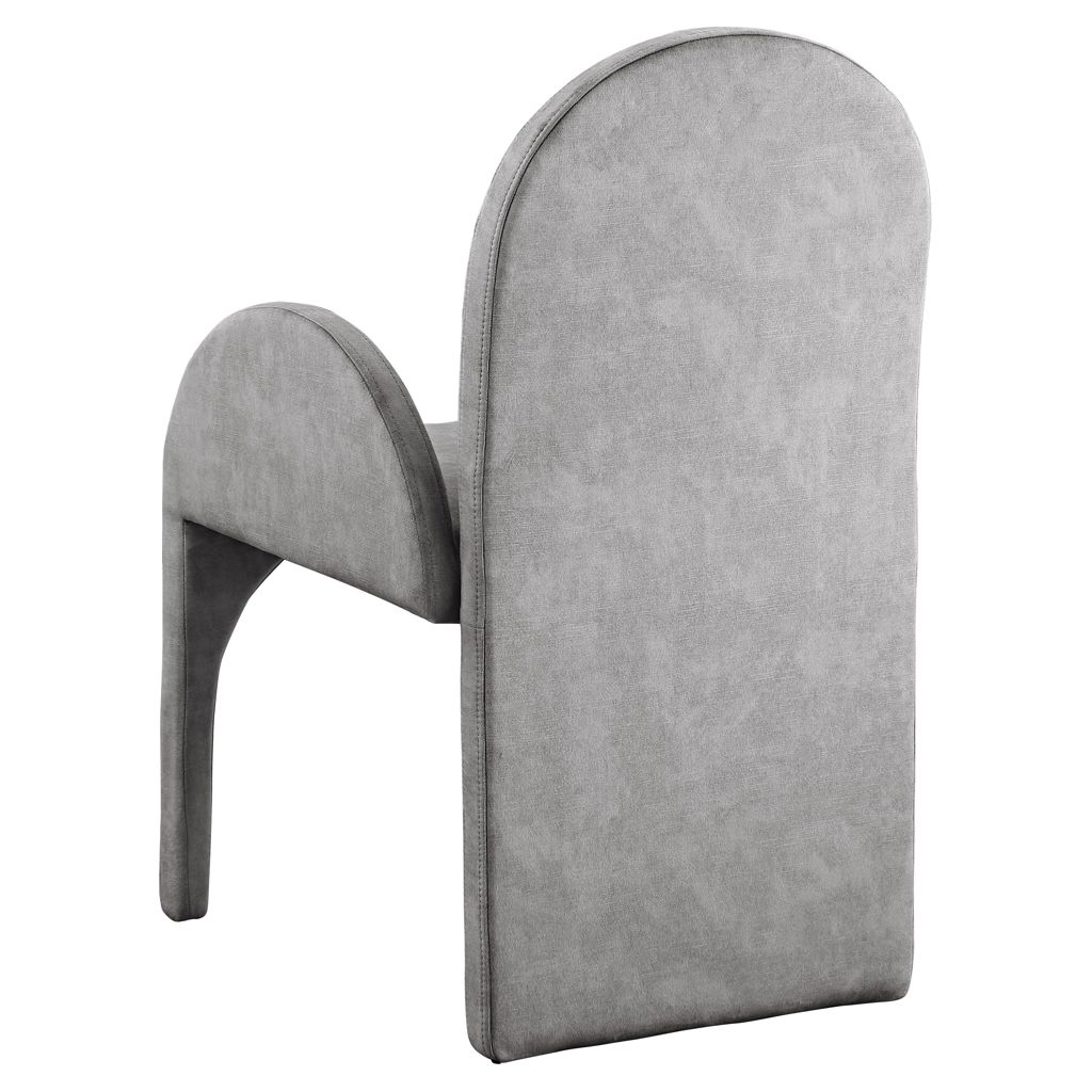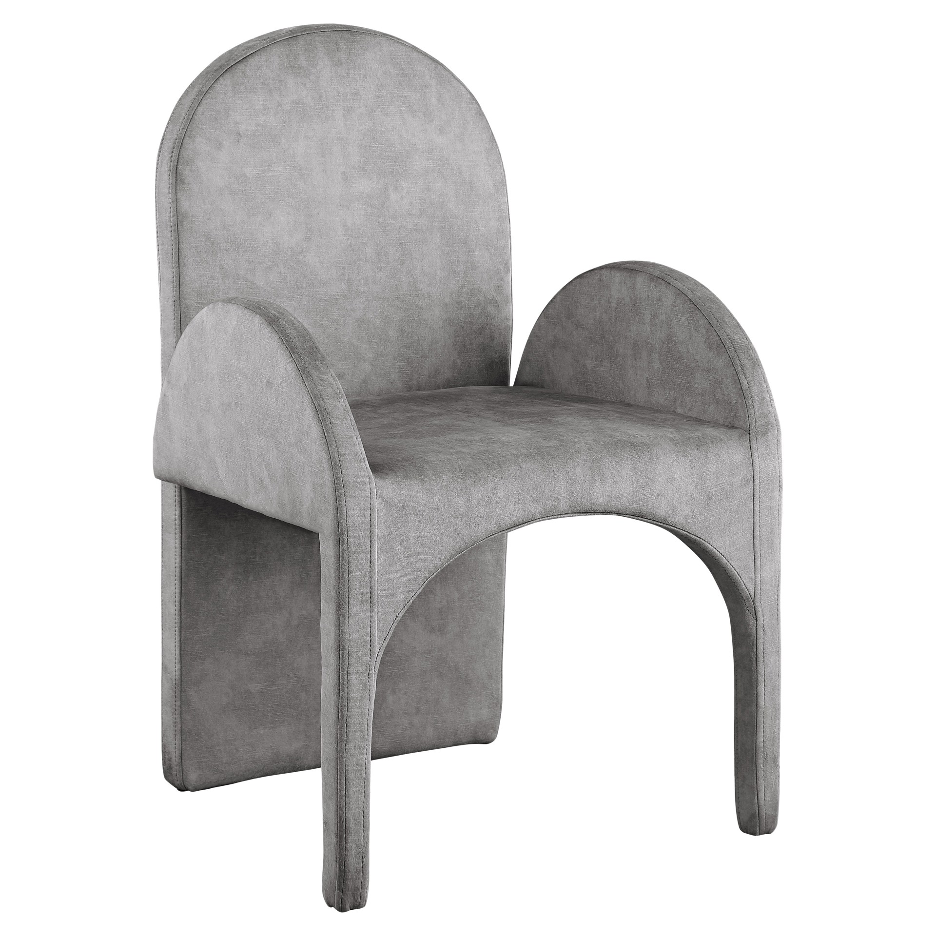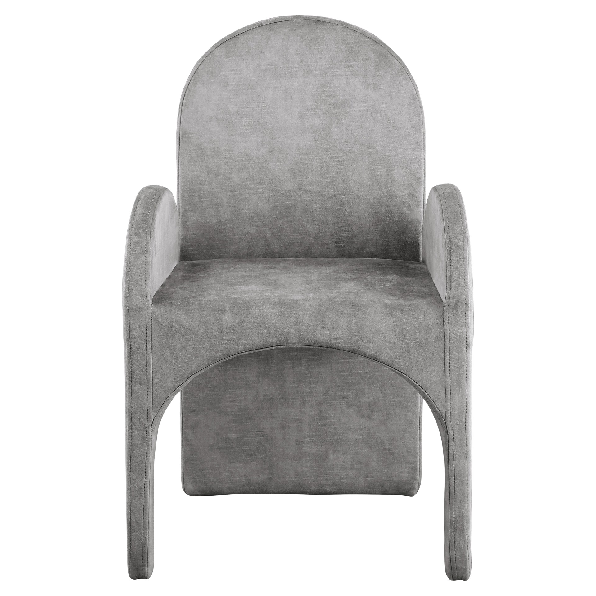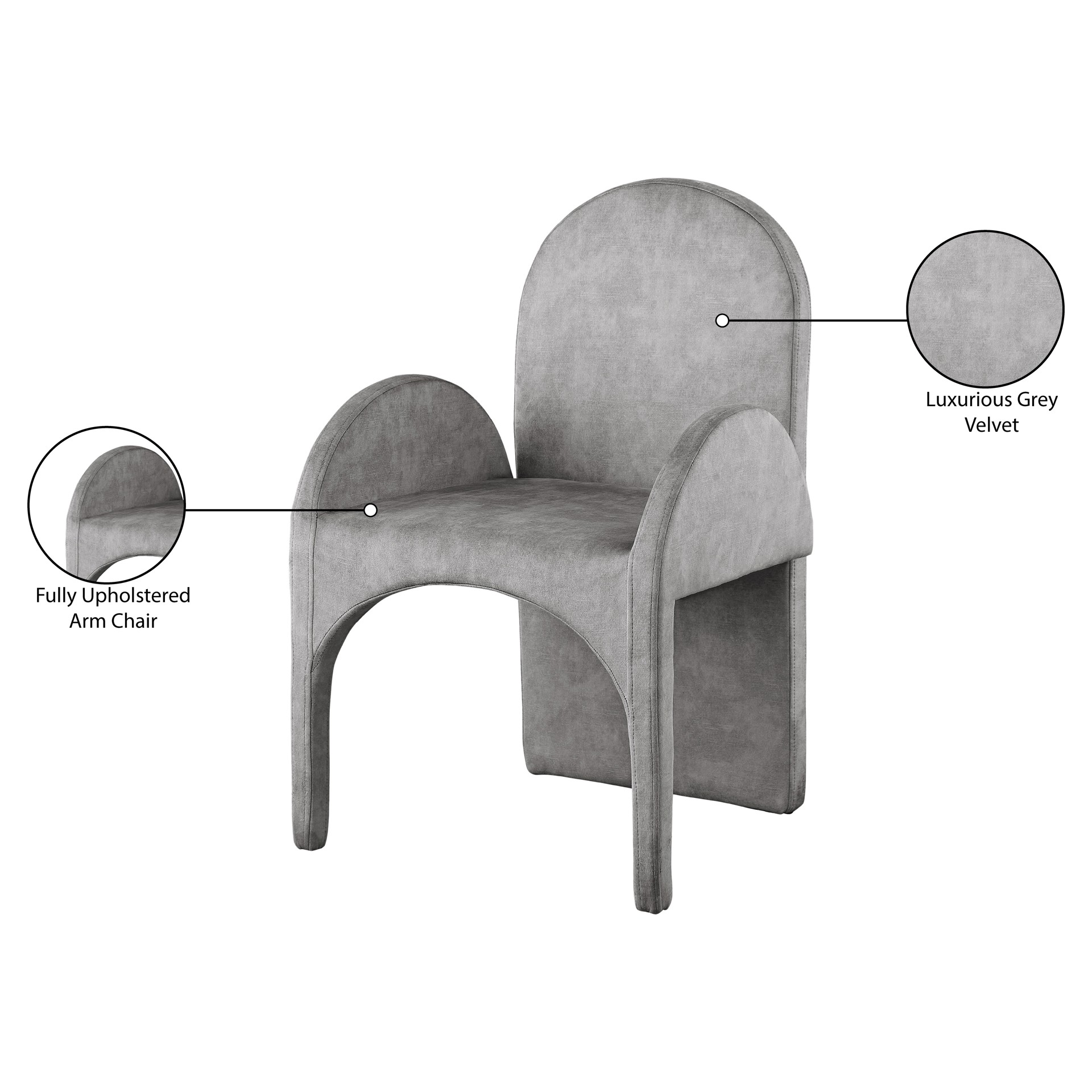 Doté d'un luxueux revêtement en velours gris, ce fauteuil entièrement rembourré offre confort et soutien pendant que vous savourez vos repas.