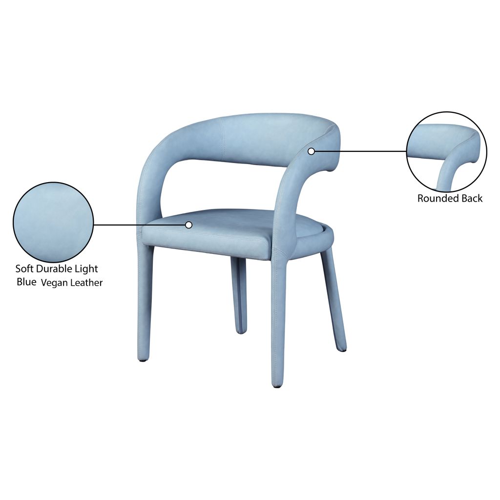 Dotée d'un revêtement en similicuir bleu clair doux et durable, cette chaise vous offre un endroit confortable et durable pour vous asseoir pendant que vous dînez.