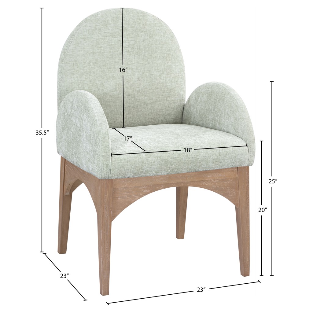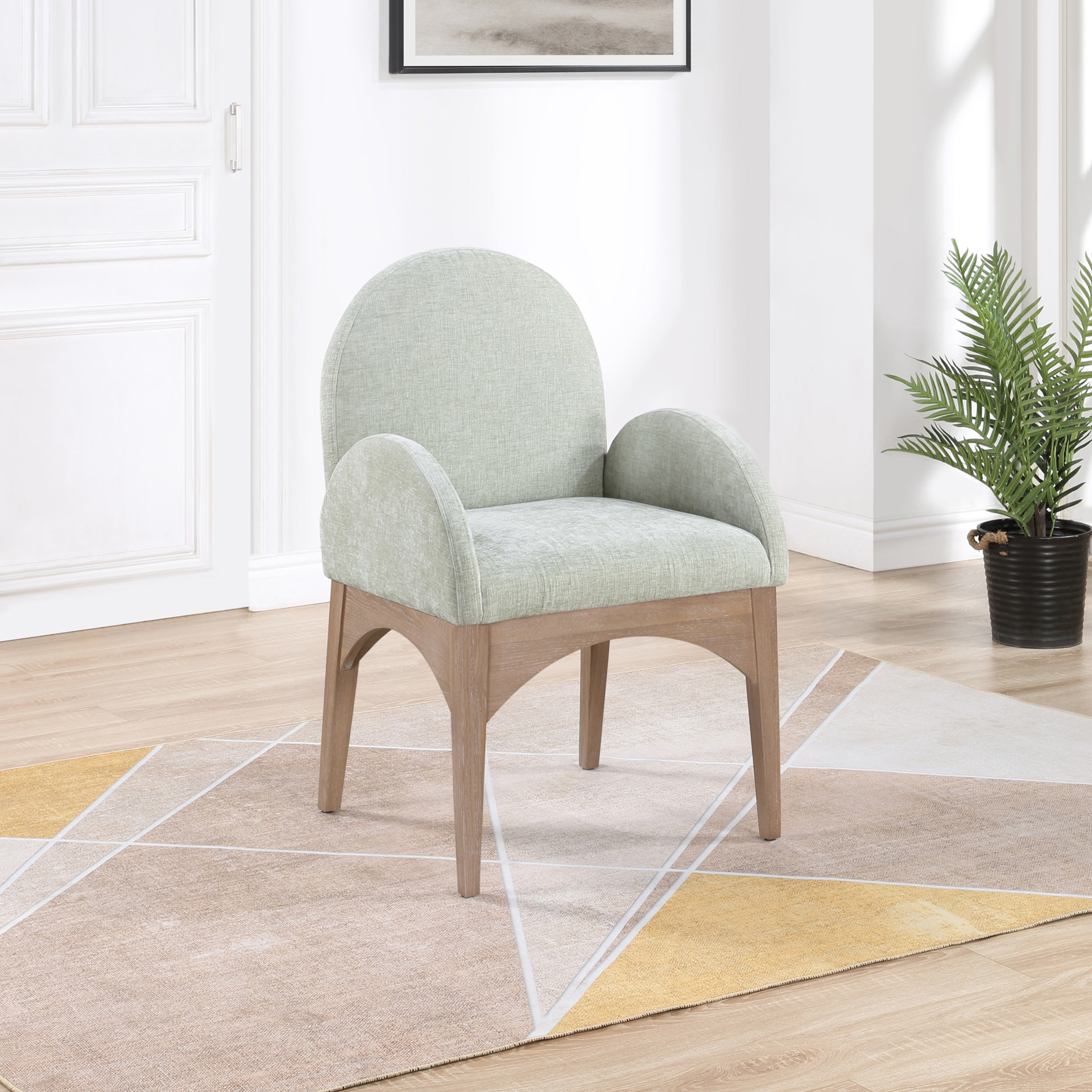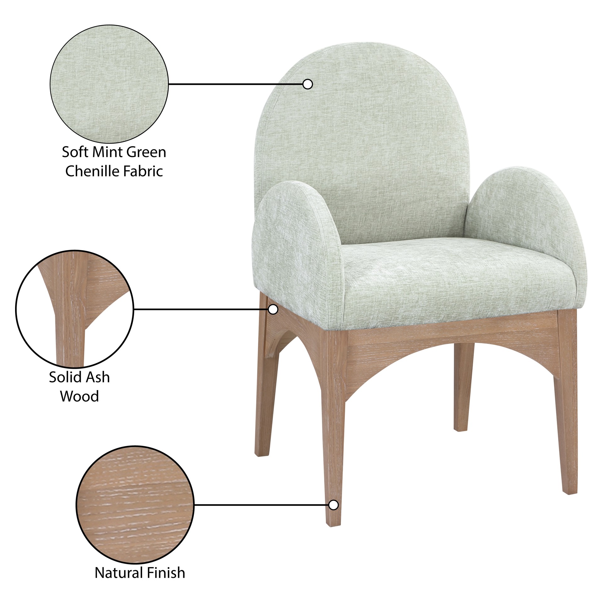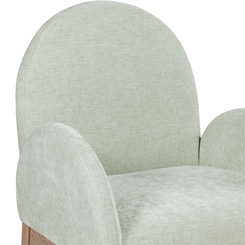 Le tissu chenille moelleux à la menthe sur le siège et le dossier de la chaise offre une expérience d'assise douce et confortable, ce qui en fait un choix idéal pour les longs dîners en famille et entre amis.