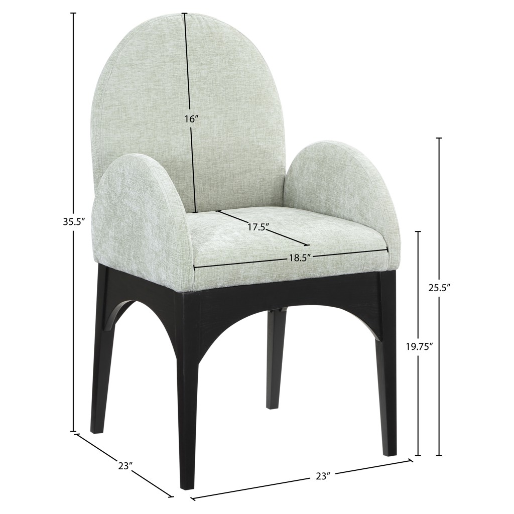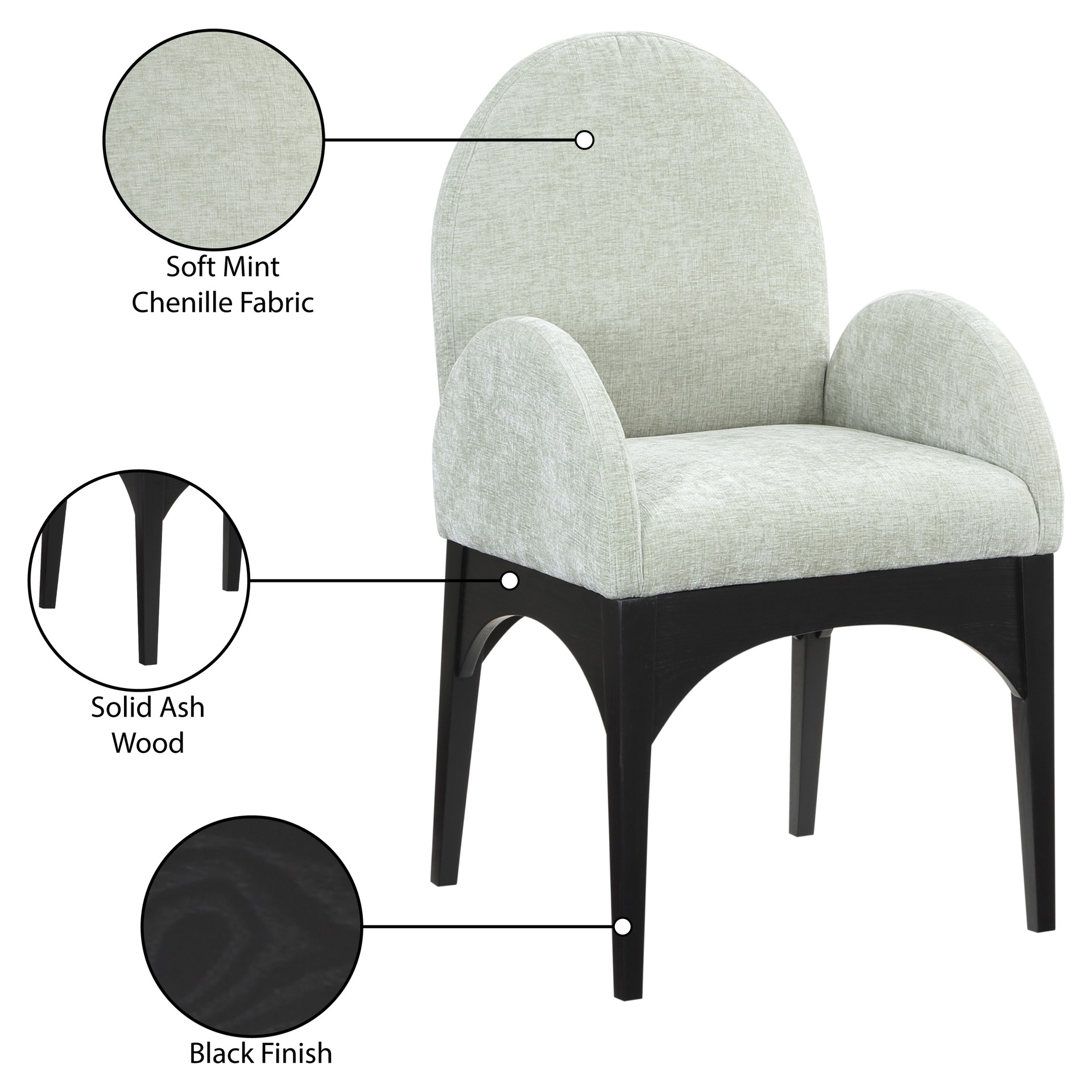 Le tissu chenille moelleux à la menthe sur le siège et le dossier de la chaise offre une expérience d'assise douce et confortable, ce qui en fait un choix idéal pour les longs dîners en famille et entre amis.