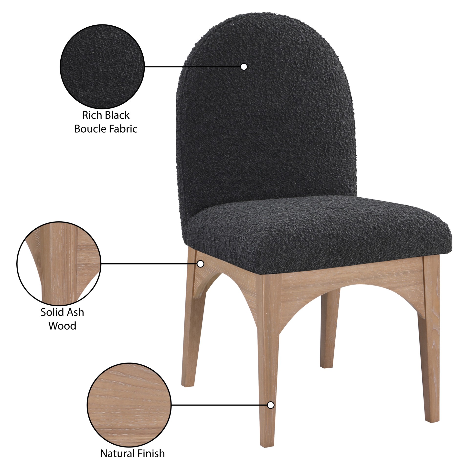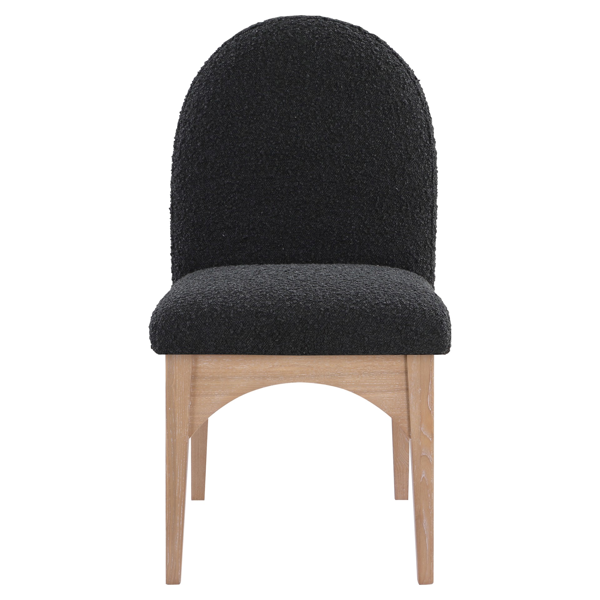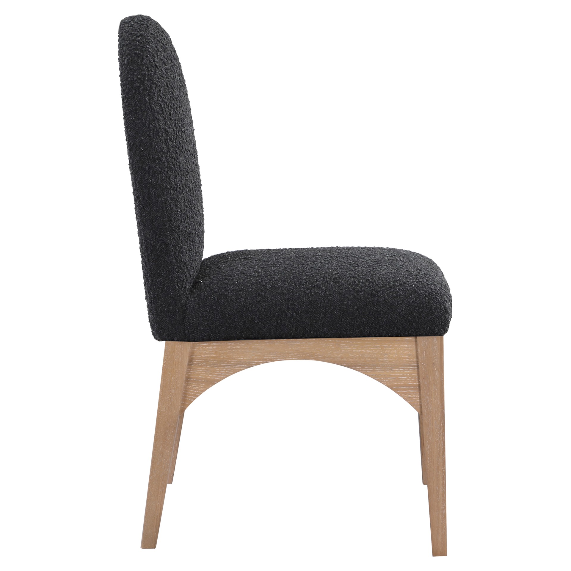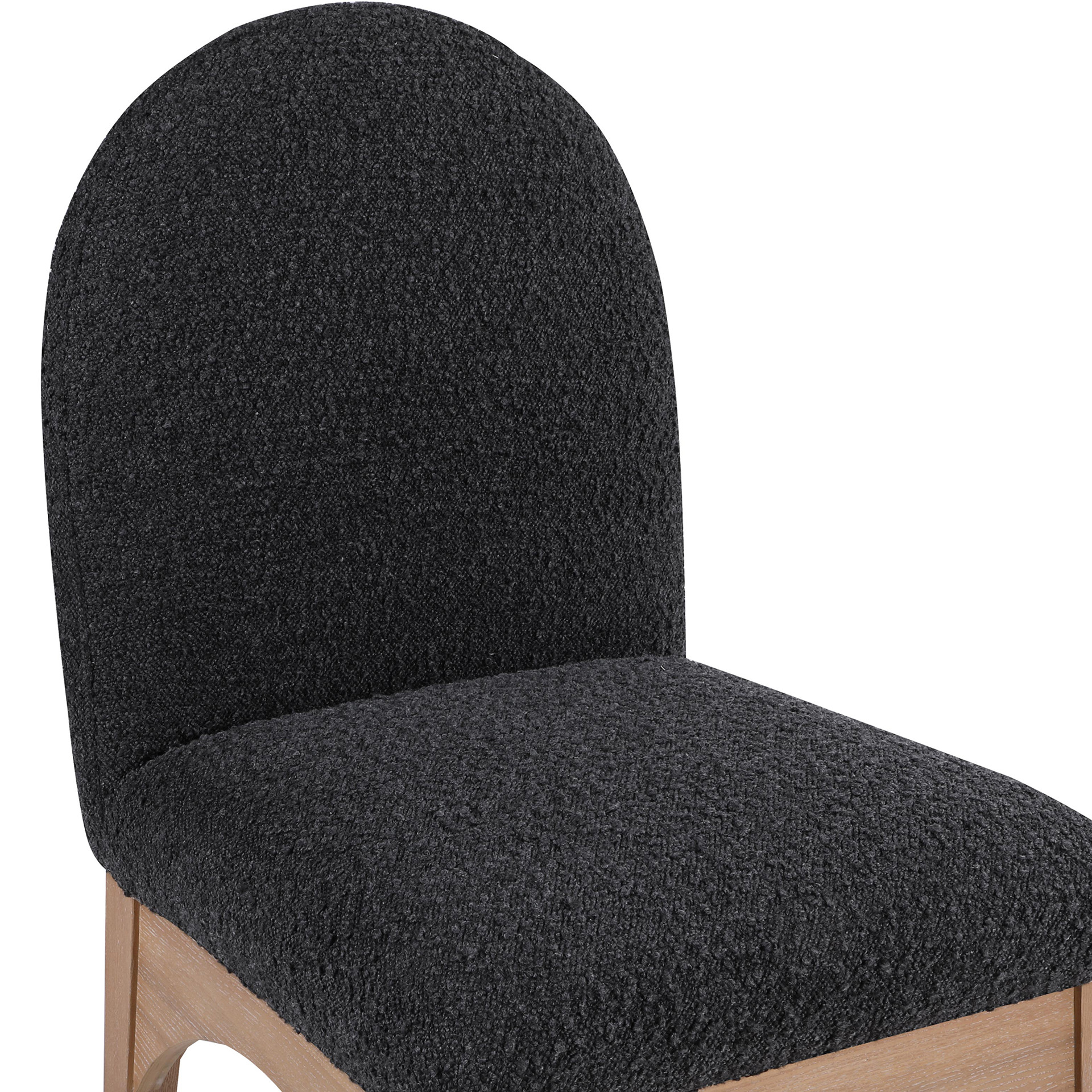 Le tissu bouclé noir moelleux sur le siège et le dossier de la chaise offre une expérience d'assise douce et confortable, ce qui en fait un choix idéal pour les longs dîners en famille et entre amis.
