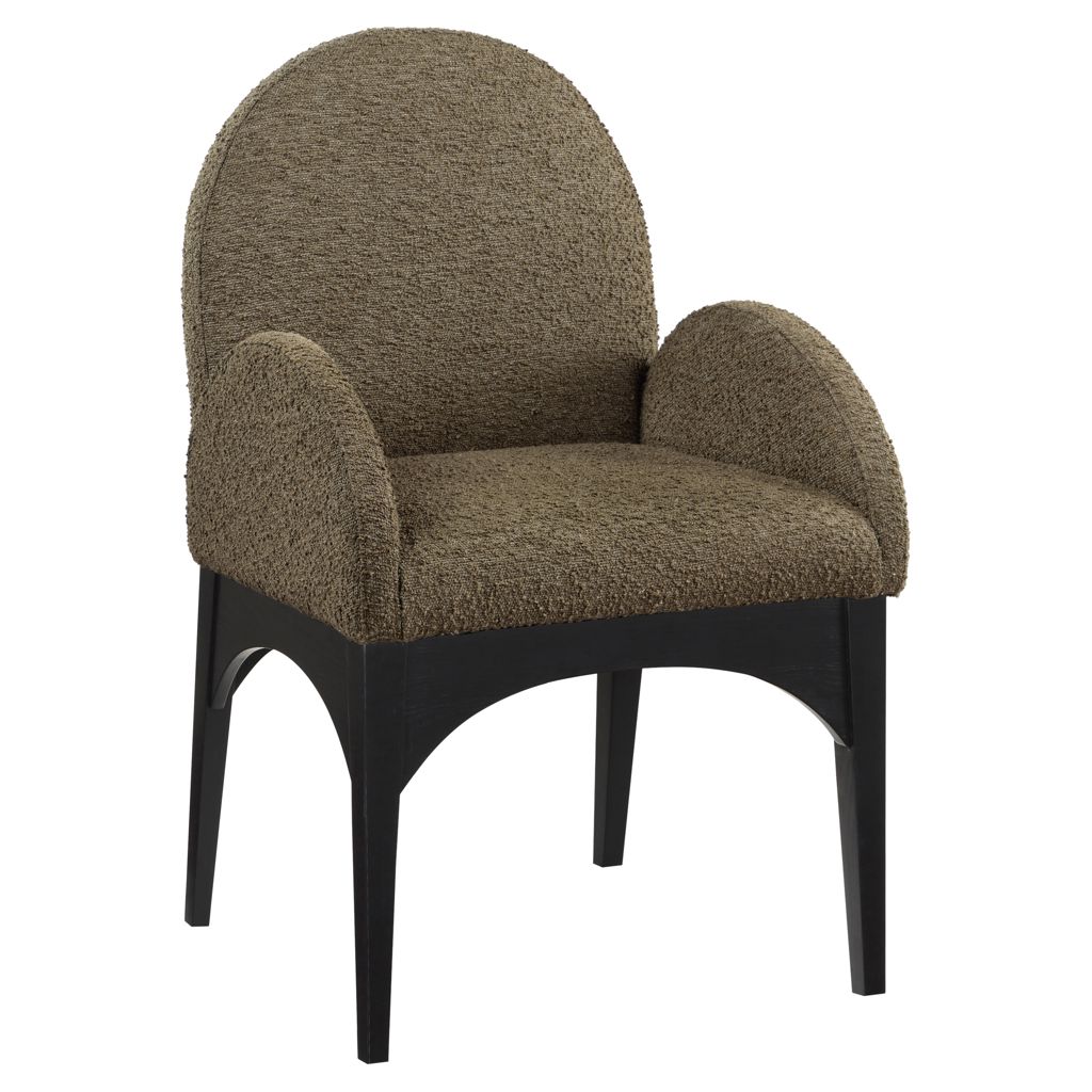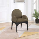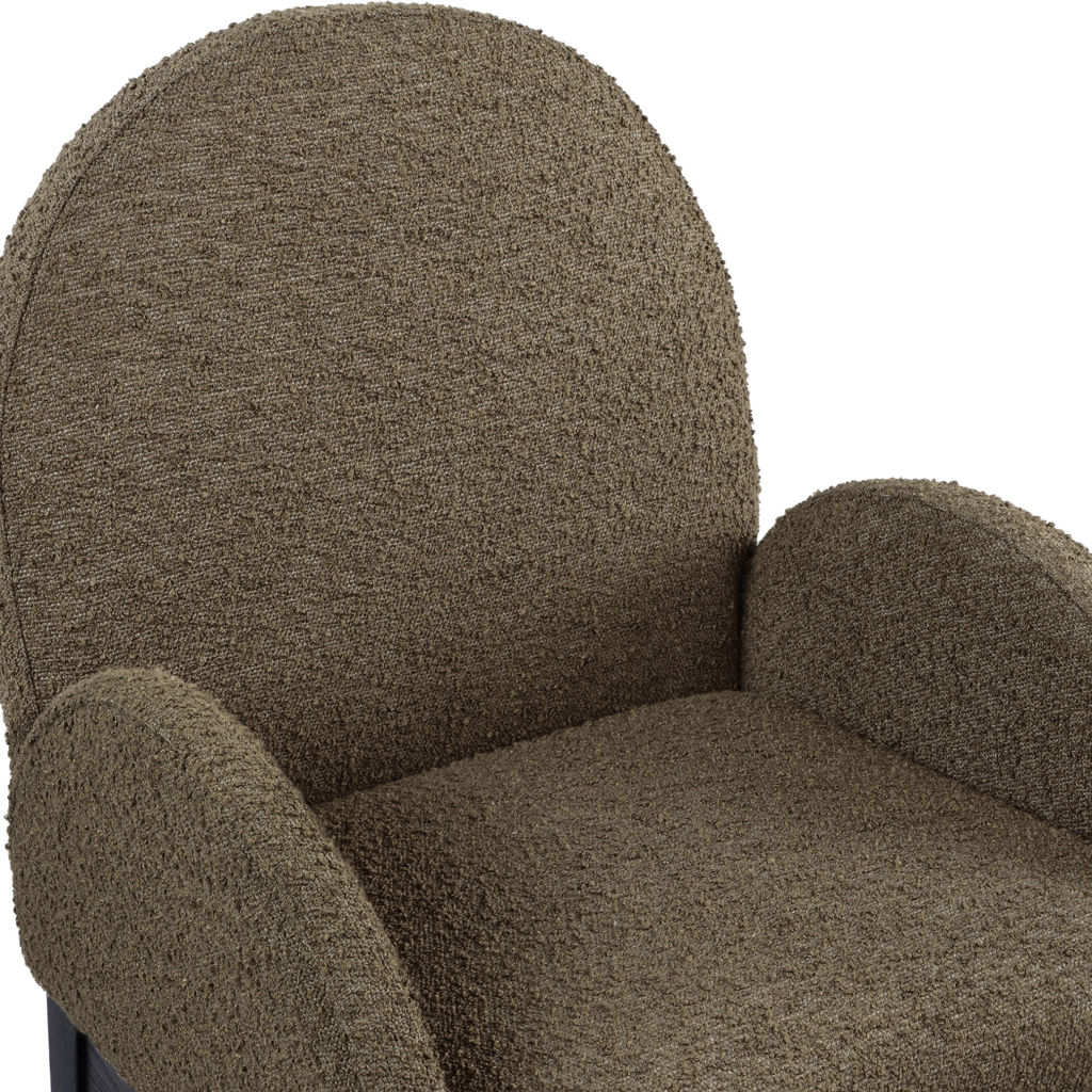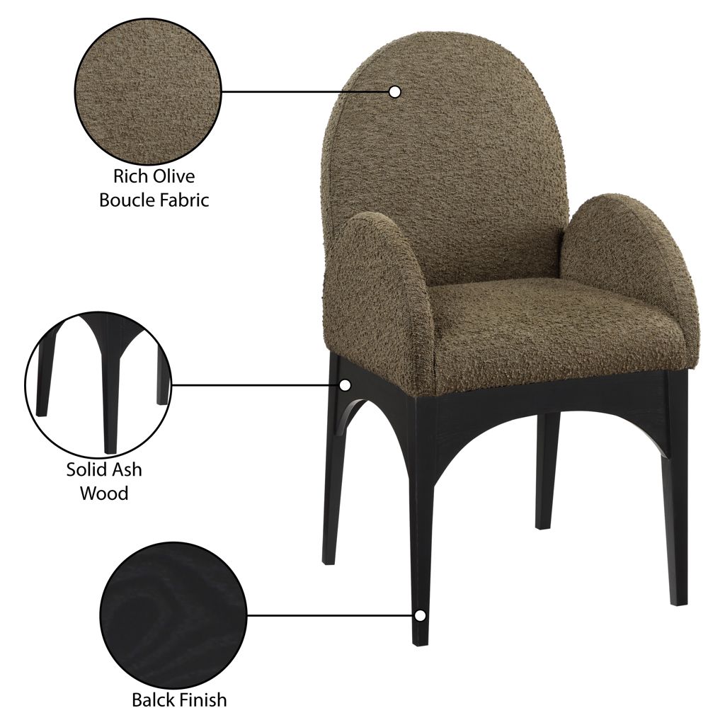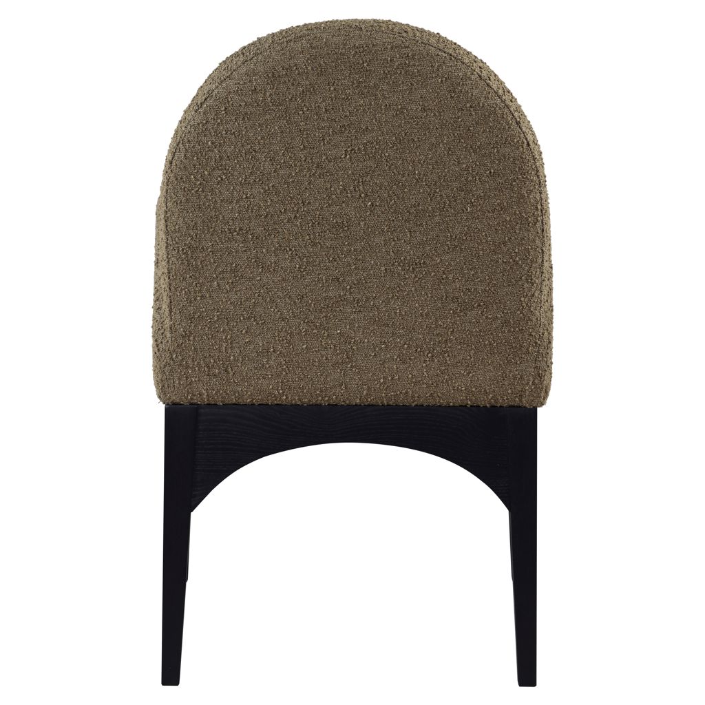 Le tissu bouclé olive moelleux sur le siège et le dossier de la chaise offre une expérience d'assise douce et confortable, ce qui en fait un choix idéal pour les longs dîners en famille et entre amis.