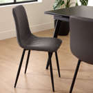 Transformez vos repas en moments privilégiés avec cette chaise au design contemporain. Son revêtement en cuir synthétique de qualité offre une surface douce et résistante, facile d'entretien au quotidien. Les surpiqûres raffinées ajoutent une touche de sophistication qui s'harmonise parfaitement avec tous les décors.