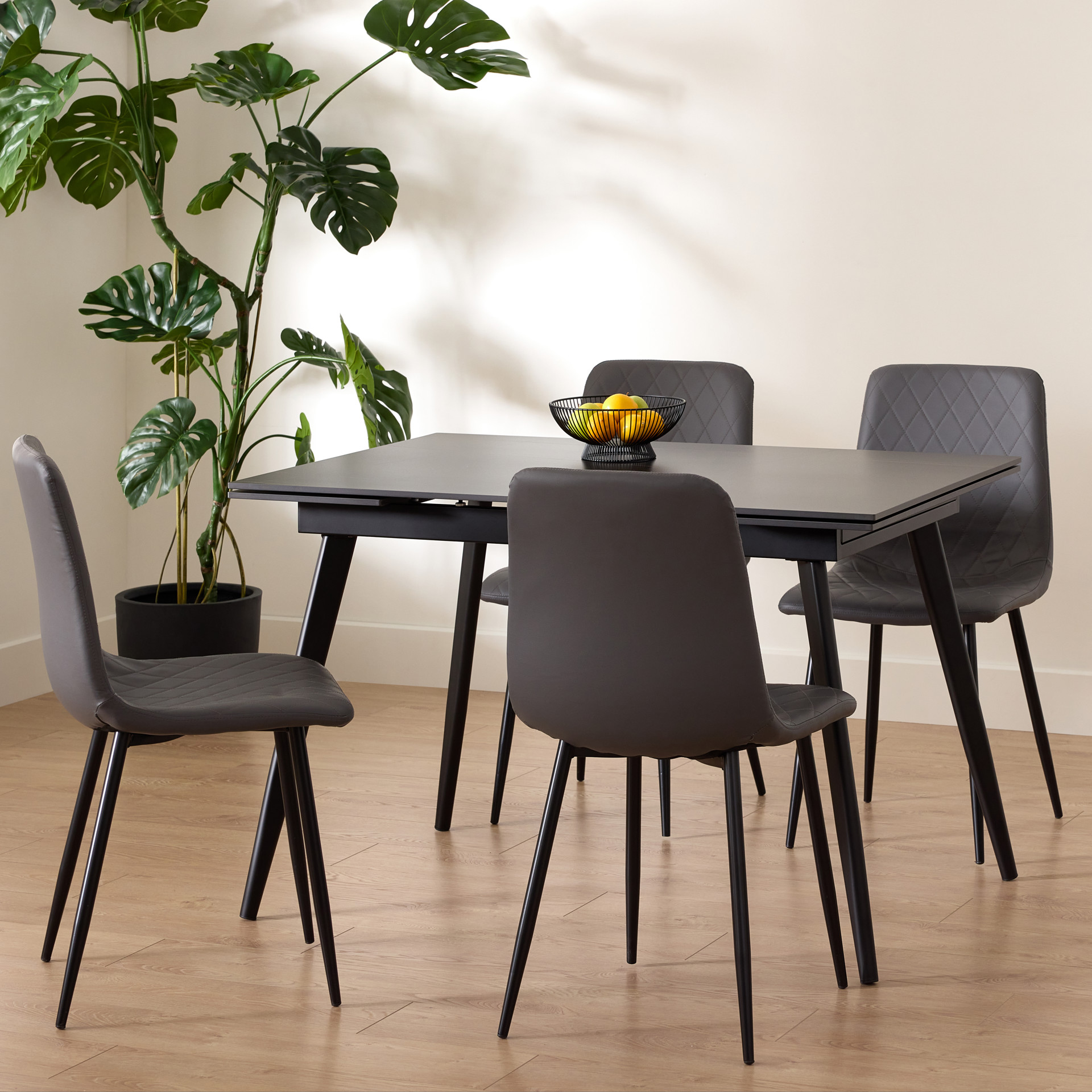Ses pieds en métal noir apportent stabilité et durabilité, tandis que l'assise généreusement rembourrée garantit un confort optimal lors de vos dîners en famille ou entre amis. La couleur grise intemporelle s'intègre naturellement dans votre intérieur.