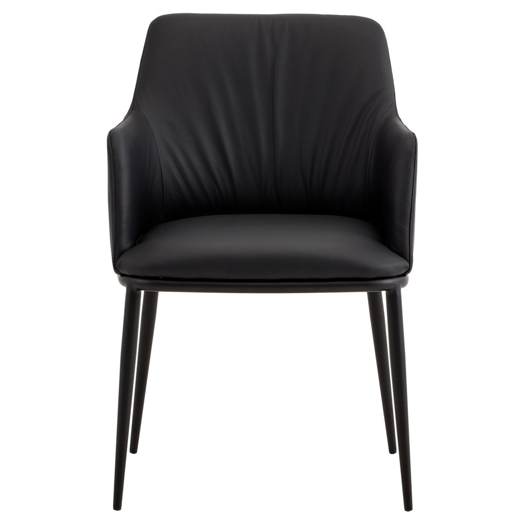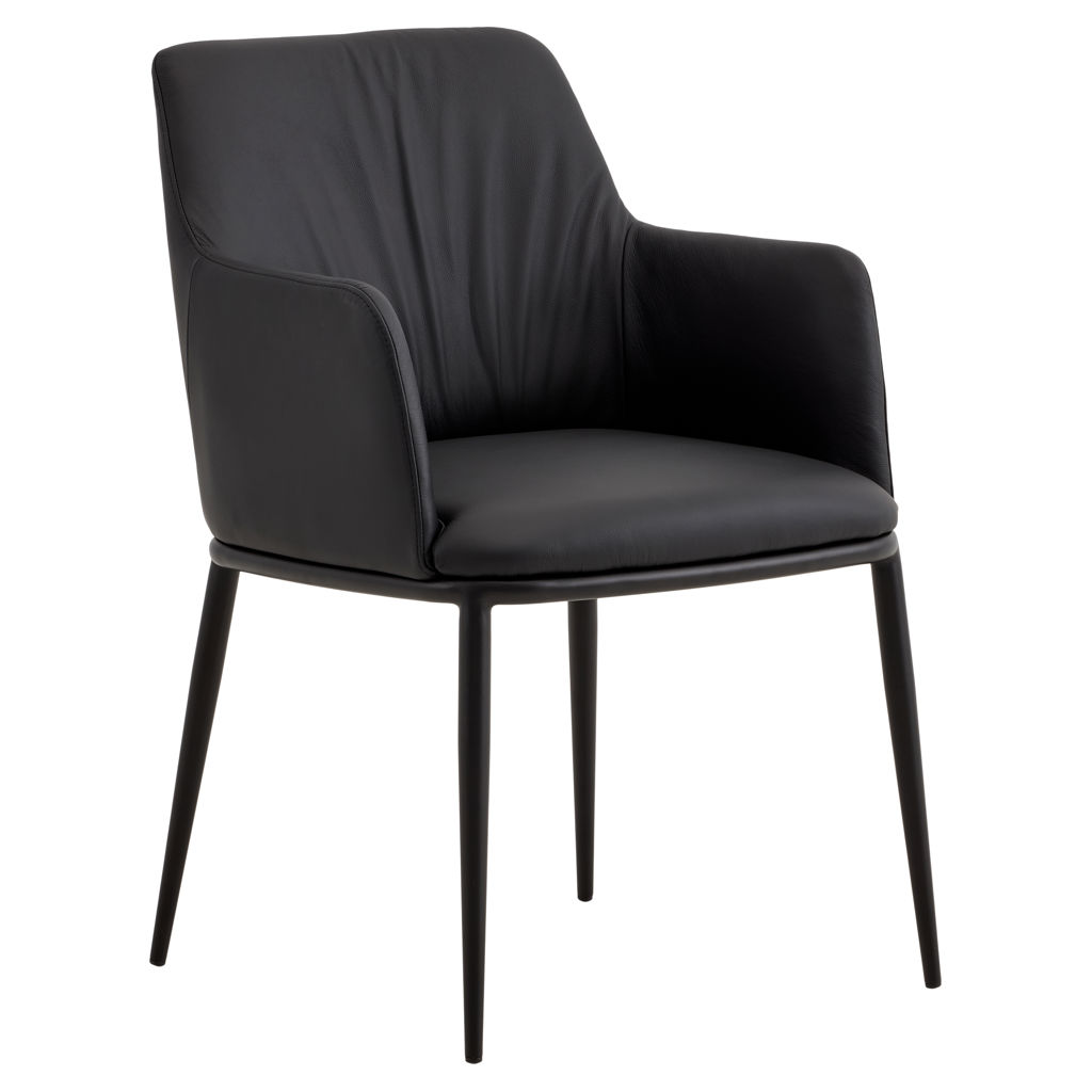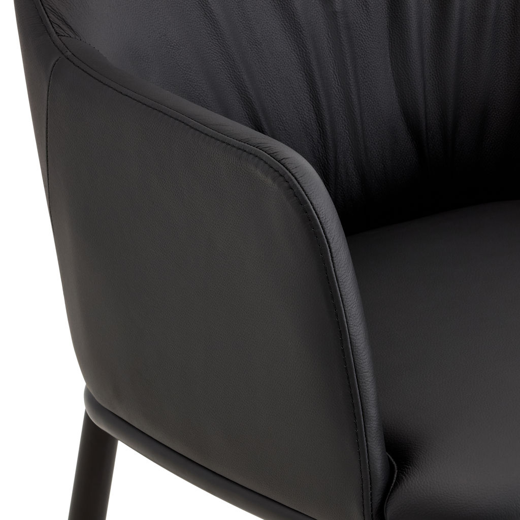 Découvrez la chaise Lidia, où le raffinement moderne rencontre le confort absolu. Son revêtement en cuir véritable couleur noir apporte une touche de luxe à votre intérieur, tandis que ses lignes épurées s'adaptent parfaitement à tous les styles de décoration.