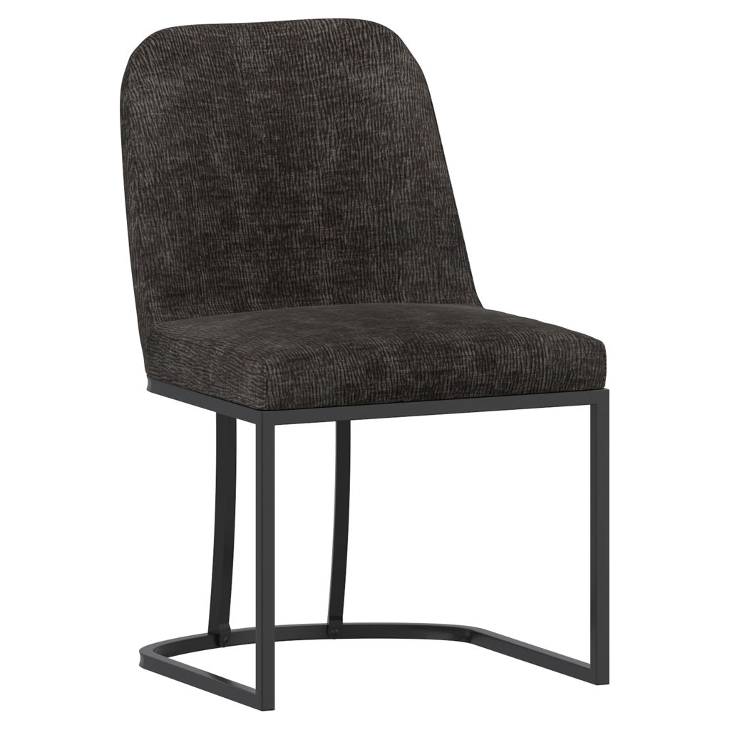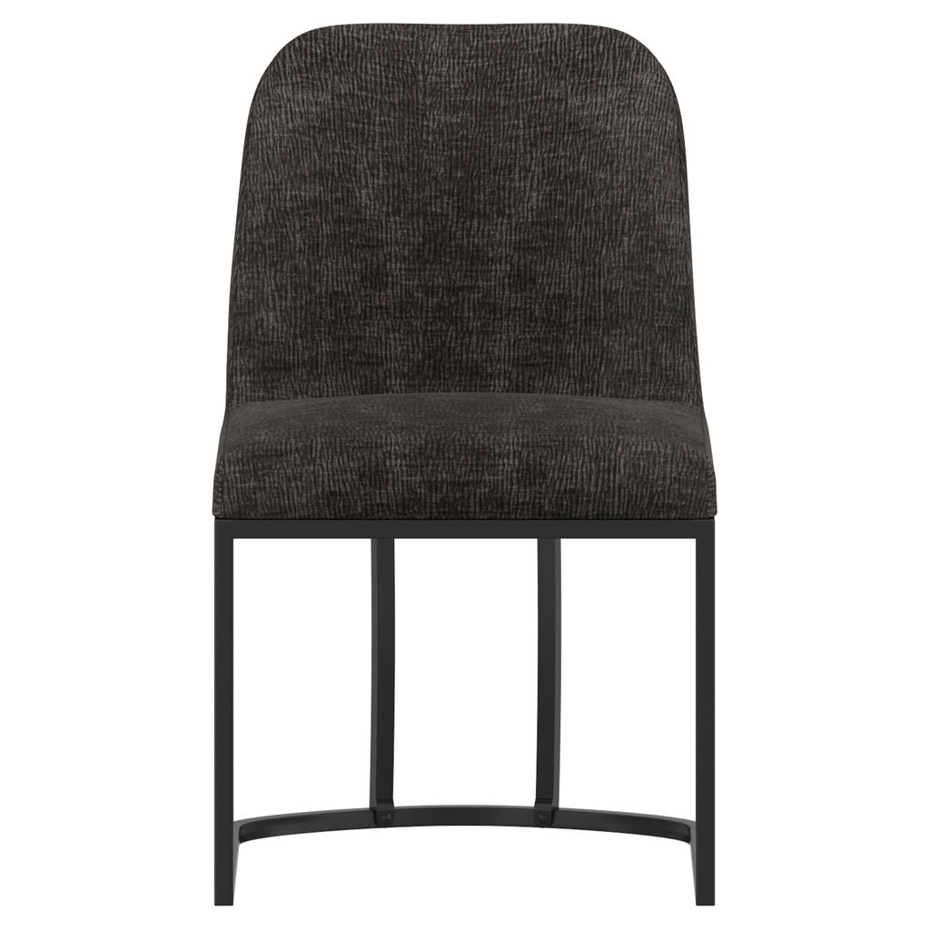 Le siège courbé est revêtu d´un tissu chenille pelucheux, et le cadre en métal noir ajoute un intérêt géométrique, tout en offrant un support solide.