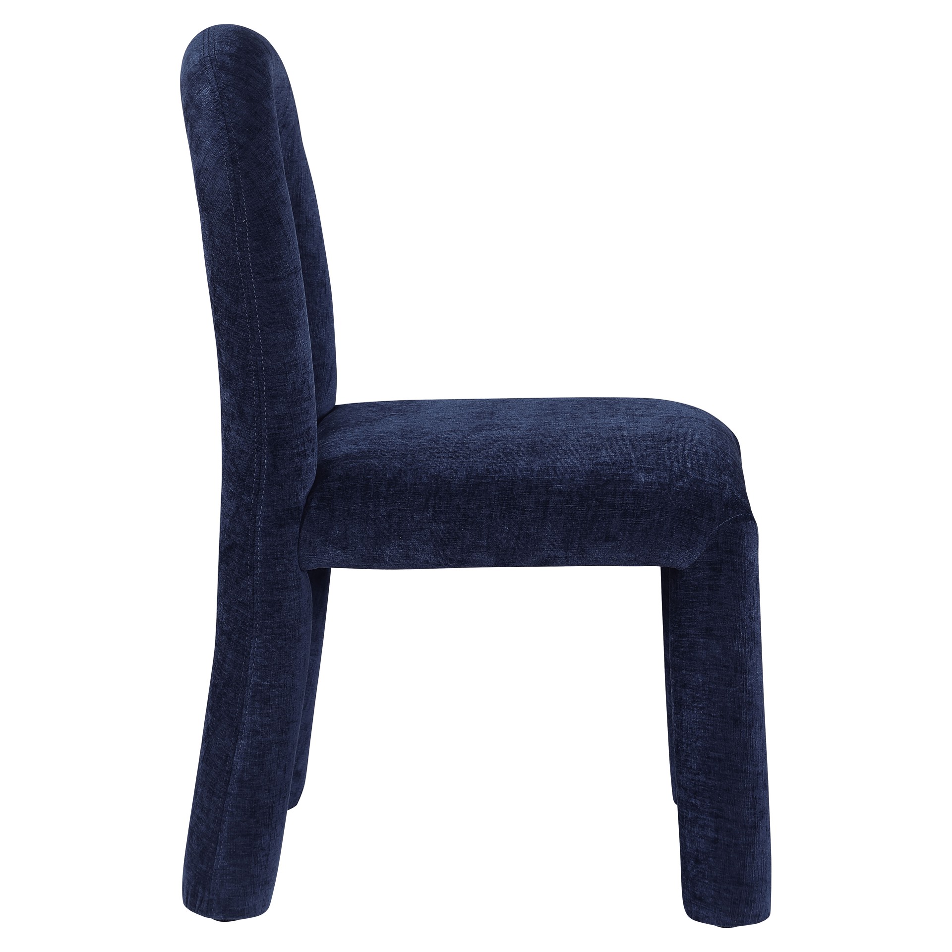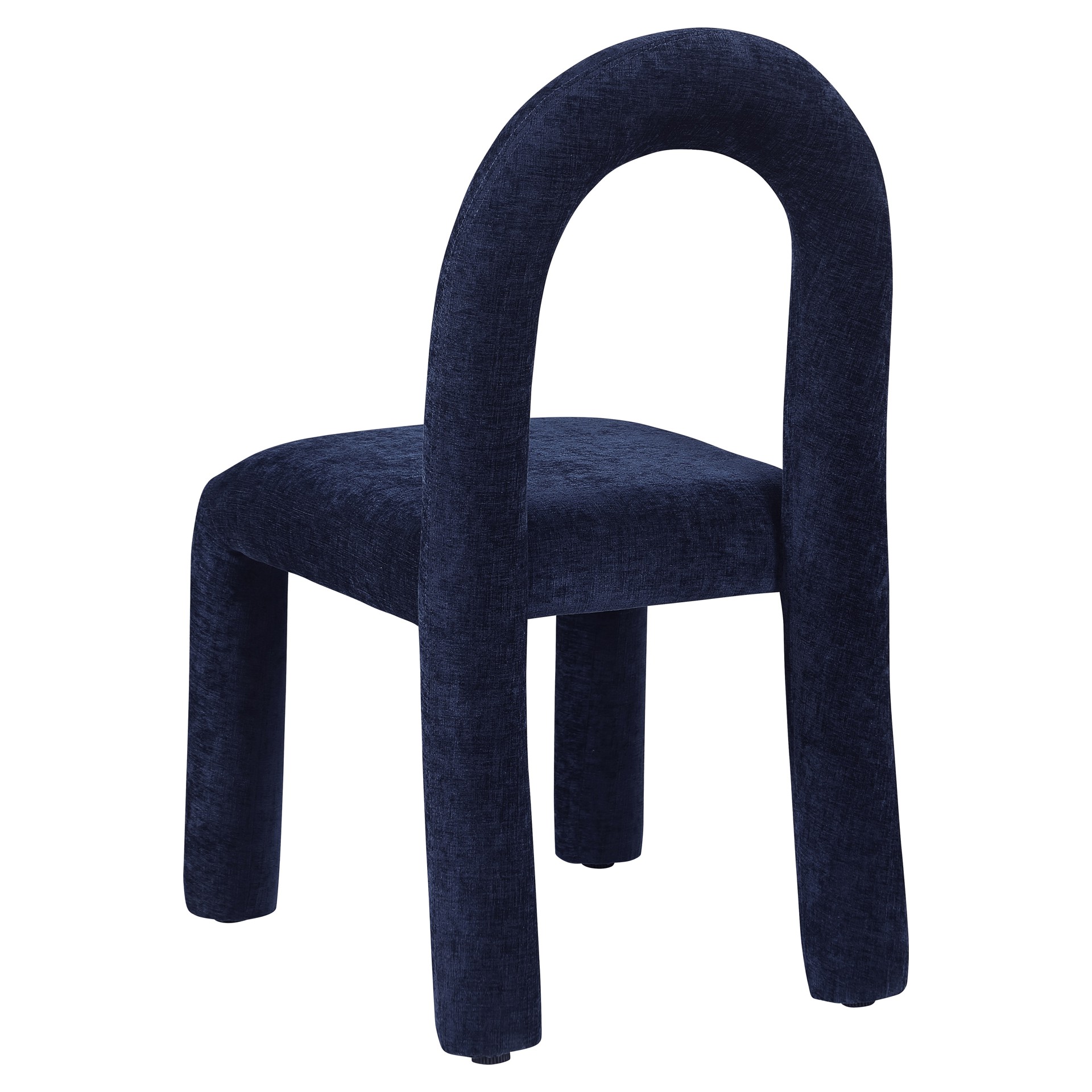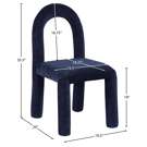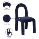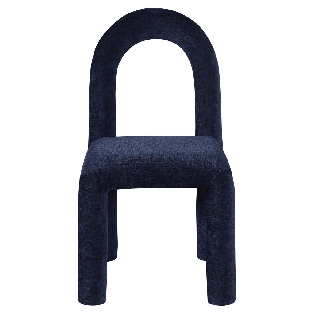 Laissez-vous séduire par le charme de la chaise de salle à manger Amari en tissu chenille de Meridian Furniture. Son design captivant et sa luxueuse finition en tissu chenille bleu marine rehaussent n'importe quel espace avec une élégance sans effort.