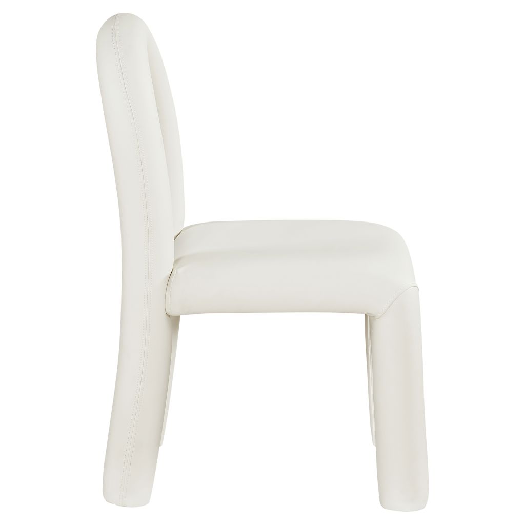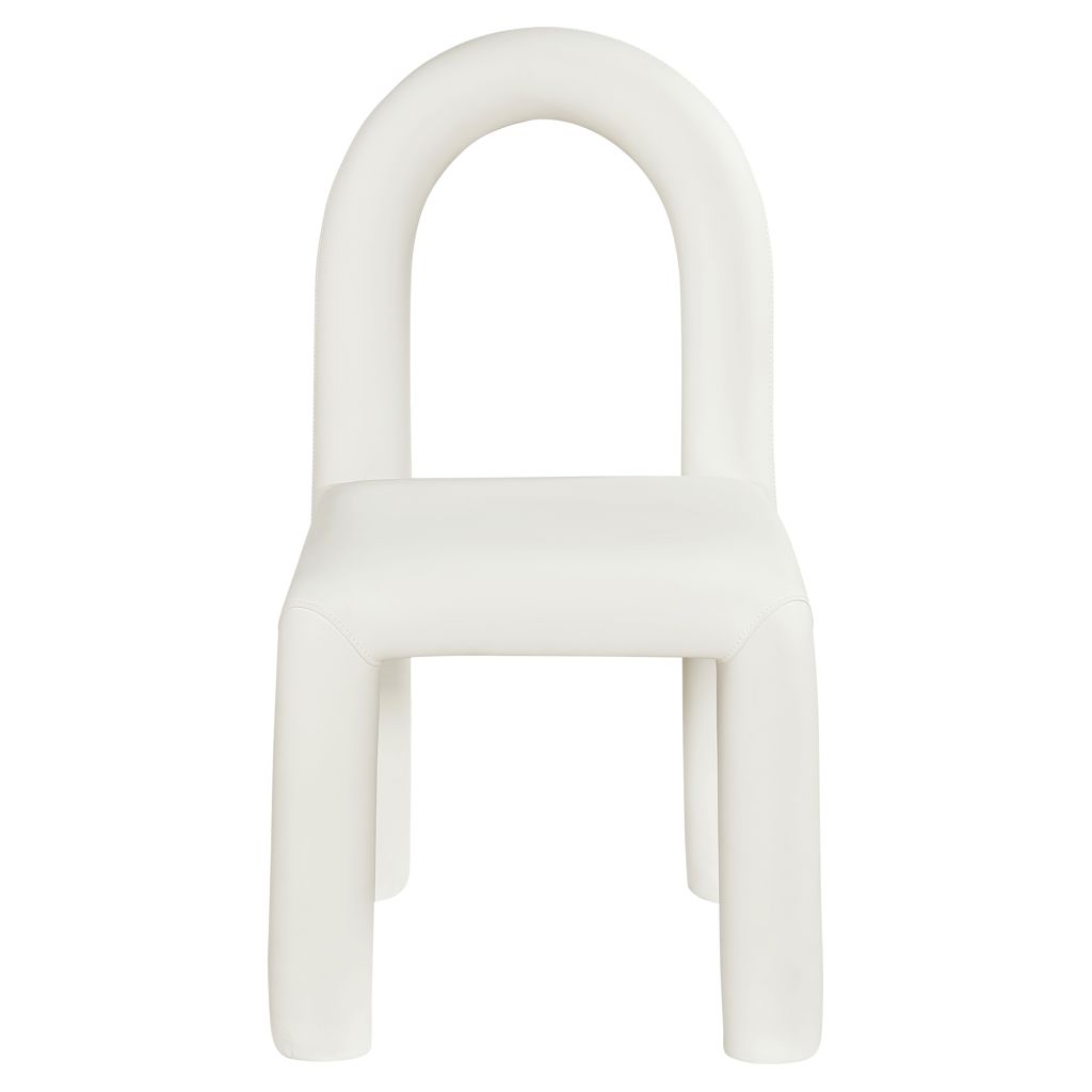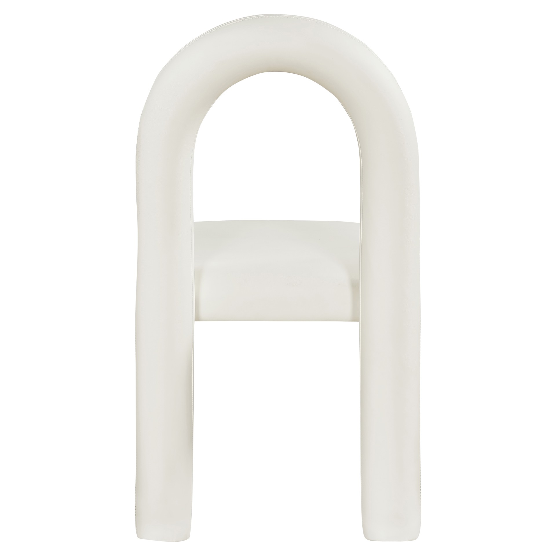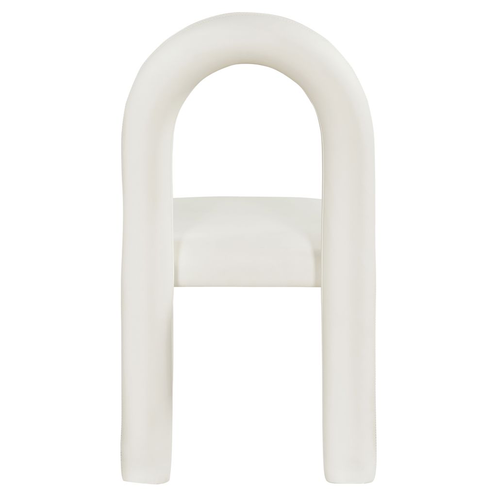 Laissez-vous séduire par le charme de la chaise de salle à manger Amari en cuir végétalien de Meridian Furniture. Son design captivant et sa luxueuse finition en cuir végétalien crème rehaussent n'importe quel espace avec une élégance sans effort.